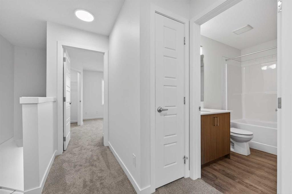 OPEN HOUSE on Saturday, February 7th and Sunday, February 8th from 12pm-5pm. Please go to the show home located at 96 Creekside Drive SW for access. StreetSide proudly presents this exceptionally popular interior-unit townhome, where expansive living areas meet modern comforts and sophisticated finishes. The thoughtfully designed floorplan features three spacious upper-level bedrooms and two and a half well-appointed bathrooms, complemented by a versatile lower-level den perfect for a home office or quiet retreat. The heart of the home is an inviting open-concept main floor, anchored by a large gourmet kitchen featuring a functional breakfast bar for casual dining. This bright living space transitions seamlessly to a private balcony, offering a perfect setting for outdoor relaxation. The interior showcases high end craftsmanship, including modern dark slab-style cabinetry with a full bank of drawers for maximum storage. The kitchen is further elevated by polished white quartz countertops and a full suite of premium stainless steel appliances. Durable luxury vinyl flooring runs throughout the primary living areas, while the stairs and upper level are finished with plush carpet over an 8lb underlay for superior comfort. Additional conveniences include an attached double car garage, professionally maintained landscaping, and a lifestyle defined by maintenance free living. Life at Sirocco Gate East in Southwest Calgary is about more than just living—it’s about thriving. Imagine having a picturesque central green space at your doorstep, offering opportunities for both tranquil reflection and vibrant community events. Residents enjoy the luxury of sophisticated townhome living with the Rocky Mountains as a backdrop and easy access to both Stoney Trail and Macleod Trail. With daily essentials located in nearby shopping centers, this home offers the perfect blend of scenic serenity and urban convenience.