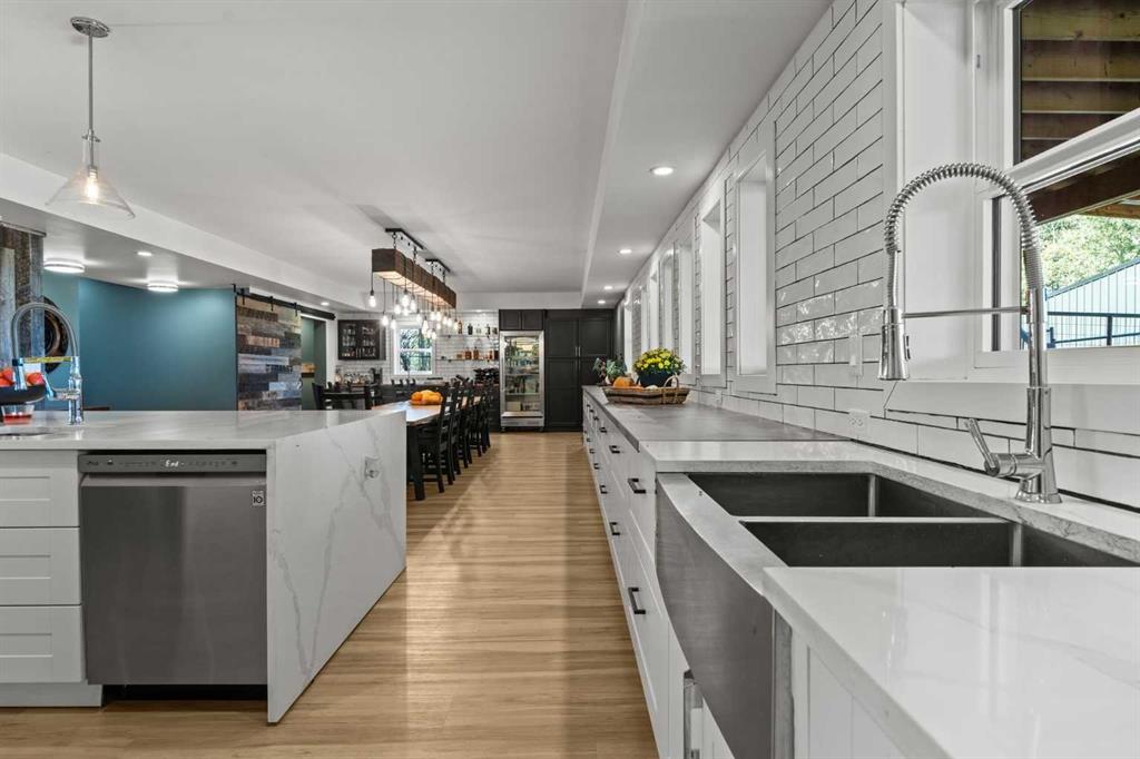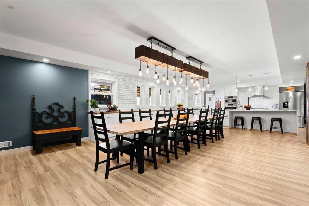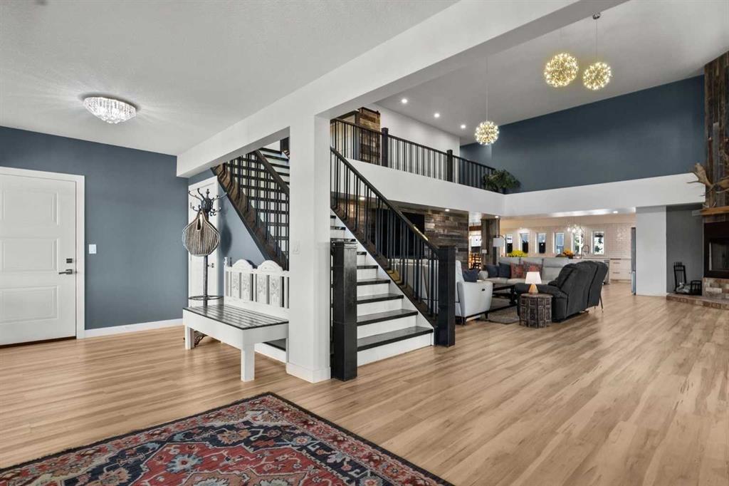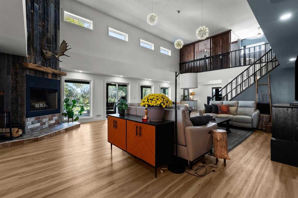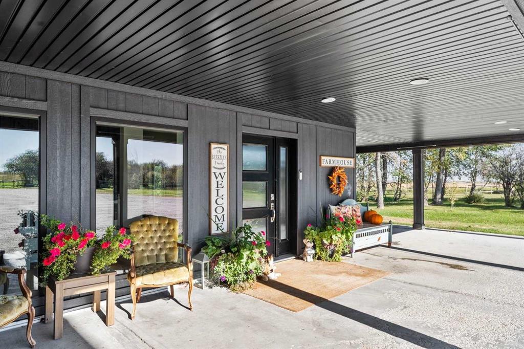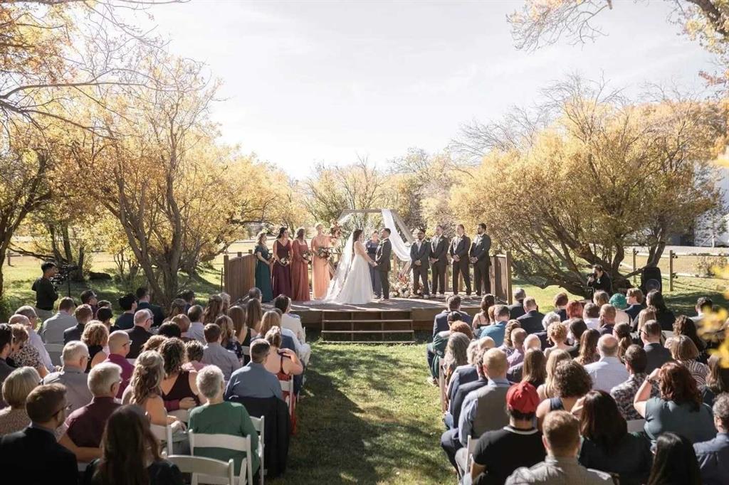 YOUR DREAM ESTATE AWAITS!! Nestled on 13+- acres of picturesque Alberta landscape, this extraordinary property blends seamlessly offering luxury living & unparalleled commercial potential with Rural Business Zoning. Voted TOP 10 FOR OUTDOOR WEDDING VENUES IN AVENUE MAGAZINE IN 2025. The PRIMARY RESIDENCE offers over 4400 sq ft of luxury custom designed living and a SECOND RESIDENCE is a completely renovated 3 bed/2 bath mobile. Soaring ceilings showcase the expansive use of windows and the stunning open to above floor plan. A family centric Great Room boasts an open ended design to capture and maximize your preferred seating arrangements. Masterfully created is a showstopping kitchen and dining area with gleaming full height cabinetry overlaid with marbled quartz and a massive island that features a waterfall design beckoning the finest culinary experts and delivers several areas for preparation and display. For the connoisseur there is a separate coffee station equipped with a sink & dishwasher & full sized pop/water cooler. Bosch appliances include a gas stove, built in microwave and oven, water/ice refrigerator, hood fan and a 2nd dishwasher. A private media room, gym & two pc bath complete the main floor. Ascending to the upper floor your eyes scan and appreciate the vastness of the size of this home and stunning open to below views. Elegantly appointed the primary retreat features a spa ensuite bath with a fully tiled walk in shower, deep jetted tub, double sinks in the quartz topped vanity and a private water closet. The walk in closet includes it's own laundry mates. A massive outdoor upper deck offers panoramic views. Two oversized secondary bedrooms include private access to a five pc bath and separate laundry room. Completing the upper floor is a comfy bonus room and an office. The main house can double as a private retreat or an extension of the attached event venue. The second dwelling is ideal for guest accommodations, bed and breakfast, a manager's quarters or rental income through a yearly lease or Airbnb opportunities. Combining luxury and privacy coupled with a premier location, this package delivers extraordinary business potential. Boasting a 76'10" x 25'8" WSP constructed wedding and event building with modern lighting, polished floors to dance the night away, and stylish decor, 3 washrooms, fully licensed bar area, COMMERCIAL KITCHEN, space that allows for events to accommodate 250 guests. Romantic and beautifully orchestrated outdoor areas provide natural spaces for intimate gatherings or larger events including corporate events, reunions, retreats and weddings. Whether you are an entrepreneur, investor, or are looking for your new forever home, this fabulous TURNKEY ESTATE & EVENT VENUE will meet your highest expectations & deliver a thriving business opportunity too. ADDITIONAL 74 ACRES FOR SALE ZONED RB ON PAVEMENT 5 MINUTES TO STRATHMORE.