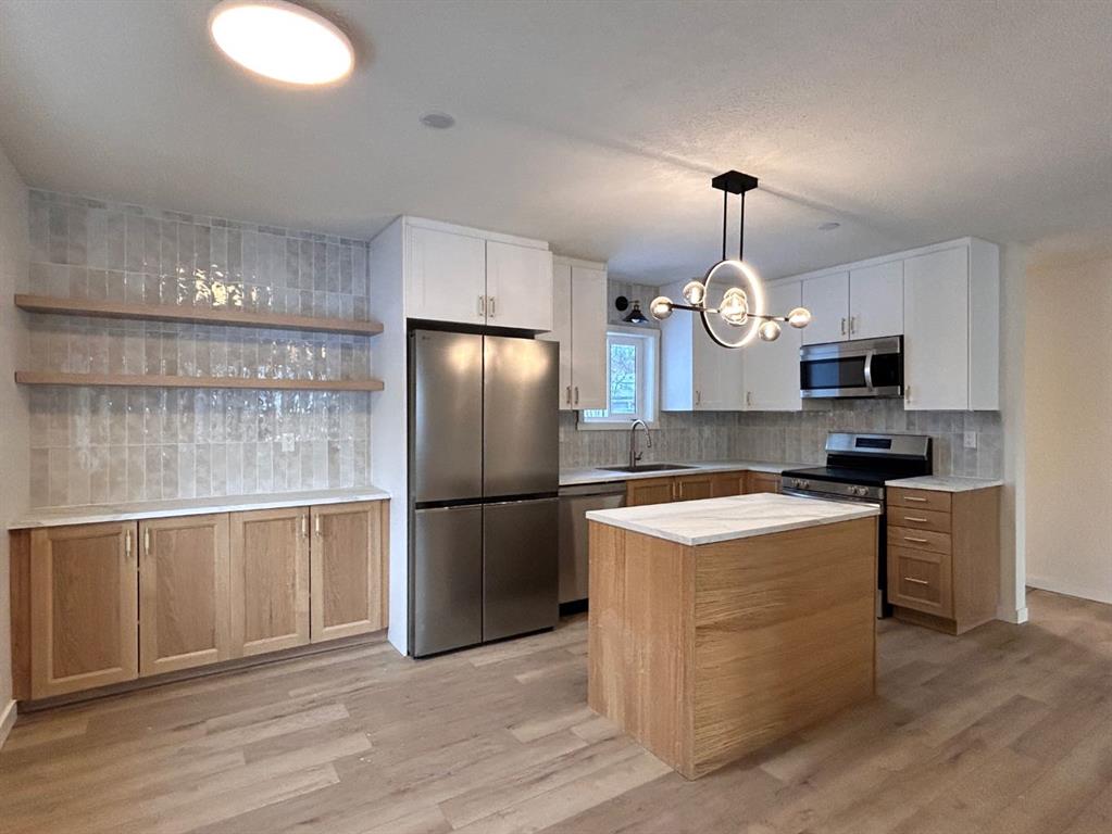 Welcome to this stunning, fully developed and completely renovated home in the heart of Fairview — a rare opportunity to own a truly turn-key property where no detail has been overlooked. The exterior showcases beautiful vinyl and cedar siding, paired with energy-efficient insulation, new windows, newer roof (2–3 years old), upgraded garage doors, and fresh backyard sod — offering both curb appeal and long-term peace of mind. Step inside and you’re welcomed by a bright and spacious front living room, featuring three large windows that flood the space with natural light. The heart of the home is the show-stopping kitchen, complete with brand-new cabinetry, modern countertops, all new stainless steel appliances, updated fixtures, and a large island perfect for entertaining. A dedicated space beside the refrigerator creates the ideal coffee bar or beverage station, adding both function and charm. Upstairs, you’ll find three generously sized bedrooms and a beautifully finished four-piece bathroom, featuring elegant tile that seamlessly ties into the kitchen backsplash for a cohesive, high-end design throughout the home. The fully developed lower level offers a fourth bedroom, a stylish three-piece bathroom, and a large second living or recreational space — perfect for a family room, home gym, or media area. Additional storage is available in both the utility room and separate laundry room. This home has been extensively upgraded, including luxury vinyl plank flooring throughout, fresh paint, new doors and trim, a fully upgraded electrical panel, all new water lines, foundation and weeping tile repairs, and two brand-new full bathrooms. Outside, enjoy a massive backyard with a double detached garage — ideal for entertaining, gardening, or simply relaxing in your own private outdoor retreat. You won’t find another fully renovated, move-in-ready home like this in Fairview. This is modern living, thoughtfully designed and beautifully executed. Ready for its next owner to fall in love.