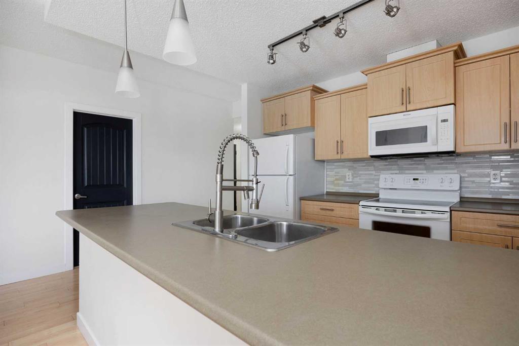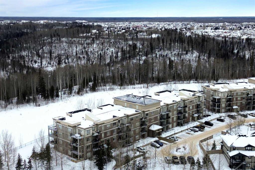 This bright corner condo at 2214–204 Sparrow Hawk Drive offers a calm, comfortable place to land in one of Fort McMurray’s few fully concrete buildings, making it noticeably quieter and more solid than most. The unit has been recently repainted in a clean off-white, instantly giving the space a fresh, open feel. The kitchen, dining, and living area flow together easily and open onto two covered balconies, adding extra space to relax or unwind. Air conditioning keeps the home comfortable year-round. There are two bedrooms and two full bathrooms, including a primary bedroom with a walk-through closet and private ensuite. A separate den sits just off the main living area. It’s built with a temporary wall and sliding pocket door (not structural), making it a great fit for a home office, play space, or flex room. You’ll find in-suite laundry, along with titled underground heated tandem parking and a titled storage unit, all located in a secure underground parkade that also includes a wash bay. Outside you’re minutes from the Birchwood Trails, with easy access to walking and biking paths. Schools, childcare, a movie theatre, restaurants, cafés, pubs, and local shops are all close by. Whether you’re buying your first place, downsizing, or looking for an investment, this condo delivers space, comfort, and one of Eagle Ridge’s best trail-side locations