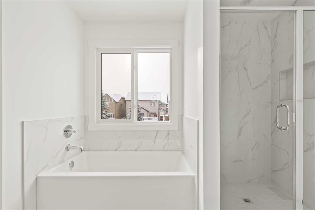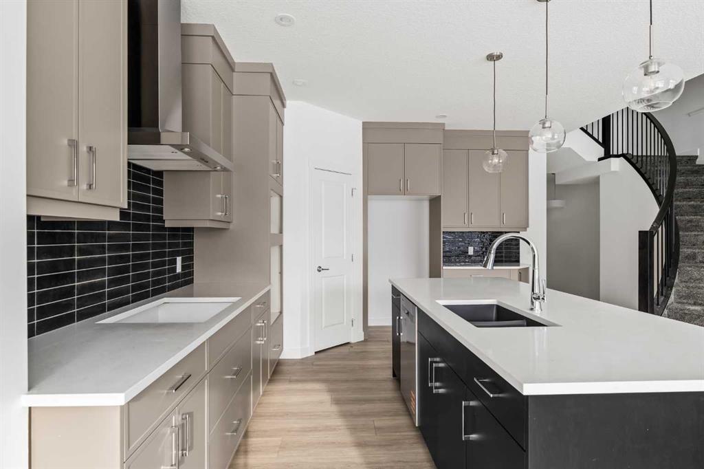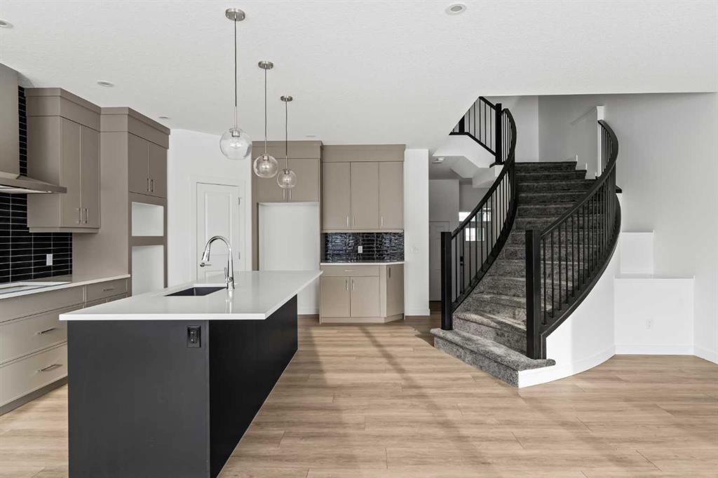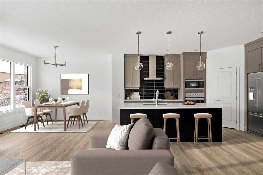 Welcome to The Robson 24 in Silver Spruce - a stunning brand-new home showcasing a timeless Heritage elevation, exceptional architectural details, and over 2,250 sq. ft. of beautifully designed living space above grade, plus an undeveloped basement ready for your future vision. Situated on a premium lot with a south-facing backyard that backs onto a pathway - offering additional privacy and optimal sunshine all year long. Inside, you’re immediately greeted by a large and bright foyer with views into the open concept main level living area that is accented by a dramatic curved central staircase - a striking architectural feature rarely found in homes of this size. Warm luxury vinyl plank flooring flows seamlessly throughout the main level and is the perfect choice for those with children and pets due to its incredible durability. The gourmet kitchen is both stylish and functional, featuring a chimney-style hood fan, built-in cooktop, built-in oven and microwave, rich micro-shaker cabinetry, a statement accent island, and a spacious corner pantry. Designed for both entertaining and everyday living, the kitchen opens effortlessly into the dining area and inviting great room. Expansive windows fill the home with natural light, enhanced by the sunny south-facing backyard that backs onto a pathway. The main living area is anchored by a cozy central fireplace, creating a warm and welcoming space for gatherings year-round. A versatile main-floor flex room offers the perfect spot for a home office, guest bedroom, or playroom, conveniently located next to a full bathroom with a tub/shower. Natural wood and iron spindle railings lead up the spiral staircase to a thoughtfully designed bonus room that provides privacy between the primary suite and secondary bedrooms - ideal for families. The spacious primary retreat impresses with a soaring vaulted ceiling, a large walk-in closet, and a luxurious 5-piece ensuite complete with dual sinks, a deep soaker tub, and a walk-in tiled shower. Two additional bedrooms, a full bathroom, and an upper-floor laundry room complete this level, offering both comfort and convenience. The lower level includes bathroom rough-ins and awaits your personal touch, making it easy to expand your living space in the future. A double attached garage keeps vehicles and valuables secure year-round, while the home itself is protected by a comprehensive 2-year builder warranty and the Alberta New Home Warranty for added peace of mind. Move in now and experience the perfect blend of thoughtful design, modern finishes, and everyday functionality in this stunning new home!