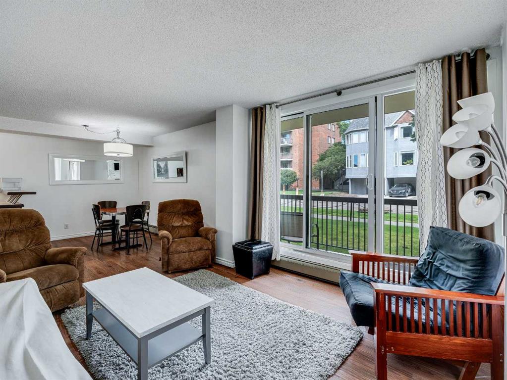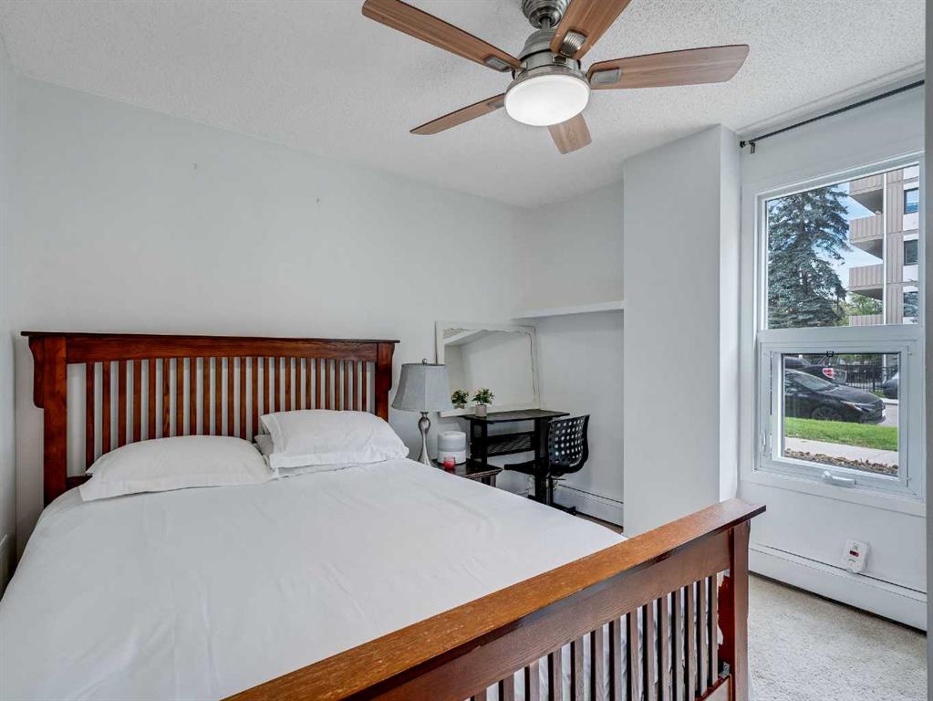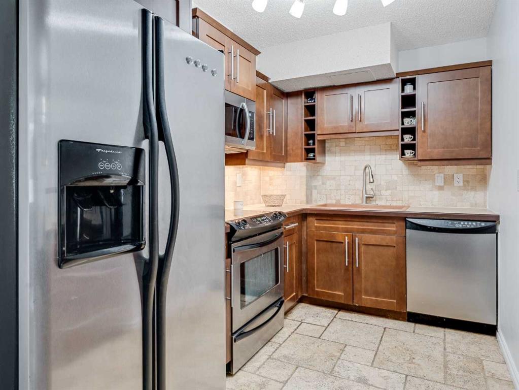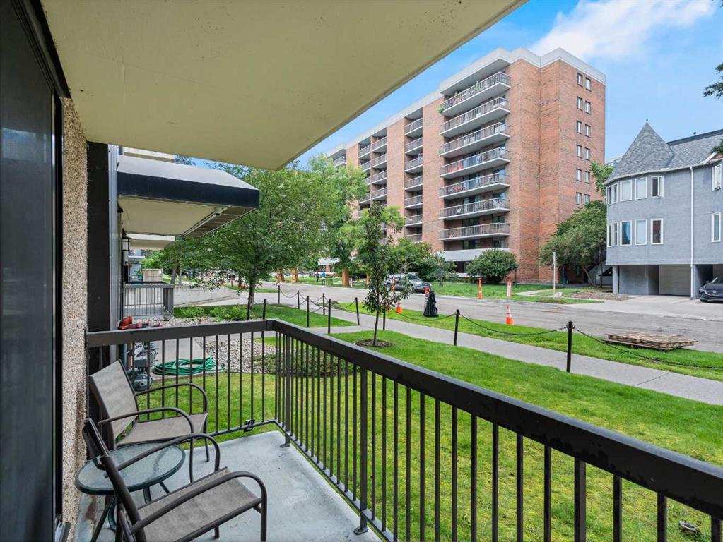 INVESTORS ALERT*** LOCATION, LOCATION, LOCATION This bright and modern 2-bedroom, 1-bath main floor condo offers the perfect mix of comfort, convenience, and city lifestyle right in the heart of Calgary. With an open layout and oversized windows, the space feels light, airy, and ready for entertaining. The sleek kitchen boasts stainless steel appliances and a durable silgranite sink, while real travertine tile throughout adds a stylish touch rarely found at this price point. Step out onto your private, tree framed balcony for a morning coffee or relax with friends on the large upper extra balcony designed for gatherings. Main-floor access means no waiting for elevators and you just walk in and out with ease. Practical perks include secure covered parking, extra storage, and the ability to install in-suite laundry. Best of all, this condo puts you steps from 17th Avenue Calgary’s ultimate destination for restaurants, trendy shops, patios, and nightlife. Everything you need is just outside your door, making it effortless to live, work, and play downtown. This isn’t just a home, it’s your lifestyle upgrade!