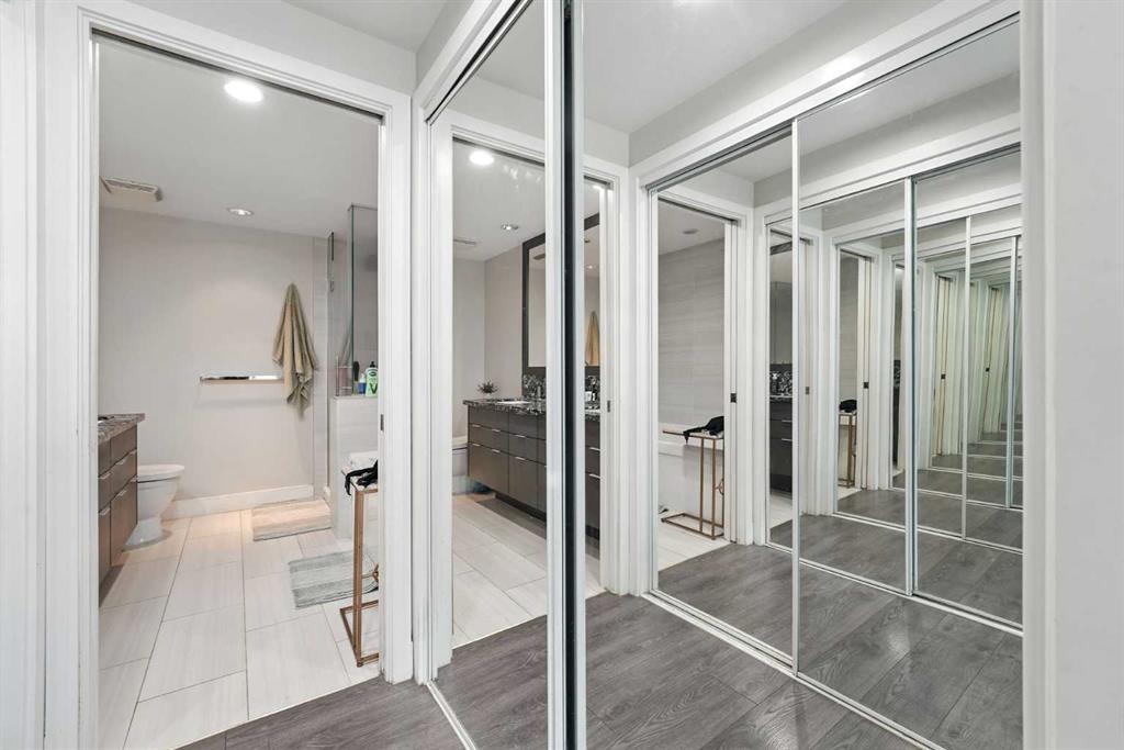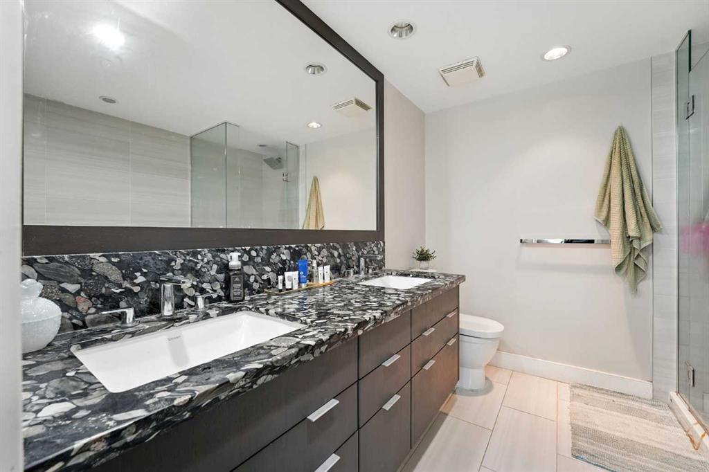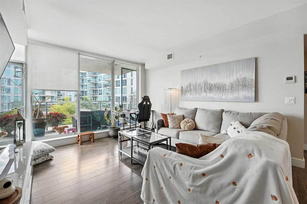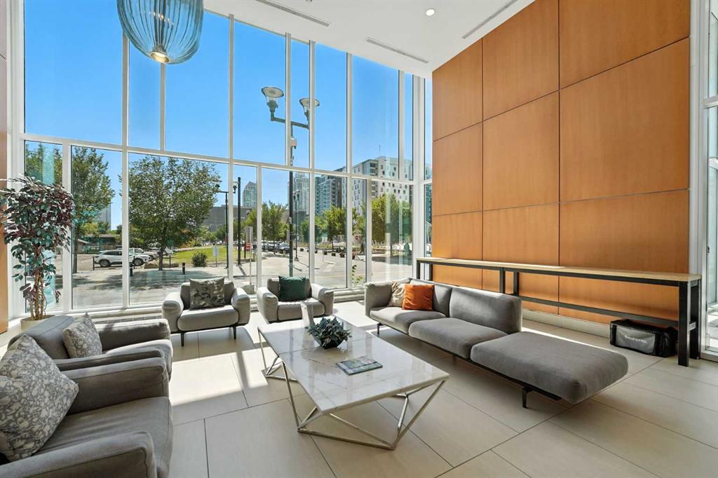 Welcome to your urban sanctuary in the vibrant heart of East Village! This modern 2-bedroom, 2-bathroom suite the Evolution building is a perfect fit for both first-time buyers seeking a dynamic lifestyle and savvy investors eyeing a prime downtown asset. This is a space where style meets function. The bright, open-concept layout is framed by floor-to-ceiling windows that fill the home with natural light. The contemporary kitchen features a gas range, granite countertops, and stainless steel appliances—perfect for a quick meal or a gourmet dinner. Both bathrooms offer the luxury of heated floors, while the primary ensuite boasts dual sinks and a separate tub and shower. Central A/C, in-suite laundry, and secure underground parking and storage add to the low-maintenance appeal. Beyond your door, a world of premium amenities awaits. Residents enjoy a 24/7 concierge, a fitness facility with sauna and steam rooms, a social lounge, and a rooftop patio with BBQs—all designed for a life of convenience and relaxation. With a Walk Score of 94, East Village is your playground. Stroll to the Bow River pathways, the Central Library, Studio Bell, and an array of shops, cafes, and restaurants. The C-Train and Superstore are just a few steps away, making daily errands a breeze. This is more than a condo—it's a smart investment in a thriving, walkable community. Don't miss this opportunity to own a piece of Calgary's most exciting neighbourhood!