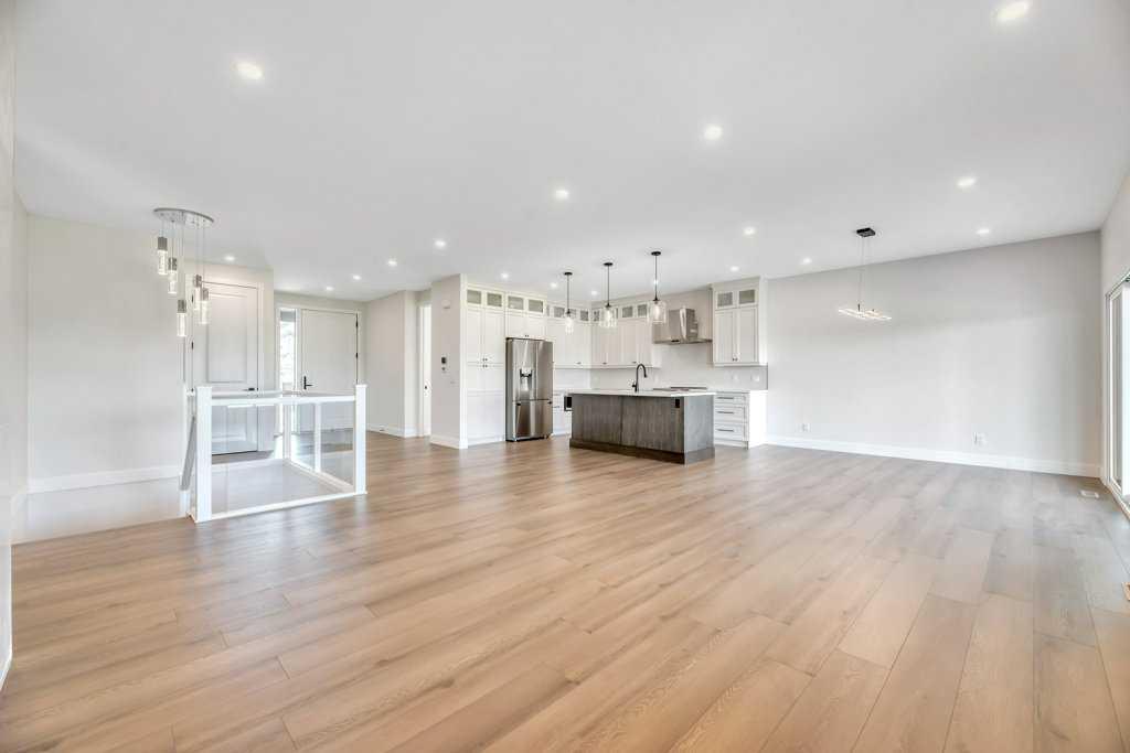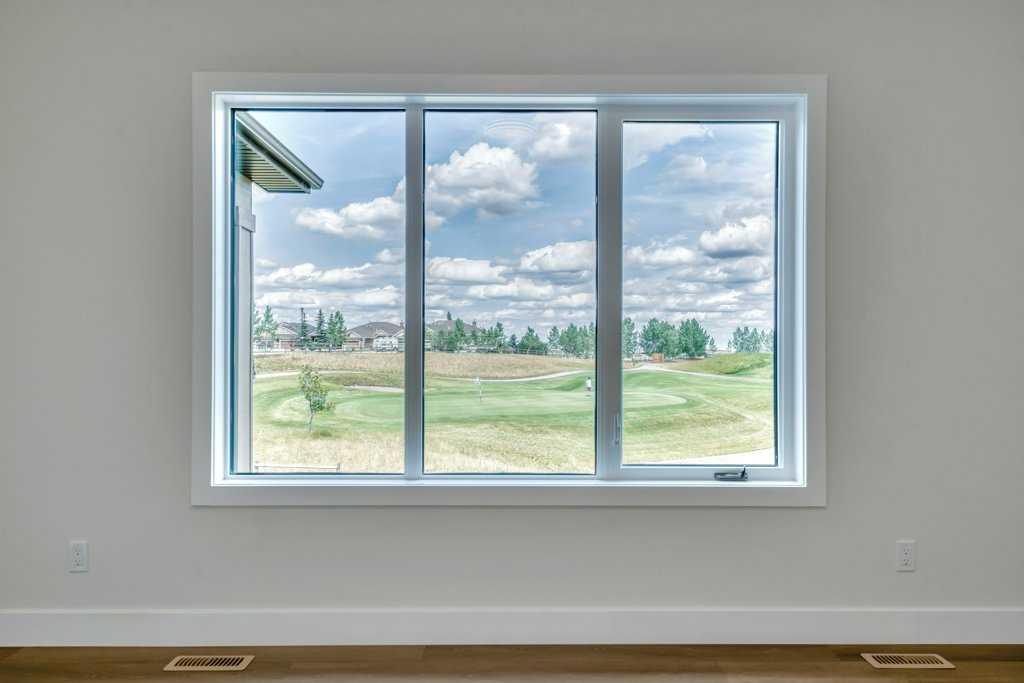 Brand-New Walkout Bungalow Backing on the 11th Green at Speargrass Golf Course. Experience luxury living in this beautifully crafted 4-BEDROOM, 4-BATHROOM DESIGNER BUNGALOW, offering over 3,100 sq. ft. of exquisite, thoughtfully designed space. Ideally located just 40 minutes east of Calgary, this stunning walkout home backs directly onto the 11th green of the Speargrass Golf Course and boasts a TRIPLE ATTACHED GARAGE with soaring 11 FT CEILINGS and 9 FT DOORS. Step through the impressive 42” FRONT DOOR into a bright, open-concept layout enhanced by PREMIUM WOOD LAMINATE AND TILE FLOORING. The gourmet kitchen is a true showstopper, featuring QUARTZ COUNTERTOPS, CUSTOM CABINETRY, DESIGNER BACKSPLASH, A LARGE ISLAND, HIGH-END APPLIANCES, AND A SPACIOUS PANTRY. The open DINING AREA, accented by STRIKING LIGHT FIXTURES, is ideal for hosting, while the INVITING LIVING ROOM with a sleek ELECTRIC FIREPLACE provides a cozy setting for everyday comfort. Step out to the COVERED UPPER DECK, finished with DURADEK and GLASS RAILINGS, perfect for BBQs and enjoying the panoramic golf course views. The primary suite is a luxurious retreat, complete with a SPA-INSPIRED ENSUITE featuring a massive tiled shower and dual sinks. A spacious second bedroom, full bathroom, and mudroom with custom bench and cabinetry enhance the main level, along with a large laundry room offering a deep sink, custom cabinetry, and side-by-side washer and dryer. The FULLY DEVELOPED WALKOUT BASEMENT is an entertainer’s dream with a wet bar, second fireplace, two additional bedrooms, two full bathrooms, and direct access to the beautifully landscaped backyard with retaining walls and sweeping golf course views. Built with quality and durability in mind, this home features Hardie board siding, Lux triple-pane aluminum-clad windows, central air conditioning, LED lighting, Level 4 impact-resistant shingles, fireguard drywall, Rockwool insulation, and 8-foot interior doors throughout. Don’t miss this rare opportunity to own a stunning home in an unbeatable location—book your private showing today!