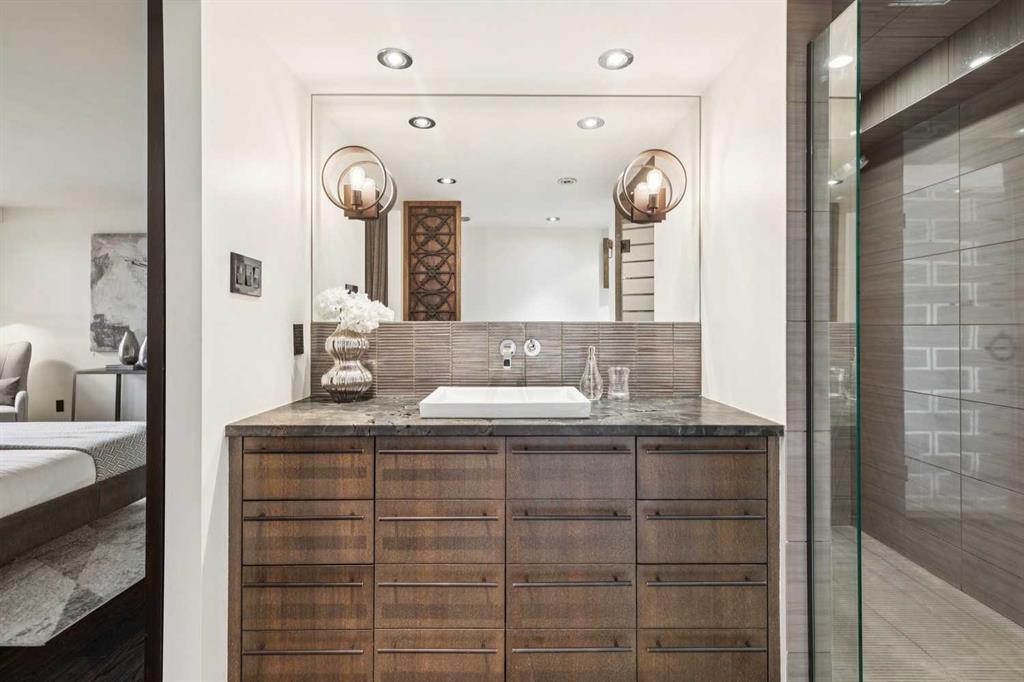 Welcome to Riverstone—one of Calgary’s most prestigious inner city residences, perfectly positioned in the heart of Mission and just steps from the Elbow River. This luxurious 1,572 sq. ft. SW corner unit has over $300,000 in high-end renovations, thoughtfully crafted by renowned interior designer Douglas Cridland. Showcasing a modern, open concept layout, the home is wrapped in floor to ceiling SW windows that bathe the living and dining areas in natural light while capturing sweeping southwest views. The custom chef’s kitchen is both functional and stunning, featuring premium stainless steel appliances, a farmhouse sink, soft-close cabinetry with dovetail construction, built-ins, a wine fridge, and a striking leather granite island that anchors the space. The spacious primary bedroom, accented by sliding barn doors, includes a beautifully designed ensuite with a walk in shower and a generous walk in closet. A large second bedroom and a well appointed main bath with a shared shower offer flexibility for guests or a home office.Additional upgrades include solid core doors, designer lighting and plumbing fixtures, pot lights, smooth ceilings, and an elegant electric fireplace. Riverstone is a true full-service building, offering 24-hour concierge, a fitness center, swimming pool, visitor parking, car wash bay, and tennis courts. This home delivers exceptional value in Calgary’s upscale condo market—combining luxury, location, and lifestyle in one of the city’s most desirable communities.