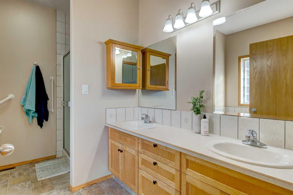 This beautifully maintained 1,600 sq. ft. bungalow is situated on a large corner lot and offers excellent curb appeal with its stucco exterior and inviting arched wood double doors. Step into the open foyer, which leads to a spacious family room and a separate, private living room—ideal for both everyday living and entertaining. The well-designed kitchen features an abundance of cupboards and drawers, a large island with additional storage, a convenient corner pantry, and recently updated light fixtures and kitchen sink faucet. The adjoining dining area is perfectly suited for hosting large family gatherings. Just off the kitchen and dining area, you’ll find a bright southeast-facing sunroom. The main floor also offers a separate laundry room and a den, which is currently being used as a bedroom. The primary bedroom is generously sized and includes a large walk-in closet and a 5-piece ensuite complete with dual sinks, a soaker tub, and a walk-in shower. A 2-piece powder room completes the main level. The home features wide doorways and hallways, making it a comfortable option for those with mobility considerations. The fully developed basement includes two additional large bedrooms, another den, a 4-piece bathroom, and a spacious family room with rec area. In-floor heating throughout the lower level provides warmth and comfort. Outside, the grounds are low maintenance and include an automatic sprinkler system. The oversized garage with in-floor heating adds year-round functionality. Located in a quiet community, this home is within walking distance to schools, the golf course, and the health centre. Washer and dryer are included, although they may not be the same units shown at the time of viewing.