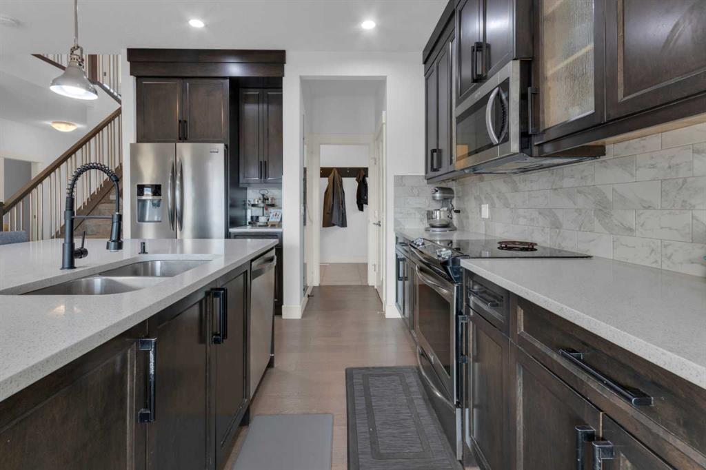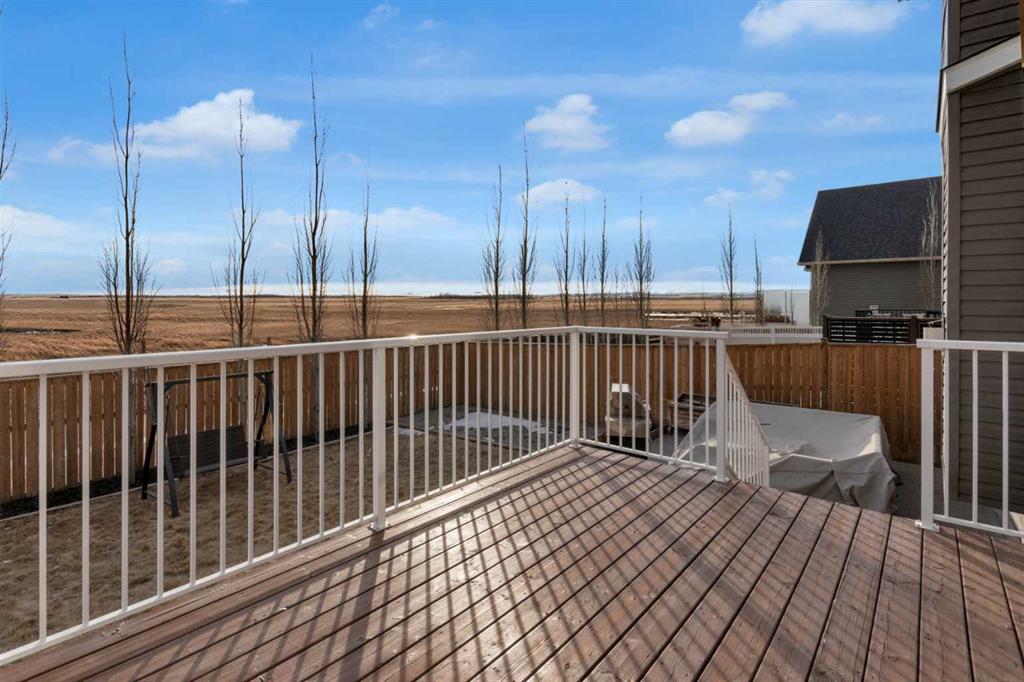 WELCOME to the town of CARSTAIRS! Commute to Airdrie or Calgary or work from home - come & check this property out! This home has so much to offer for a large & growing family! If the quiet is what you desire this is the property for you - SOUTH FACING lot backing on to field for added privacy & peacefulness. As you approach the quaint front porch you are greeted with a generously sized foyer, 9 ft ceilings, engineered hardwood FLOORS & a large, open floor plan. The kitchen boasts CEILING HEIGHT cabinetry, SS appliances, quartz counters & a massive island w/built in storage & ample space for seating. From the kitchen area head back towards the massive mudroom, noting the pantry areas as well as the built in bench & extra closet. The dining area has plenty of room to accommodate a large table. The living room is host to large windows & is highlighted by a stunning gas fireplace w/mantle. This floor is complete w/2 pc powder room as well as a MAIN FLOOR DEN - perfect for a HOME OFFICE or toy room. Heading upstairs note the upgraded stair rails leading you to a good sized bonus room w/tray ceiling & second fireplace, UPPER LAUNDRY ROOM & 4 pce bathroom servicing 2 HUGE SECONDARY bedrooms. The primary suite is highlighted by incredible south facing windows, tray ceiling & a spa like ensuite w/oversized jetted tub, 2 sinks, make-up vanity, sep water closet & generous walk-in closet. The lower level is bright & has opportunity to build more bedrooms & a living space if desired. Outside in your amazing backyard note the RV PARKING as well an alley to access it. There is a deck as well as lots of room to run & play. Last but not least is the TRIPLE CAR GARAGE! This is a dream garage w/2 man doors, 8 foot overhead doors, sep POWER PANEL & it is HEATED. Come discover why Carstairs is growing - home to Independent Grocery as well as long term local stores, various gas stations & soon to open - Shopper’s Drug Mart.
