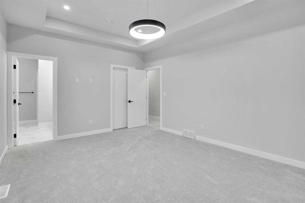 This brand-new custom two-story over 2600 square feet home offers 4 spacious bedrooms and 4 modern bathrooms, including a main-floor bedroom with a full bath. The layout features separate living and family rooms, a stylish dining area, a high-end kitchen plus a convenient spice kitchen with tons of storage. The luxurious primary suite includes a 5-piece ensuite with a soaker tub, tiled shower, and a large walk-in closet. Backing onto a serene canal near a golf course, the home also includes a mudroom and a triple garage, with a walkout basement overlooking peaceful views. Located in the Lakes of Muirfield in Wheatland County, it offers quiet living with quick access to Strathmore, Chestermere, and Calgary. Eligible for the First-Time Home Buyers GST Rebate, this home is a rare opportunity—contact your realtor to book a showing.