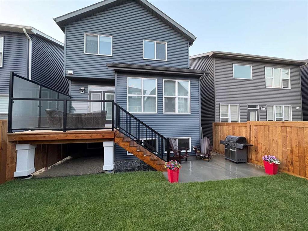 **OPEN HOUSE - Saturday, Feb 7 - 1:00 - 3:00 pm *** Welcome to this exceptional four-level split home in Glacier Ridge, proudly named Calgary’s 2022 BILD Community of the Year. Thoughtfully designed with modern style and everyday livability in mind, this residence showcases high-end builder upgrades, energy-efficient systems, and integrated smart-home technology throughout. The bright, open-concept main floor is filled with natural light from triple-pane windows that enhance comfort and efficiency year-round. The kitchen is a true centrepiece, featuring quartz countertops, premium stainless steel appliances, a large island with seating for four, sleek two-tone cabinetry, and a spacious walk-in pantry. French doors with built-in blinds lead to the rear patio, complete with a gas BBQ hookup. The dining and living spaces flow seamlessly, anchored by a striking two-sided Napoleon electric fireplace—ideal for both entertaining and everyday living. An office nook and stylish two-piece bathroom complete this level. Upstairs, the private primary retreat is introduced through double French doors and offers a generous walk-in closet, elegant Dimplex fireplace, and a spa-inspired ensuite with glass shower, modern fixtures, and dual vanities. The third level features two additional bedrooms, a full bathroom with double vanity, and a versatile family room—providing the perfect balance of connection and separation for busy households. The basement adds outstanding future potential with 9-foot ceilings, egress-sized windows, and bathroom rough-ins, making it ready for additional bedrooms or recreation space. Outside, the home is fully landscaped and fenced, with a front double attached garage offering secure parking and extra storage. Notable upgrades include solar panels for sustainable, cost-saving energy, an on-demand hot water system, smart thermostats, app-controlled lighting, and an Amazon Echo Show—all designed for comfort and convenience. Triple-pane windows further enhance insulation and sound control. Located in the master-planned Glacier Ridge community, inspired by the Rocky Mountains, residents enjoy access to scenic walking paths, green spaces, and future schools, shopping, and recreation. The location also provides quick access to Stoney Trail, Costco, and Creekside Shopping Centre. With its functional layout, upscale finishes, and forward-thinking features, this home truly stands out. Book your private showing today and experience the best of Glacier Ridge living.