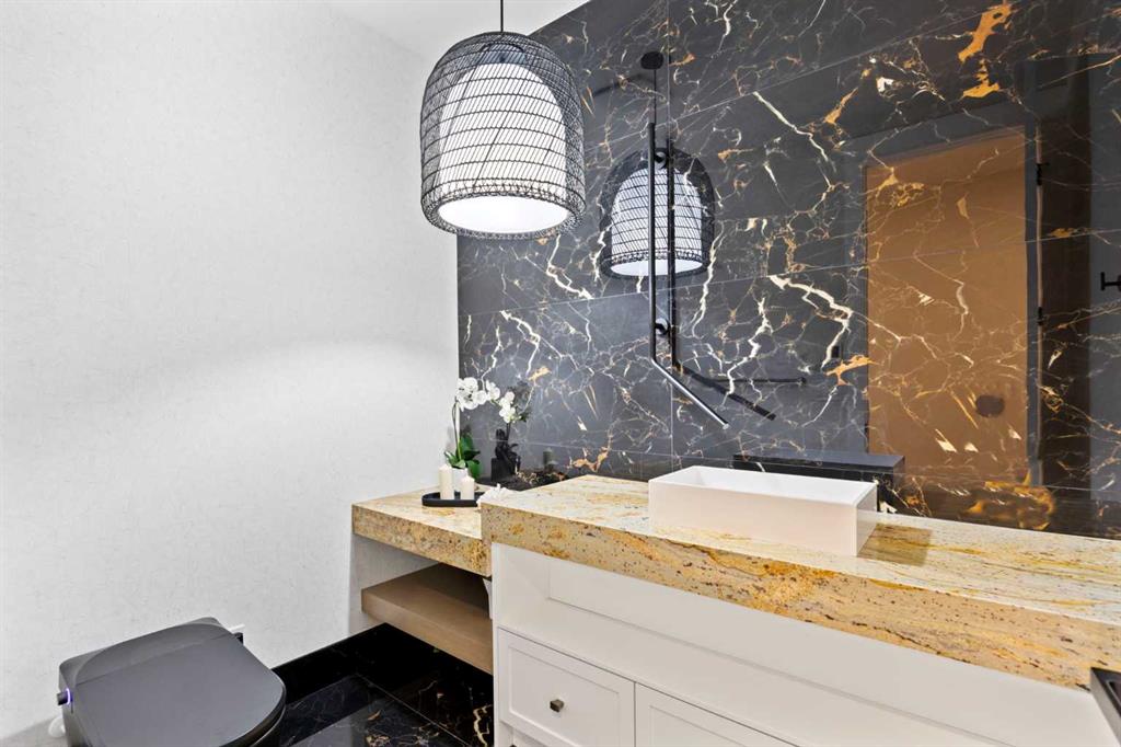 LUXURY LIVING IN VARSITY ESTATES!! With over 6,300 sq.ft. of exquisitely designed living space, this custom estate home blends timeless craftsmanship with refined modern details in one of Calgary’s most prestigious communities. The grand entrance welcomes you with soaring vaulted ceilings, a striking leathered granite fireplace, and stunning designer chandeliers. A front office provides the perfect space to work from home, while elegant arches and custom millwork set a tone of sophistication throughout. The gourmet kitchen is a showpiece, featuring Taj Mahal quartz countertops, JennAir appliances, a wall oven, and a large island ideal for entertaining. The dining room is enhanced with picture frame molding and fluted detailing, while a second main floor living room with a stone fireplace offers a warm retreat. Completing the main level is a stylish powder room, a well-appointed mudroom with built-ins, and garage access with space for an optional third bay, gym, or golf simulator. Upstairs, you’ll find three bedrooms, each with its own ensuite, including one with a hidden paneled door that adds a touch of intrigue. A spacious bonus room and a designer wet bar provide additional comfort, and the bonus room can easily be converted into a fourth bedroom to suit your needs. Convenient upstairs laundry adds ease to family living. The fully developed basement is an entertainer’s dream, boasting two additional bedrooms, a large recreation space, a stunning glass-enclosed wine cellar with arched shelving, a hidden movie theater with hand-painted ceiling detail, and a wet bar with striking copper accents. Step outside to your private backyard oasis, complete with a covered deck featuring a built-in gas fireplace and motorized screens, plus an aggregate patio with pergola—perfect for summer evenings. This home is also thoughtfully equipped with heated bathroom floors, an EV charger, and 200 amp service, ensuring both modern convenience and efficiency. Additional features include central air conditioning for year-round comfort. This rare Varsity Estates offering delivers both elegance and function, designed for those who appreciate the finest in luxury living.