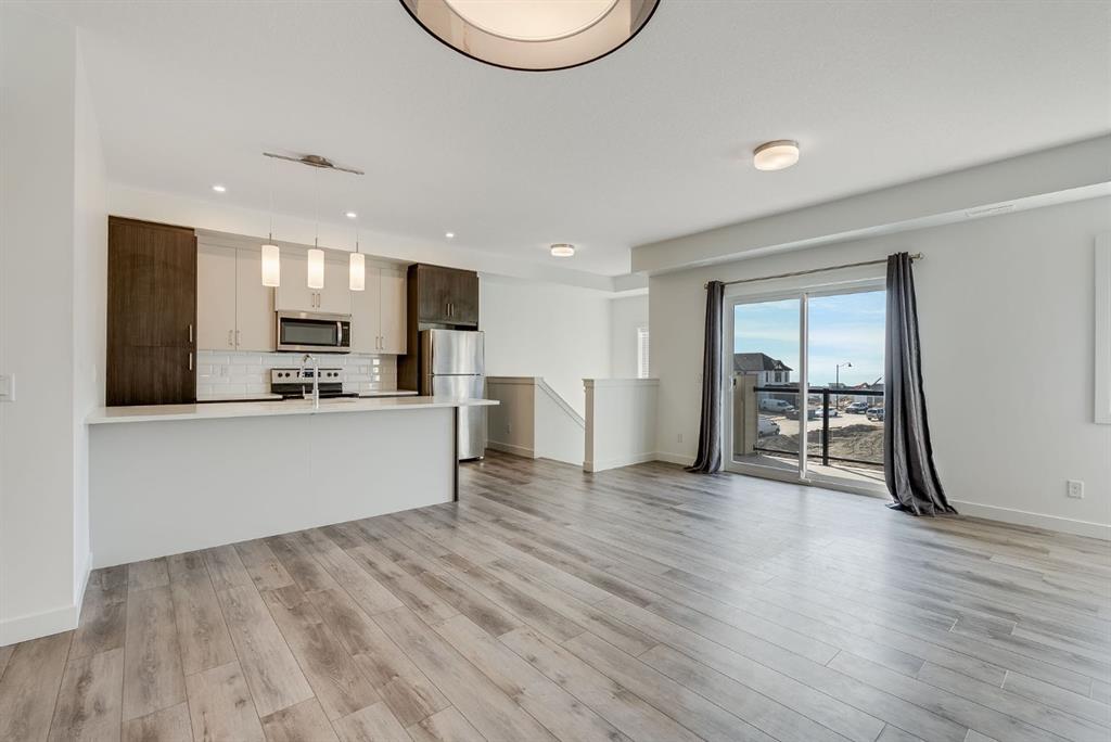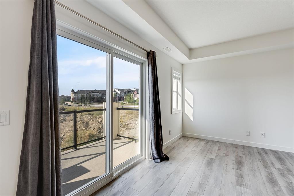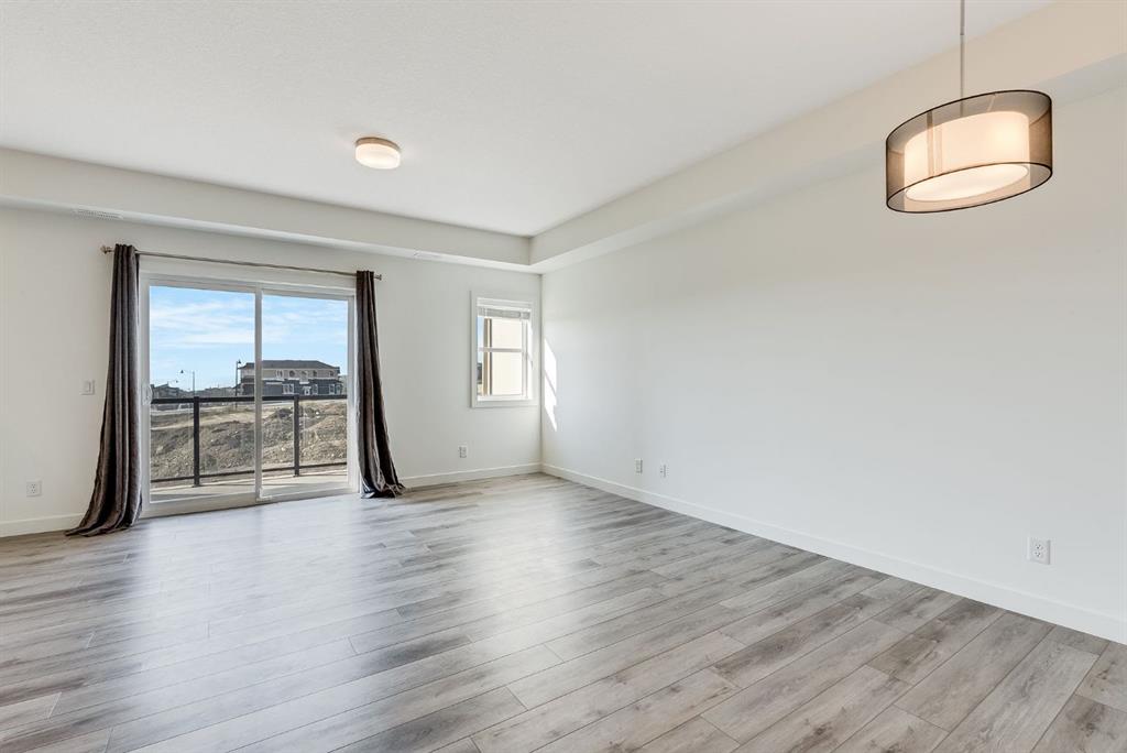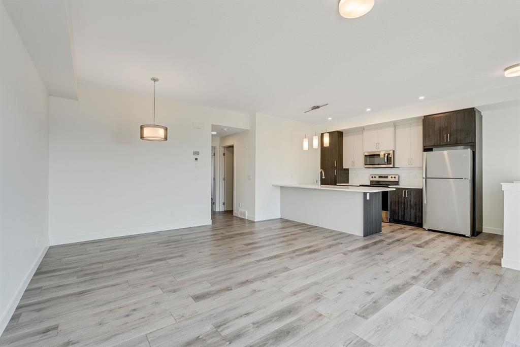 Exceptional Value in this Modern top-unit stacked townhouse in the highly desirable community of Springbank, offering 1,082 sq. ft. of stylish living space. Built in 2023, this home is in like-new condition and features 1 spacious bedroom, 1 full bathroom, a versatile main-floor office/den and a bright, open-concept living room that leads out to a big balcony with amazing views. The modern kitchen is a true showpiece, designed with both style and functionality in mind. It features two-tone cabinetry, combining light upper cabinets with rich, dark lower cabinets for a sleek, contemporary look. Quartz countertops provide generous workspace, complemented by a large island with seating—perfect for casual dining or entertaining. The kitchen is equipped with stainless steel appliances, all seamlessly integrated for a polished, upscale appearance. Additional highlights include a subway tile backsplash, pendant lighting over the island, and Luxury Vinyl Plank (LVP) flooring that flows seamlessly throughout the main living areas. The attached oversized single garage and convenient visitor parking complete this exceptional unit. This home is ideally located across the street from Aspen Landing, offering an abundance of shops, restaurants, and amenities just steps away. With easy access to 85th Street SW, 17th Avenue SW, Stoney Trail, and the 69 Street LRT Station, commuting to Downtown Calgary or anywhere in the city is effortless. Book your private showing today and experience this stunning home in one of Calgary’s most sought-after neighborhoods !