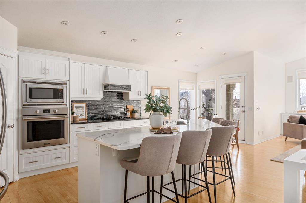 Welcome to this beautifully maintained bungalow in the highly sought-after community of Signal Hill, offering comfort, elegance, and exceptional living space both inside and out. Step through the grand entrance and be greeted by soaring vaulted ceilings and an inviting, light-filled layout designed for everyday living and entertaining. The main floor features a spacious living area anchored by one of two gas fireplaces, creating a warm and welcoming atmosphere. The kitchen is both stylish and functional, complete with granite countertops, a built-in oven, gas cooktop, ample cabinetry, and thoughtful built-ins throughout the home. Convenience meets practicality with main floor laundry and a double car garage. Stay comfortable year-round with air conditioning and enjoy peace of mind with a newer water heater. The primary ensuite offers a spa-like experience, highlighted by a luxurious steam shower — your own private retreat. Downstairs, the fully developed basement expands your living space with a large entertainment area, perfect for movie nights, games, or hosting family and friends. A second gas fireplace adds extra warmth and ambiance. Outdoors, you’ll find a large backyard designed for relaxation and entertaining, featuring a spacious deck with pergola and underground sprinklers to keep the yard looking its best with ease. This well-cared-for home combines quality upgrades, generous space, and an unbeatable location — a rare opportunity in one of Calgary’s most desirable neighbourhoods.