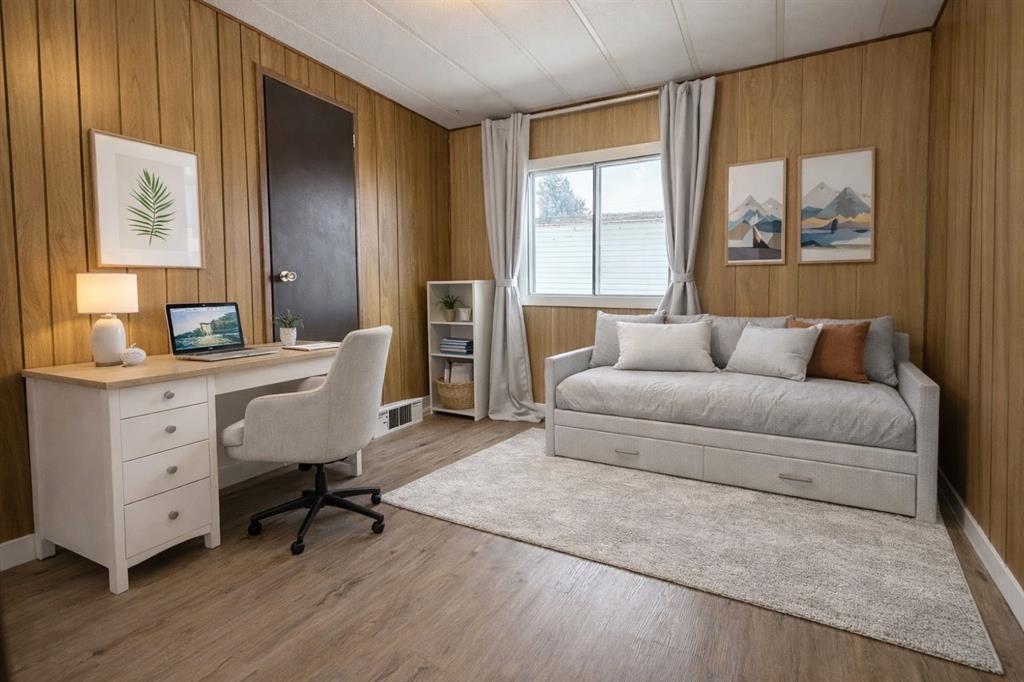 Welcome to this bright and well-cared-for 2-bedroom home offering comfortable living, functional spaces, and a peaceful setting in the friendly Village of Edgerton. Step inside through the large front porch/entry, providing plenty of room for coats, boots, and everyday storage — a practical feature you’ll appreciate year-round. The home opens into a spacious living area filled with natural light and flows seamlessly into the dining space and kitchen, creating an inviting layout for both relaxing and entertaining. The kitchen offers ample cabinetry and workspace, while the oversized back entry with its own sink adds extra convenience for busy households, gardening, or cleanup. You’ll find two comfortable bedrooms and a full bathroom with double vanity, giving extra counter space and functionality for families or guests. Outside, enjoy your own private retreat with a vinyl-fenced yard featuring two gates for easy access, plus raised garden beds and an established raspberry patch — perfect for those who love to grow their own produce or spend time outdoors. Affordable, low-maintenance, and move-in ready, this property is ideal for first-time buyers, downsizers, or anyone looking for small-town living with great outdoor space. - Some photos have been virtually staged using AI to illustrate potential room layout and furnishing options.
