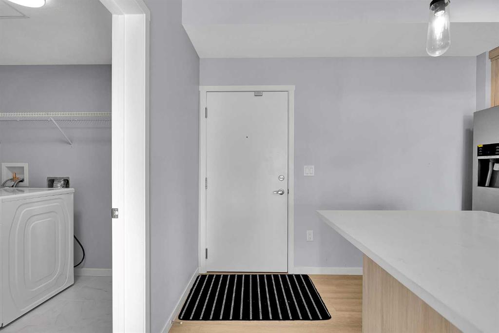 Welcome to this bright and spacious 2-bedroom, 2-bathroom condo filled with natural light and designed with comfort and functionality in mind. This open-concept unit features 9’ ceilings, luxury vinyl plank flooring, Low-E triple-glazed windows, electric baseboard heating, and air conditioning for year-round comfort. The stylish kitchen is the heart of the home, showcasing quartz countertops, stainless steel appliances, ample cabinetry, an elegant backsplash, and a central breakfast island. The kitchen flows seamlessly into the dining area and inviting living room, creating an ideal space for both everyday living and entertaining. The well-designed layout offers two generously sized bedrooms, including a primary suite complete with a walk-in closet and a private ensuite featuring a standing shower with upgraded cabinetry providing additional drawer storage. The second bedroom is thoughtfully positioned next to the main bathroom, which also features upgraded cabinetry with extra drawers for enhanced organization. In-unit laundry and additional storage further enhance everyday convenience. Step outside to the large, private balcony—perfect for morning coffee or evening gatherings—complete with a BBQ gas line. Additional features include underground parking. Located in a well-established community, residents enjoy access to an HOA with a tennis court, nearby schools and parks, and an abundance of amenities including Coventry Hills Shopping Centre, VIVO Rec Centre, grocery stores, restaurants, cafés, Home Depot, Superstore, Cineplex, T&T Supermarket, and the North Pointe bus terminal. Conveniently situated less than 10 minutes from Calgary International Airport and with quick access to Deerfoot Trail and Stoney Trail.
