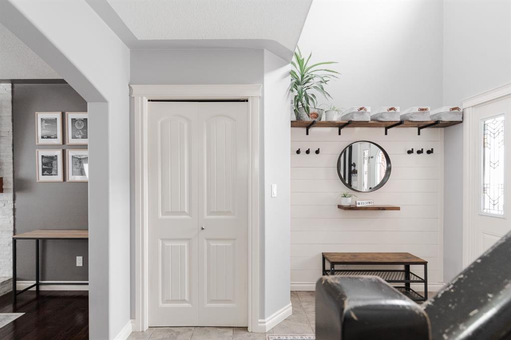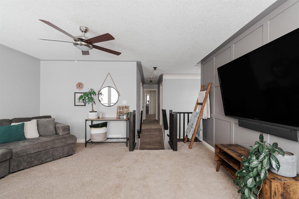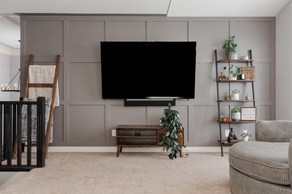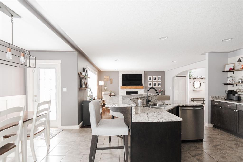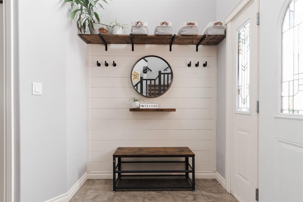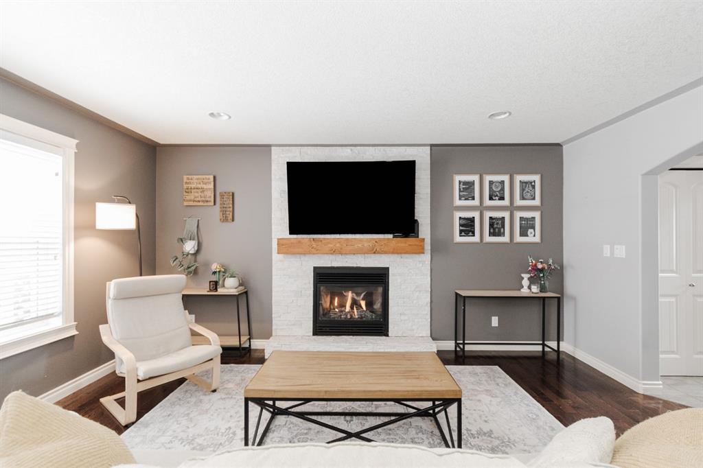 Welcome to 131 Chokecherry Place, a spacious and welcoming Timberlea home set on a generous 6,202 square foot pie lot with a backyard designed for connection, privacy, and everyday enjoyment. With farmhouse inspired modern updates throughout, this home offers a comfortable blend of character, function, and space in a layout that works beautifully for growing families. From the moment you arrive, the long driveway with parking for three vehicles and additional RV parking sets the tone for practicality. Stepping inside, the tiled entry welcomes you with a striking shiplap feature wall, built in shelving, crown mouldings, and a wagon wheel chandelier added in 2020 that immediately gives the home its charming farmhouse feel. The main living area features hardwood floors and a cozy gas fireplace framed by stone veneer and a wood beam feature also completed in 2020 when many updates were done. This space flows seamlessly into the kitchen and dining area, creating an inviting open concept environment for both daily living and entertaining. The kitchen is finished with granite countertops, an eat up island, black sprayer faucet, pantry storage, and a charming shiplap coffee bar with built in shelving. Wainscotting and an updated dining chandelier with Edison bulbs add to the character and warmth of the large space great for entertaining or nights in. The main floor also includes a convenient two piece bathroom with an updated light fixture and wood framed mirror. The laundry area is thoughtfully located off the garage mudroom and includes upper cabinets and a drying rod, making it both functional and efficient. Upstairs, you will find a large bonus room with a feature wall, perfect for movie nights or a second family space. The primary bedroom is spacious and includes a walk in closet and a five piece ensuite with dual sinks and a jetted tub. The bed frame and mounted nightstands in the primary bedroom are all included. The upper level is completed with updated finishes that tie the space together nicely, hosting two additional bedrooms and a four piece bathroom. The basement offers a flexible layout suited for a home gym, recreation space, or guest use. A four piece bathroom is included, along with cork flooring that provides warmth and moisture resistance for your home gym or entertaining space. A Murphy bed is included, along with multiple televisions that can stay, and built in speakers with a Sonos system, receiver included. This space also has a separate entrance into the backyard for easy indoor outdoor access. Outside, the large pie shaped backyard offers a mix of open space and privacy. With added privacy walls on the deck, planted trees, and the natural pie lot shape help create a peaceful setting. The gazebo stays, along with a gas line for the barbecue, a fire pit area, a two tiered deck, and a dedicated dog run. This yard has clearly been enjoyed and designed for making memories. Additional features include central air conditioning and an updated humidifier.