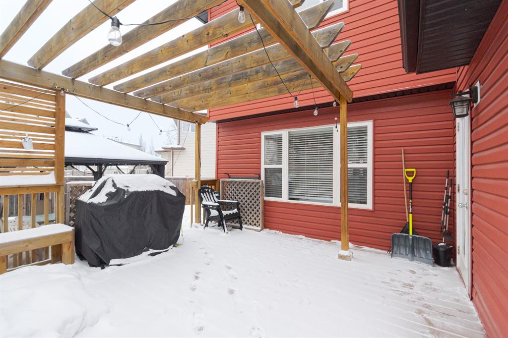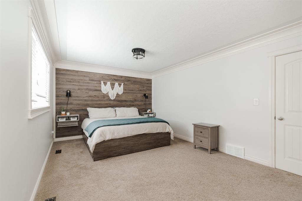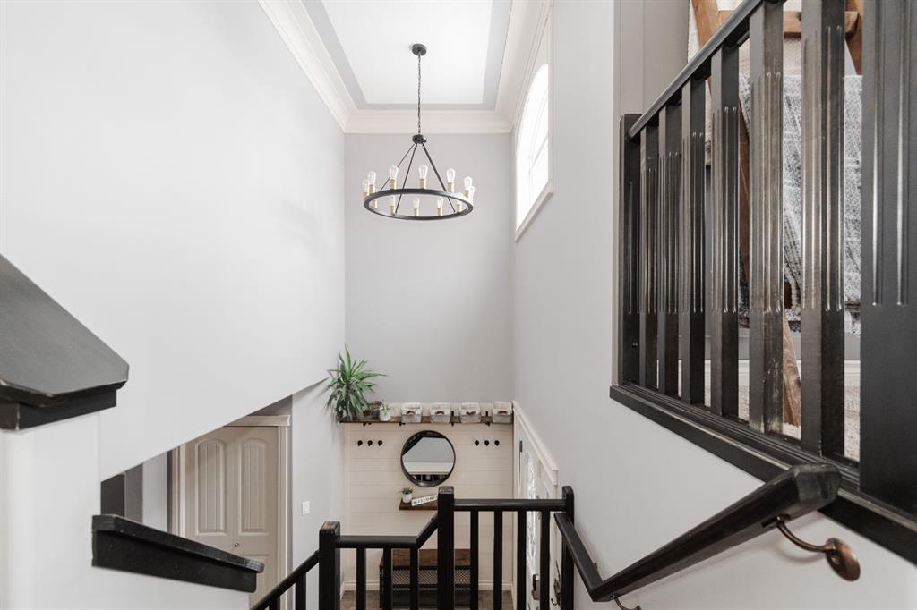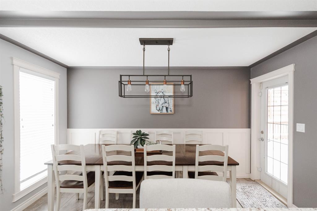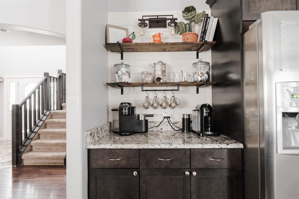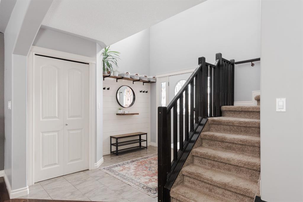 Welcome to 131 Chokecherry Place, a spacious and welcoming Timberlea home set on a generous 6,202 square foot pie lot with a backyard designed for connection, privacy, and everyday enjoyment. With farmhouse inspired modern updates throughout, this home offers a comfortable blend of character, function, and space in a layout that works beautifully for growing families. From the moment you arrive, the long driveway with parking for three vehicles and additional RV parking sets the tone for practicality. Stepping inside, the tiled entry welcomes you with a striking shiplap feature wall, built in shelving, crown mouldings, and a wagon wheel chandelier added in 2020 that immediately gives the home its charming farmhouse feel. The main living area features hardwood floors and a cozy gas fireplace framed by stone veneer and a wood beam feature also completed in 2020 when many updates were done. This space flows seamlessly into the kitchen and dining area, creating an inviting open concept environment for both daily living and entertaining. The kitchen is finished with granite countertops, an eat up island, black sprayer faucet, pantry storage, and a charming shiplap coffee bar with built in shelving. Wainscotting and an updated dining chandelier with Edison bulbs add to the character and warmth of the large space great for entertaining or nights in. The main floor also includes a convenient two piece bathroom with an updated light fixture and wood framed mirror. The laundry area is thoughtfully located off the garage mudroom and includes upper cabinets and a drying rod, making it both functional and efficient. Upstairs, you will find a large bonus room with a feature wall, perfect for movie nights or a second family space. The primary bedroom is spacious and includes a walk in closet and a five piece ensuite with dual sinks and a jetted tub. The bed frame and mounted nightstands in the primary bedroom are all included. The upper level is completed with updated finishes that tie the space together nicely, hosting two additional bedrooms and a four piece bathroom. The basement offers a flexible layout suited for a home gym, recreation space, or guest use. A four piece bathroom is included, along with cork flooring that provides warmth and moisture resistance for your home gym or entertaining space. A Murphy bed is included, along with multiple televisions that can stay, and built in speakers with a Sonos system, receiver included. This space also has a separate entrance into the backyard for easy indoor outdoor access. Outside, the large pie shaped backyard offers a mix of open space and privacy. With added privacy walls on the deck, planted trees, and the natural pie lot shape help create a peaceful setting. The gazebo stays, along with a gas line for the barbecue, a fire pit area, a two tiered deck, and a dedicated dog run. This yard has clearly been enjoyed and designed for making memories. Additional features include central air conditioning and an updated humidifier.