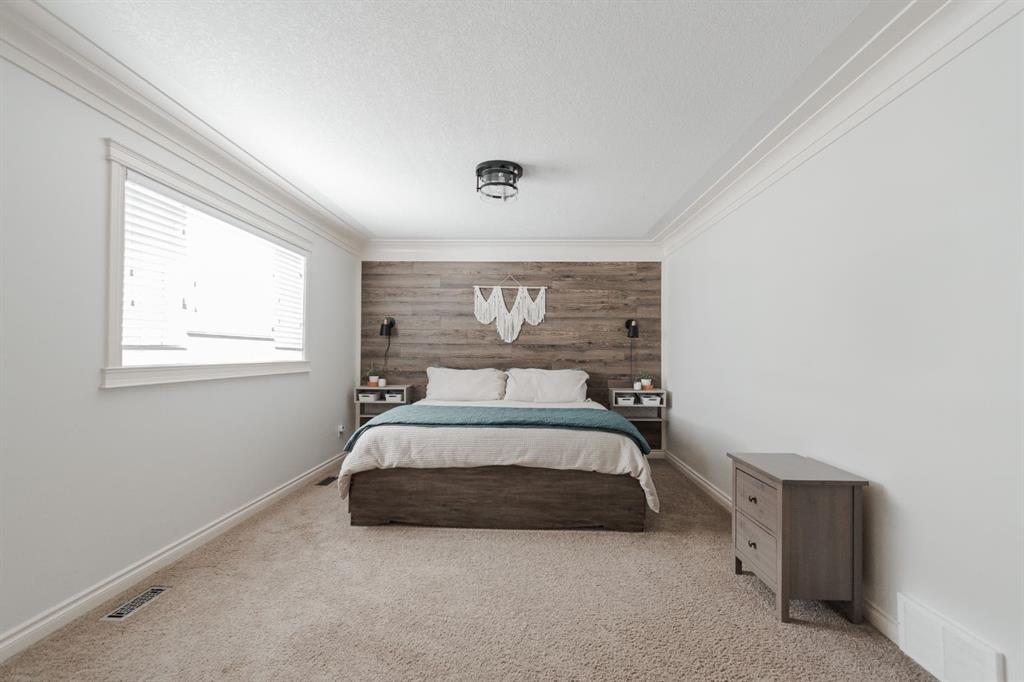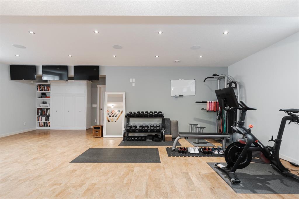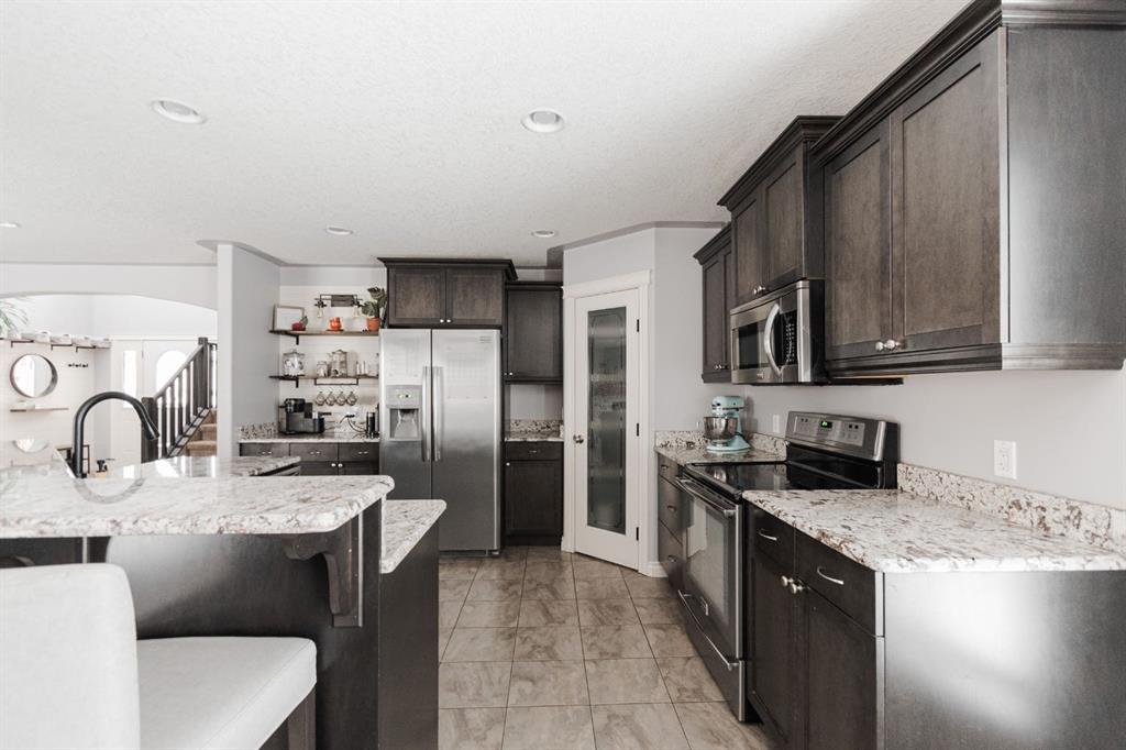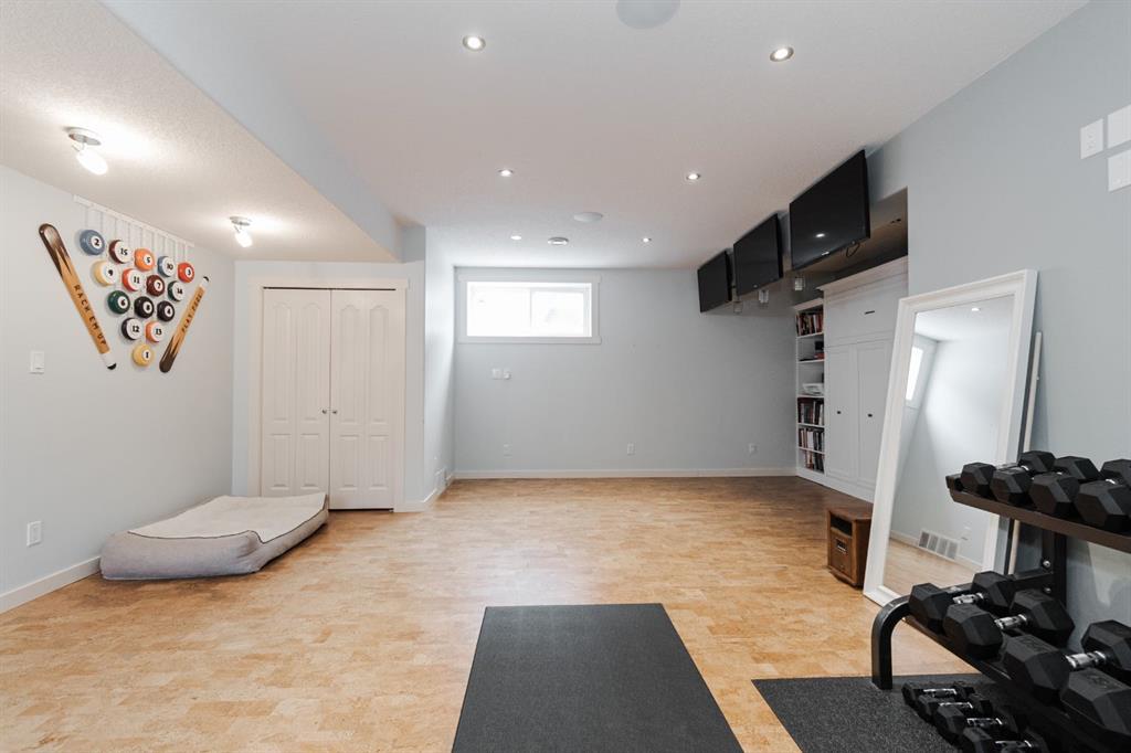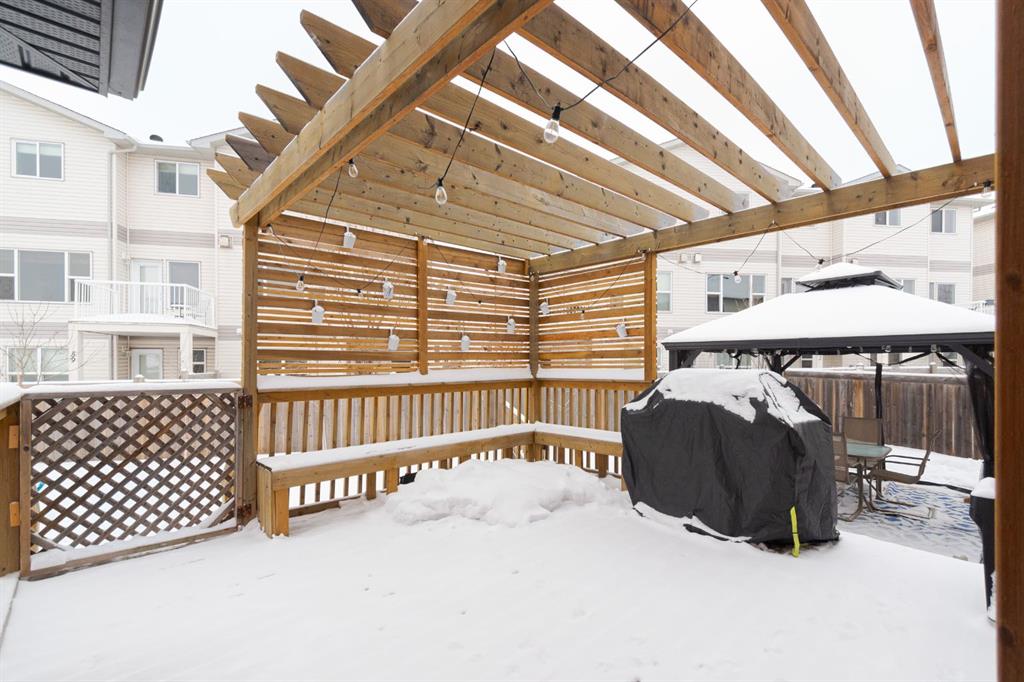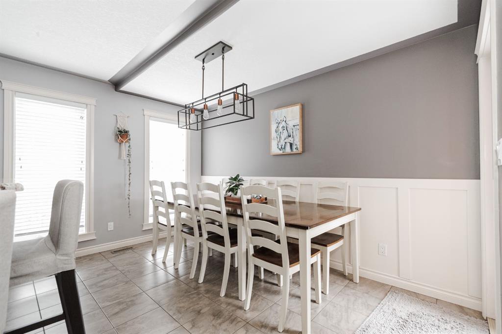 Welcome to 131 Chokecherry Place, a spacious and welcoming Timberlea home set on a generous 6,202 square foot pie lot with a backyard designed for connection, privacy, and everyday enjoyment. With farmhouse inspired modern updates throughout, this home offers a comfortable blend of character, function, and space in a layout that works beautifully for growing families. From the moment you arrive, the long driveway with parking for three vehicles and additional RV parking sets the tone for practicality. Stepping inside, the tiled entry welcomes you with a striking shiplap feature wall, built in shelving, crown mouldings, and a wagon wheel chandelier added in 2020 that immediately gives the home its charming farmhouse feel. The main living area features hardwood floors and a cozy gas fireplace framed by stone veneer and a wood beam feature also completed in 2020 when many updates were done. This space flows seamlessly into the kitchen and dining area, creating an inviting open concept environment for both daily living and entertaining. The kitchen is finished with granite countertops, an eat up island, black sprayer faucet, pantry storage, and a charming shiplap coffee bar with built in shelving. Wainscotting and an updated dining chandelier with Edison bulbs add to the character and warmth of the large space great for entertaining or nights in. The main floor also includes a convenient two piece bathroom with an updated light fixture and wood framed mirror. The laundry area is thoughtfully located off the garage mudroom and includes upper cabinets and a drying rod, making it both functional and efficient. Upstairs, you will find a large bonus room with a feature wall, perfect for movie nights or a second family space. The primary bedroom is spacious and includes a walk in closet and a five piece ensuite with dual sinks and a jetted tub. The bed frame and mounted nightstands in the primary bedroom are all included. The upper level is completed with updated finishes that tie the space together nicely, hosting two additional bedrooms and a four piece bathroom. The basement offers a flexible layout suited for a home gym, recreation space, or guest use. A four piece bathroom is included, along with cork flooring that provides warmth and moisture resistance for your home gym or entertaining space. A Murphy bed is included, along with multiple televisions that can stay, and built in speakers with a Sonos system, receiver included. This space also has a separate entrance into the backyard for easy indoor outdoor access. Outside, the large pie shaped backyard offers a mix of open space and privacy. With added privacy walls on the deck, planted trees, and the natural pie lot shape help create a peaceful setting. The gazebo stays, along with a gas line for the barbecue, a fire pit area, a two tiered deck, and a dedicated dog run. This yard has clearly been enjoyed and designed for making memories. Additional features include central air conditioning and an updated humidifier.