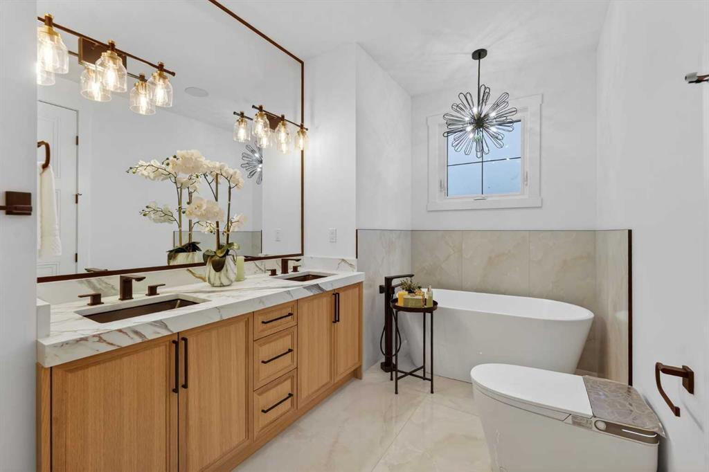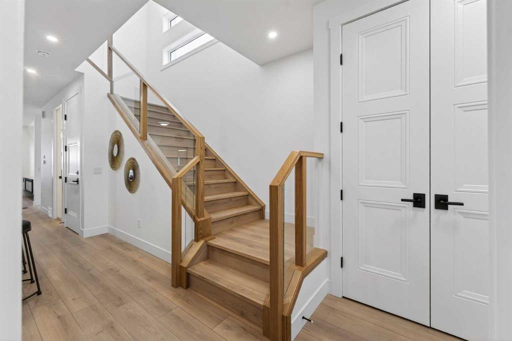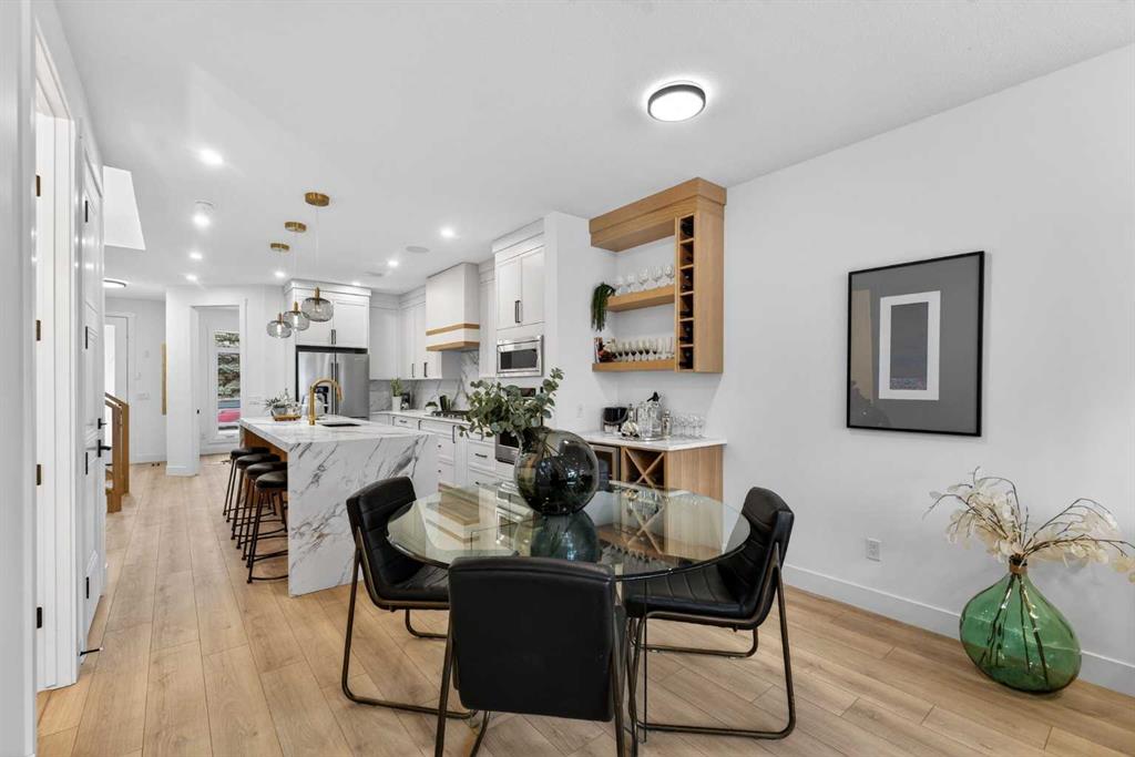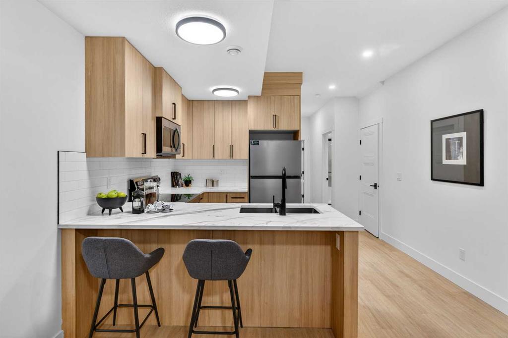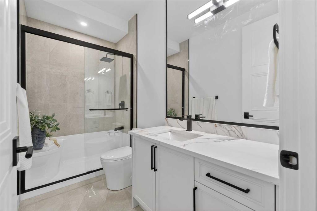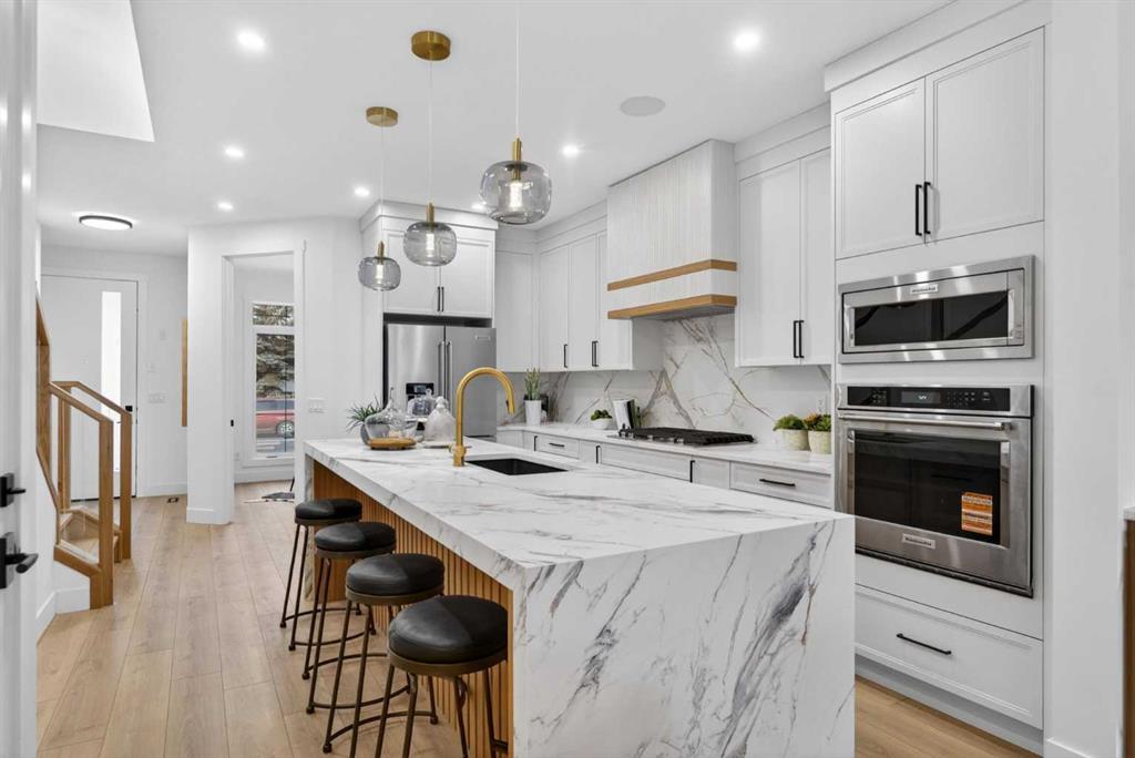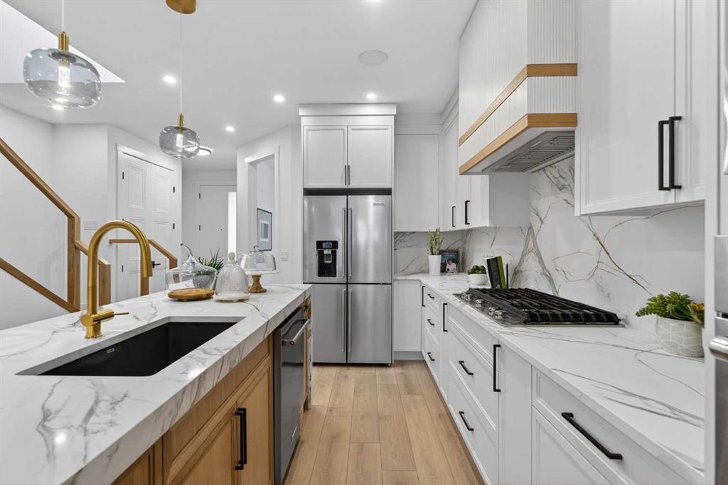 Welcome to the heart of Capitol Hill, one of Calgary’s most established and centrally located inner city neighbourhoods. This newly built semi detached home offers approximately 2,500 sq ft of well planned living space, including a legal basement suite, designed to balance modern style with everyday functionality. The main level features a thoughtful layout with a dedicated front office, ideal for working from home, while large windows throughout provide excellent natural light. The kitchen is both practical and refined, showcasing KitchenAid appliances, custom cabinetry, quartz countertops, and a clean full slab backsplash that delivers a seamless and modern finish. The kitchen and dining areas are designed for efficiency and comfort, flowing naturally into the living room for relaxed daily living and entertaining. Upstairs, the primary suite offers a private retreat with a spacious walk in closet and a well appointed ensuite with dual vanities and contemporary finishes. Two additional bedrooms, a full bath, bonus area and a conveniently located laundry room complete the upper level, providing a layout that supports family living with ease. The legal one bedroom spacious basement suite is fully self contained with a private entrance, full kitchen, laundry space, and bathroom, making it an excellent option for rental income or extended family. Thoughtful separation between living spaces ensures comfort and privacy throughout the home. Additional features include engineered hardwood flooring on the main and upper levels, durable LVP flooring in the basement, smart toilets, and a double detached garage offering secure parking and storage. The exterior features a clean stucco finish with modern detailing for lasting curb appeal. Capitol Hill is known for its mature streets, strong sense of community, and unbeatable access to Confederation Park, SAIT, the University of Calgary, schools, transit, and downtown. A home that delivers quality construction, flexible living, and long term value in a highly desirable inner city location. Move in ready.