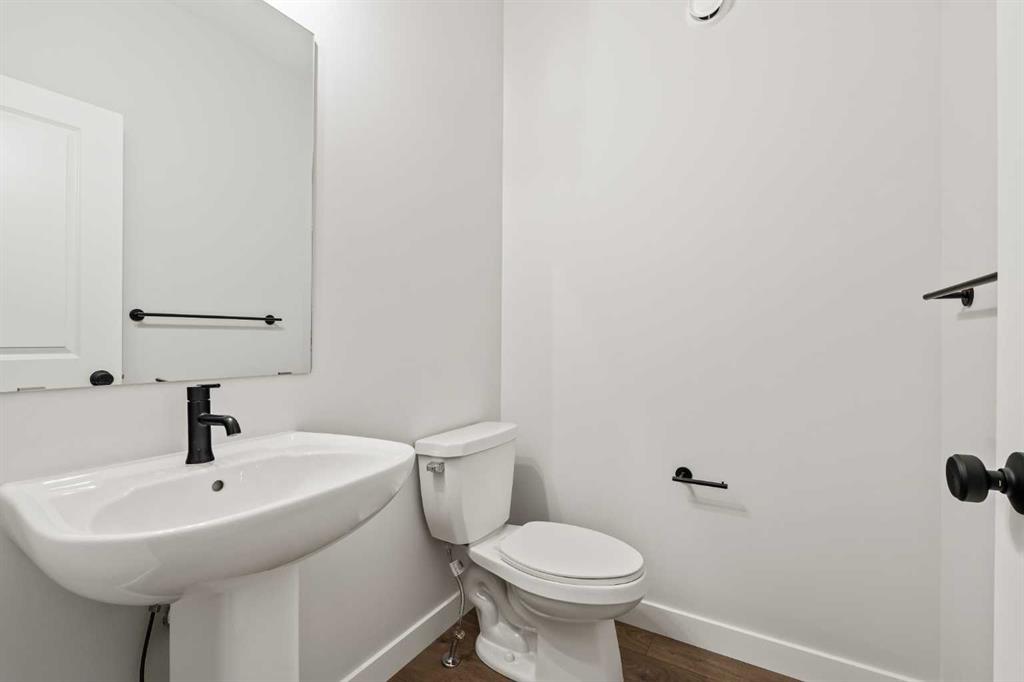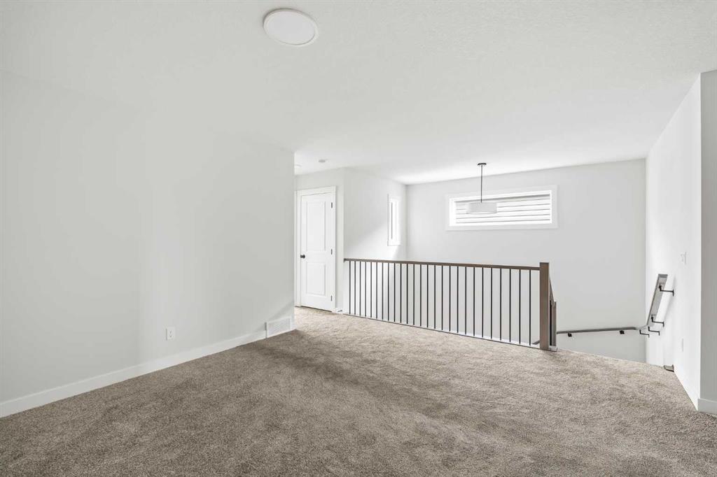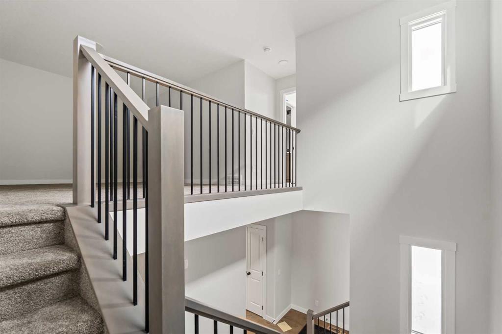 Welcome to the Purcell 24 - a brand new home with 2 living areas, 4 bedrooms, 2.5 bathrooms, a home office / flex space and an undeveloped walkout basement that awaits your imagination! Situated on a bright and sunny lot with a south-facing backyard, this beautiful new home has a Rustic Contemporary exterior and timeless finishing throughout. The main level is anchored by a bright, open-concept design and features a large central den/flex space - perfect for a home office or study. The stunning kitchen is finished with timeless white and wood shaker cabinetry, a large central island with seating, and a convenient walk-through pantry connecting directly to the mudroom and garage, offering exceptional everyday functionality. The kitchen seamlessly flows into the spacious living and dining areas, creating an inviting space for entertaining and family gatherings. A wall of windows and patio doors on the back of the home overlook the backyard and allow for optimal natural light to flow throughout the home with the backyard's south exposure. The main level great room has a central fireplace that is perfect for cozy winter nights. On the upper level, a generous central bonus room thoughtfully separates the primary retreat from the other three bedrooms. The primary suite is a true retreat, complete with soaring vaulted ceilings, an expansive walk-in closet and a luxurious 5-piece ensuite featuring dual sinks, a soaker tub, and a walk-in tiled shower. Three additional bedrooms, a full 5-piece bathroom with dual sinks, and a dedicated laundry space complete the upper level. This brand-new home is fully move-in ready and showcases quality upgrades throughout and exceptional resale value and appeal with 4 bedrooms above grade, a dedicated home office space and a full walkout basement that offers endless future development possibilities. Both Builder Warranty and Alberta New Home Warranty are included, allowing you to purchase with confidence and peace of mind. Buy now and be settled right away into your brand new home!