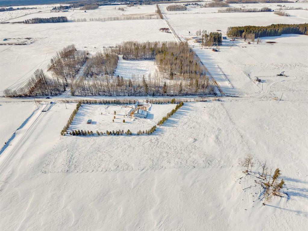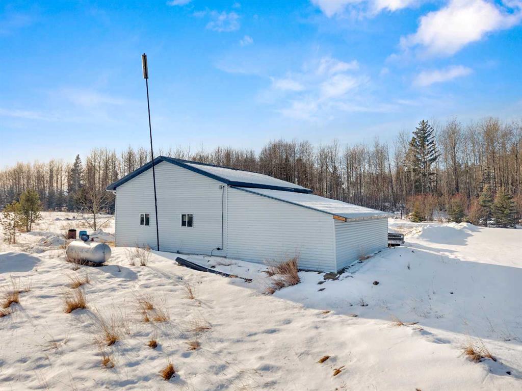 Private 4.81 acres north of Rocky Mountain House, offering peaceful rural living with beautiful valley views. This scenic acreage provides a quiet setting ideal for families, hobbyists, or anyone looking to enjoy country living with space and privacy. The oversized detached garage, built in 2010, is fully equipped with 220 power, propane heat, insulated walls, a concrete floor with drain, and a durable metal-clad interior. An additional 18’ x 30’ lean-to on the side of the garage offers added covered space and additional power, providing excellent flexibility for storage, equipment, or workshop use. A septic field installed in 2017 remains on the property. The mobile home was removed in 2020, and a concrete pad and walkway remain in place, offering a potential starting point for future development (subject to county approval). The open layout of the land allows for a variety of potential uses, all set within a peaceful and scenic rural setting just minutes from Rocky Mountain House.