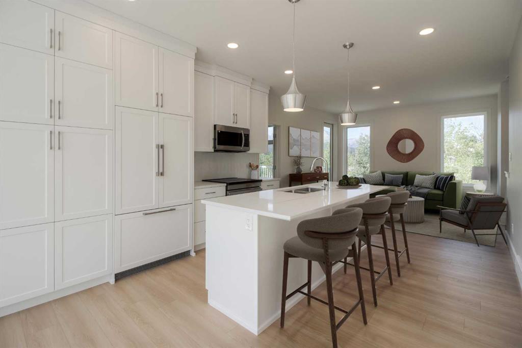 Welcome to the Aspen model by Stranville Living Master Builder, a brand new, thoughtfully designed home located in the heart of the Rocky Mountains in beautiful Coleman, Alberta. This is not your typical floor plan—it’s a mountain-inspired design that fully embraces its surroundings and delivers a layout that feels both functional and genuinely unique. One of the standout features of this home is the main-floor bedroom complete with a private balcony, offering peaceful and picturesque Rocky Mountain views that feel tucked away yet always within sight. Also on the main level is the oversized double attached garage, which opens out to its own private patio—perfect for hosting, relaxing, or turning garage nights into full-blown gatherings. The second level serves as the primary living space and is bright, open, and designed to impress. Tall ceilings and oversized windows flood the space with natural light while framing the mountain backdrop. The kitchen sits perfectly between the living room and dining area, creating a natural separation without sacrificing openness. Finished with quartz countertops, an induction cooktop, and Stranville’s signature panelled Fisher & Paykel fridge and dishwasher, the kitchen blends high-end style with everyday practicality. Just off the living room is the primary bedroom, featuring vaulted ceilings and a striking window that captures the mountain views beautifully. The walk-in closet connects directly to the ensuite and also houses the main-floor laundry for added convenience. The ensuite itself is finished with dual vanities, a walk-in shower, and an upgraded wall-mounted toilet, delivering a clean, modern feel. The upper level completes the home with two additional bedrooms, one offering a walk-in closet and the other a spacious layout with large windows. A centrally located four-piece bathroom serves this level, making it ideal for family, guests, or flexible living arrangements. This is mountain living done right—modern design, elevated finishes, and a layout that truly takes advantage of its Rocky Mountain setting. GST IS INCLUDED IN THE LIST PRICE, As well as a 10 year new home warranty. Photos are virtually staged.