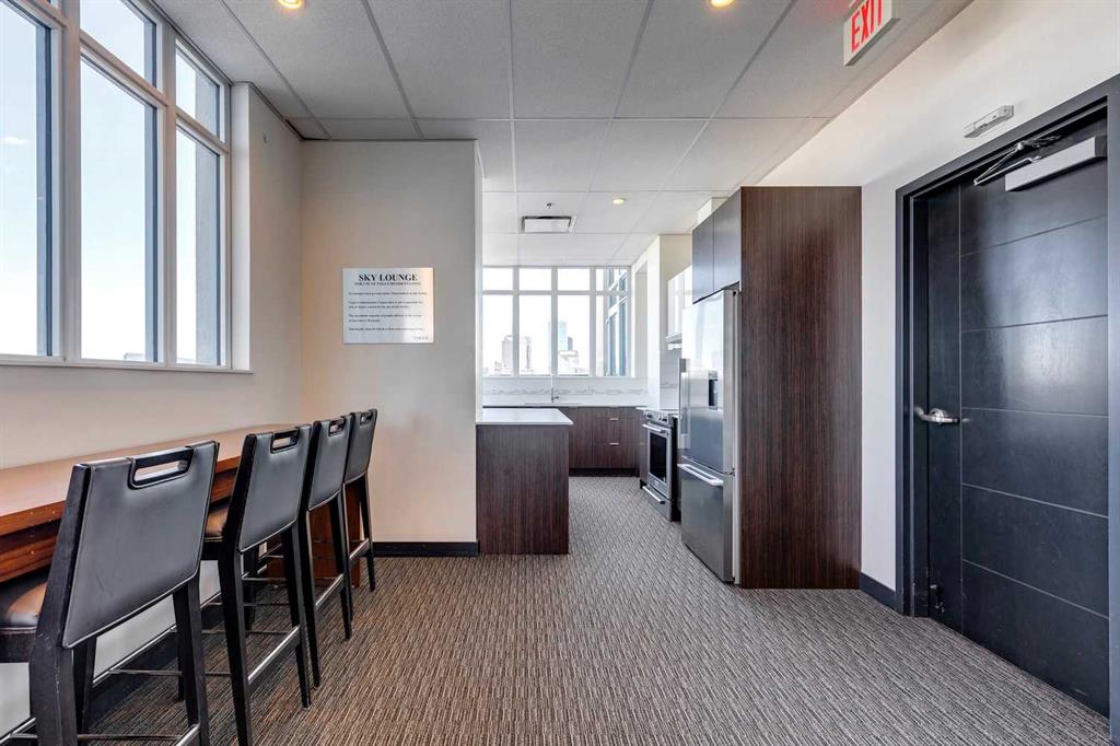 Experience elevated penthouse living at The Vogue, perched high above the city’s financial core. This rare 2 bedroom, 2 bathroom residence features soaring vaulted ceilings, floor-to-ceiling windows, and TWO well-placed balconies that capture sweeping urban views, river views, and natural light throughout the day. The thoughtfully designed layout includes a spacious primary retreat with a walk-in closet and an exceptional 5-piece ensuite with double vanity, a separate in-unit laundry room, and open-concept living ideal for both everyday comfort and entertaining. Offered in only a limited number of high-rise units, this penthouse delivers a truly exclusive living experience. Completing the package are TWO TITLED underground parking stalls (UNITS 1 & 2) with immediate access from the parkade entrance - a rare and valuable convenience in the downtown core.