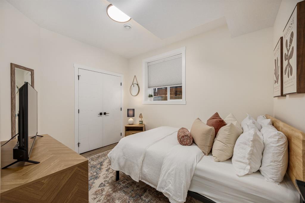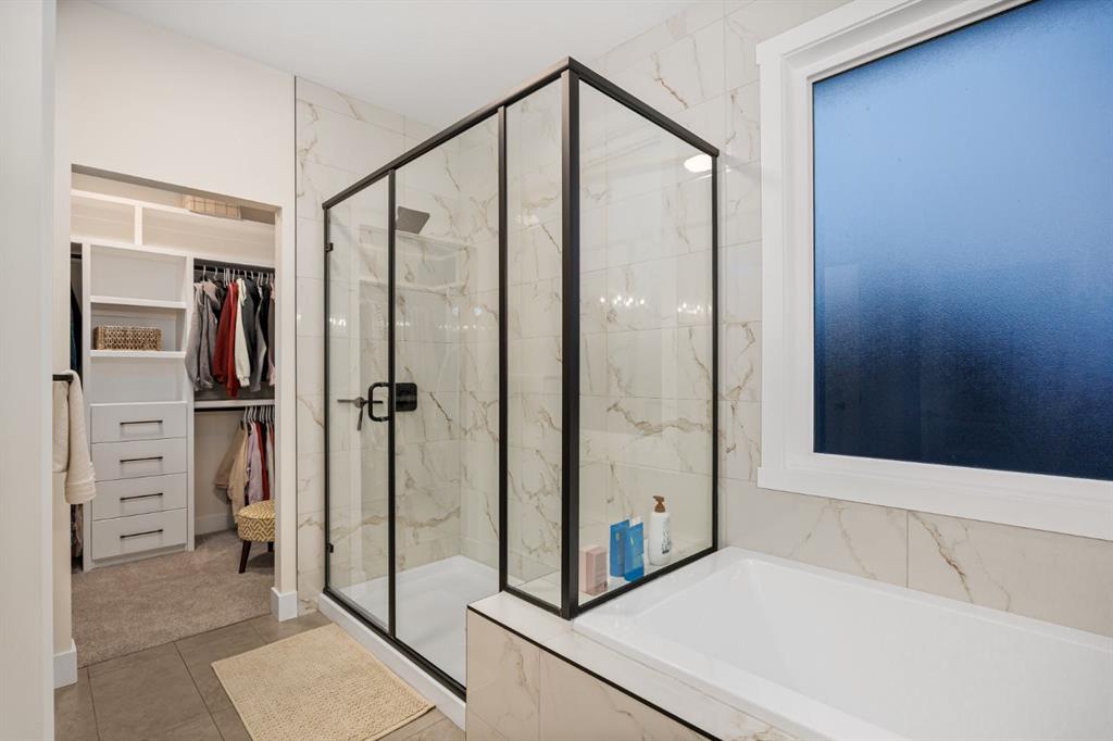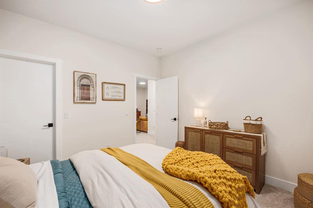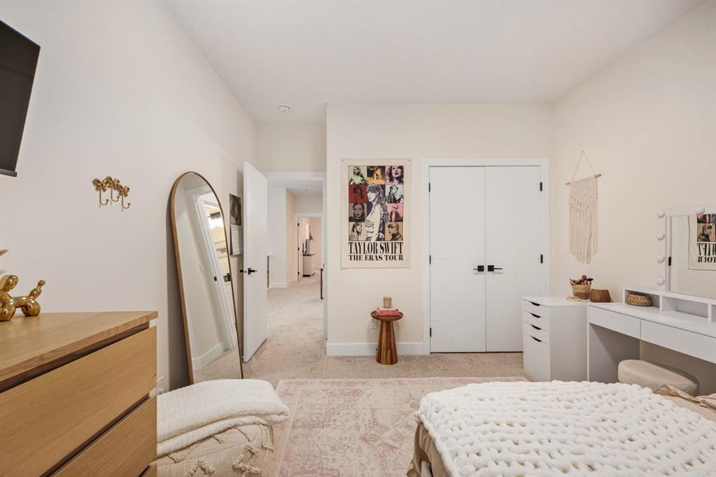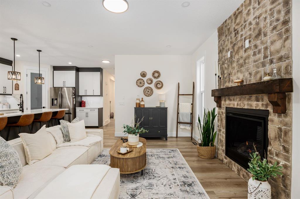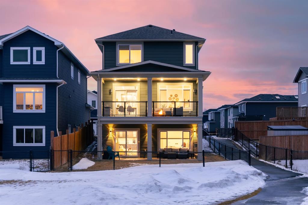 Discover refined living in this impeccably crafted 2024 custom-built two-storey walkout by Shayman Homes, located in the sought-after lake community of Lakewood in Strathmore. Backing onto a lush green space and walking path with no neighbours behind, this east-facing home offers nearly 3,000 sq.ft. of beautifully designed living space with luxury finishes throughout. The striking exterior with stone accents and extended driveway welcomes you into a bright foyer filled with natural light from oversized windows. The main floor features 9’ ceilings and luxury laminate flooring, flowing through a thoughtfully designed layout. A private main-floor office with an 8’ doorway provides the perfect workspace or flex room. The chef’s kitchen is the heart of the home, showcasing an expansive quartz island, soft-close white cabinetry with black hardware, undermount sink, and premium stainless steel appliance package including a gas range, chimney-style hood fan, built-in oversized microwave, dishwasher, and refrigerator with water hookup. A spacious pantry with built-in shelving and automatic lighting adds everyday convenience. The dining and living areas are flooded with natural light and anchored by a stunning floor-to-ceiling stone gas fireplace with custom mantel. Step outside to the covered upper deck spanning the width of the home, complete with recessed lighting, custom glass railings, and a gas line rough-in—ideal for entertaining while overlooking the landscaped yard and park. Upstairs features a vaulted ceiling opening into a massive bonus room, upper laundry with tile flooring and quartz counters, and three generously sized bedrooms. The primary retreat offers a spa-inspired ensuite with dual quartz vanity, 5’ soaker tub, floor-to-ceiling tiled shower, a private toilet room, and a walk-in closet with custom built-ins. A stylish 4-piece bathroom completes the level. The fully developed walkout basement extends the living space with 9’ ceilings, luxury laminate flooring, a spacious family room, and a custom 10’ wet bar with quartz counters, tile backsplash, and built-in cabinetry. Two large bedrooms, a 4-piece bathroom, mechanical room, and under-stair storage complete the lower level. Outside, enjoy a covered concrete patio, fully landscaped yard, and unobstructed views of the greenspace and playground. Located minutes from schools, amenities, recreation, and golf, with Calgary just 30 minutes away, Lakewood offers a lifestyle unlike any other. Dont miss your opportunity to own this stunning family home. Book your private showing today.