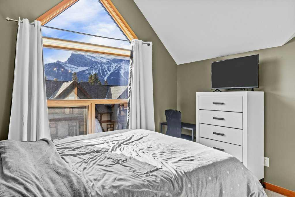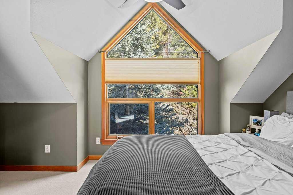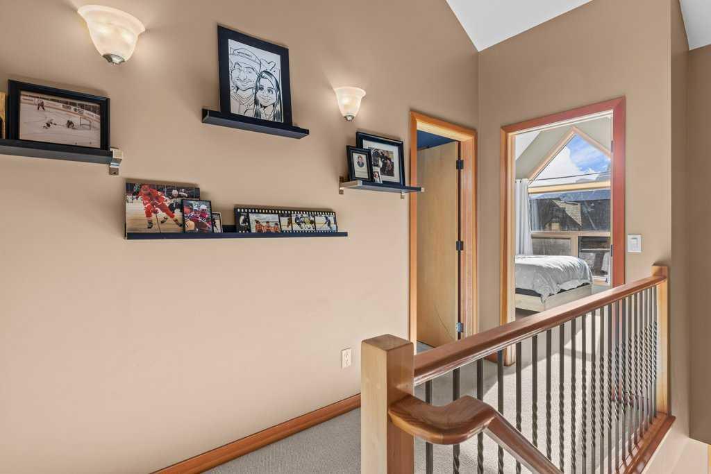 Over 2,000 Sqft of refined living await in this elegant three-level townhome in the quiet, impeccably maintained Eagle Terrace. Mountain-inspired details shine throughout, from the slate tile entry and staircase to the rich hardwood floors and dramatic river rock fireplace. Expansive windows fill the home with natural light, creating a warm yet sophisticated atmosphere. The first floor features in-floor heating, custom built storage, and a large bedroom. On the main floor, an open-concept kitchen, dining, and living area anchored by a large quartz island are perfect for entertaining. Step out onto the spacious decks to relax and take in the fresh mountain air. Upstairs, additional spacious bedrooms with walk-in closets offer comfort and privacy. Just minutes from downtown Canmore, enjoy walking access to restaurants, the Bow River, nearby trails, and Cougar Creek. Experience the best of mountain living in the heart of Canmore
