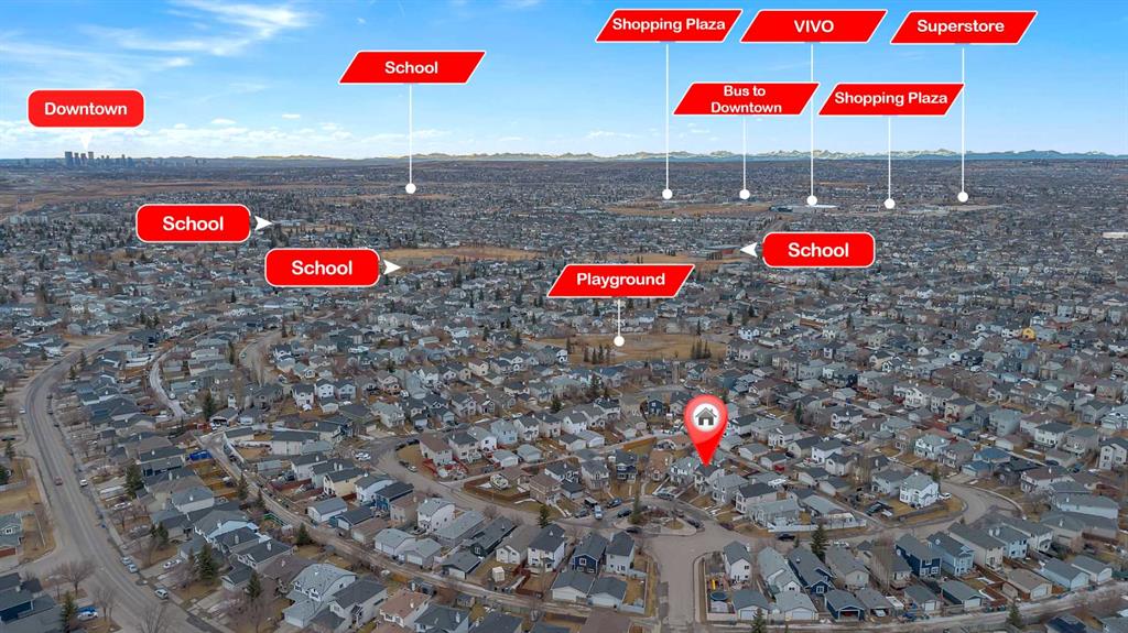 Opportunity knocks! This 2-storey home, tucked away on a quiet cul-de-sac, is full of potential and ready for your personal touch. Ideal for first-time buyers or investors, the home features 3 bedrooms and 1.5 bathrooms with a functional layout that’s easy to improve over time. The basement awaits the developement exactly as you want it, has roughed-in plumbing, PEX pipes and 2 windows 1 being egress for your 4th bedroom. New hot water tank 4 years ago & furnace was cleaned and serviced in 2024. You’ll love the huge southwest-facing backyard, offering sunshine all day—perfect for summer BBQs—and complete with RV parking for added convenience. Recent updates include newer shingles, appliances, and kitchen countertops, making this a great starting point for sweat equity. The location truly shines: walking distance to 6 schools, with easy access to the airport, Deerfoot Trail, Stoney Trail, and CrossIron Mills Mall—making commuting and shopping a breeze. A solid home in a great location with tons of upside—don’t miss this value-packed opportunity!