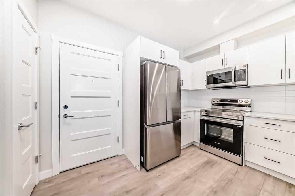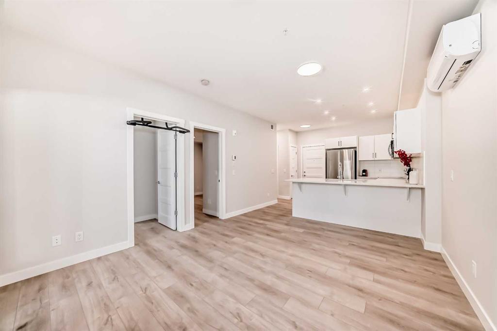 Welcome to Unit 2111, 2117 81 Street SW—a brand-new, 2-bedroom, 1-bath condo offering sophisticated low-rise living in Springbank Hill, one of Calgary’s most sought-after southwest communities. The unit features an efficient, open-concept layout filled with natural light and finished with wide-plank luxury vinyl flooring, designer tilework, and elevated details throughout. The contemporary kitchen is designed to impress with quartz countertops, cabinetry, a central eating bar, and a sleek stainless steel appliance package—perfect for everyday life and effortless entertaining. The bright living area opens to a private oversized patio, ideal for morning coffee or unwinding after work, all just steps from ravine-side pathways and scenic walking trails. Additional highlights include in-suite laundry, a built-in A/C unit, titled heated underground parking. Built by Cove Properties and thoughtfully positioned near Aspen Landing, top schools, dining, and transit options including the 69 Street CTrain Station—plus quick access downtown and easy weekend escapes toward the Canadian Rockies. A rare opportunity to own a luxury, air-conditioned home in a premium southwest location—book your private showing today.