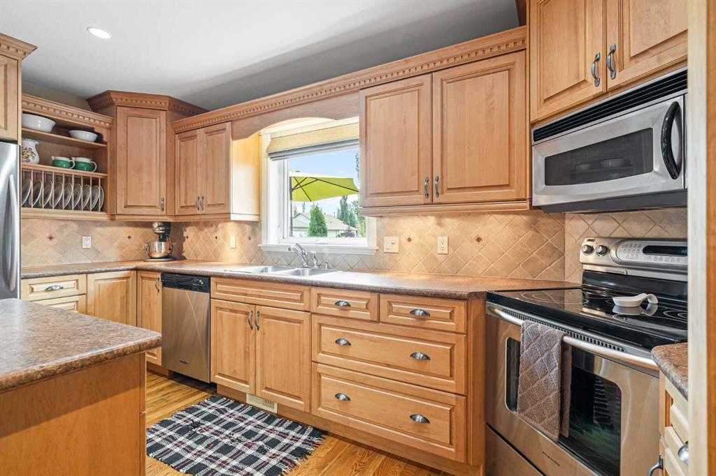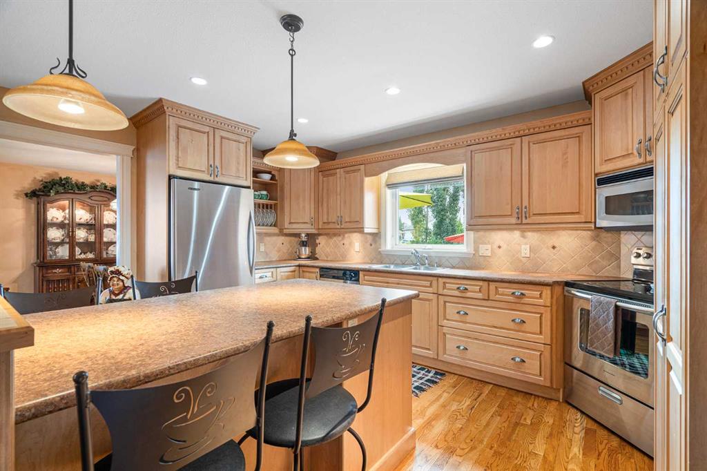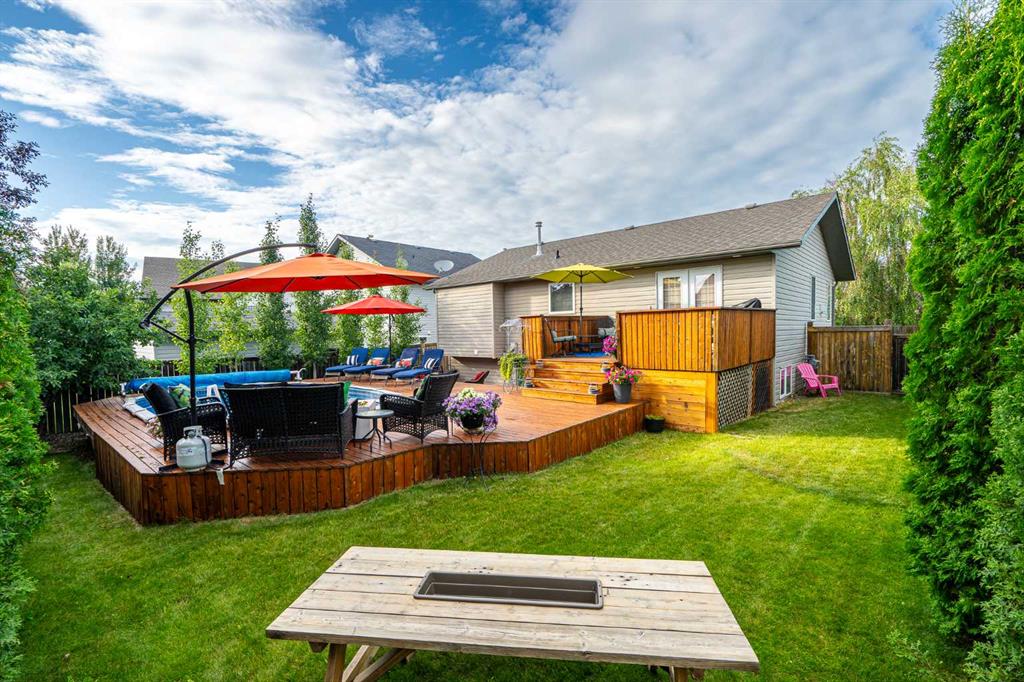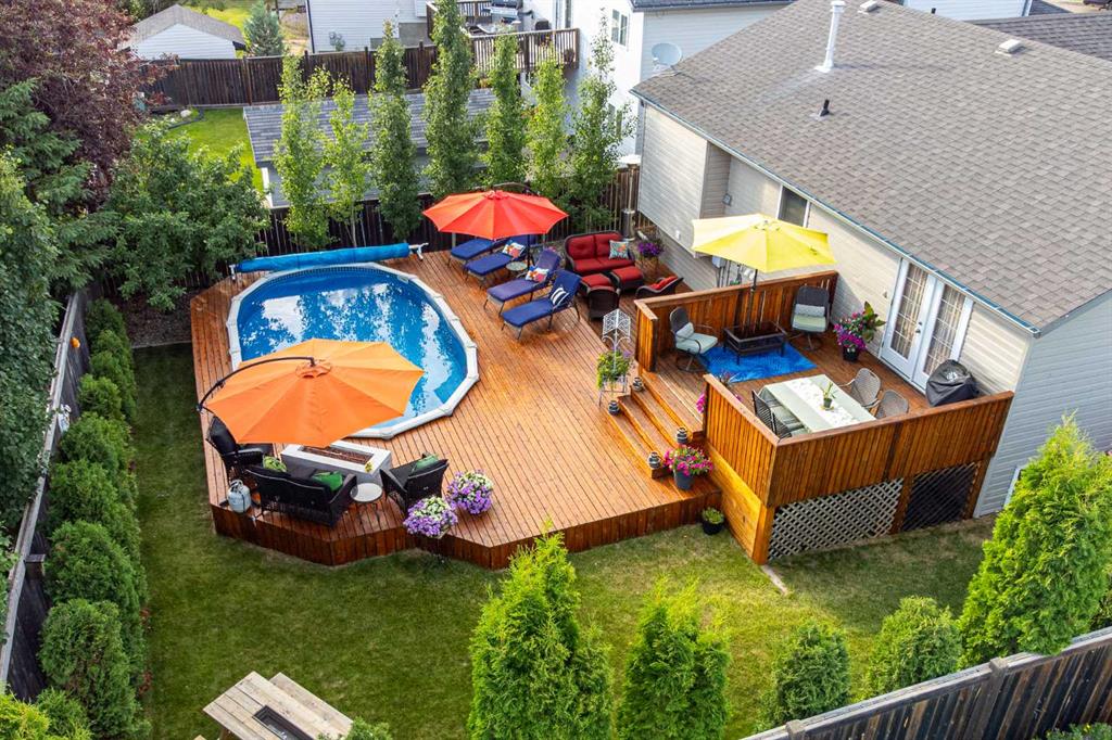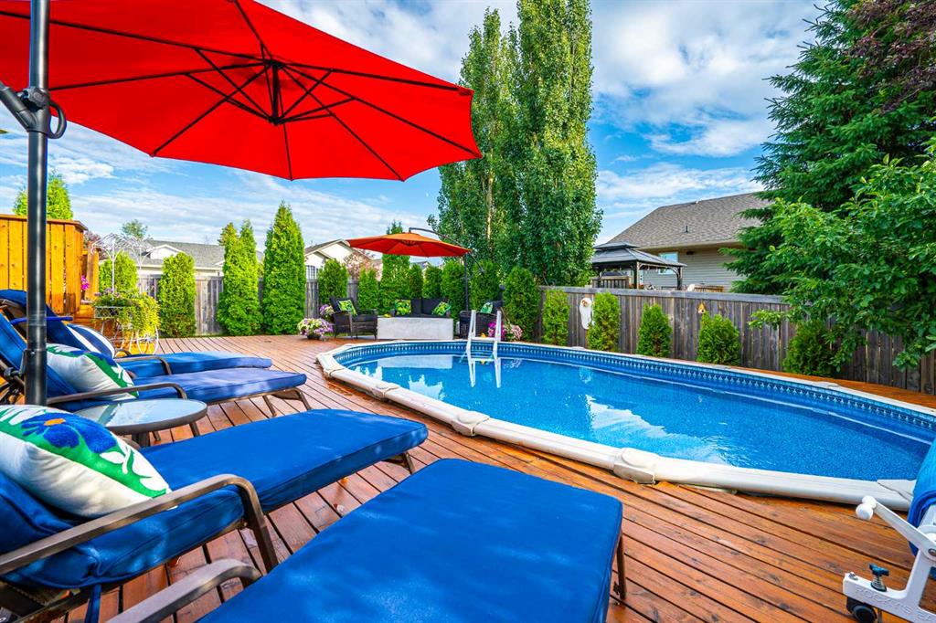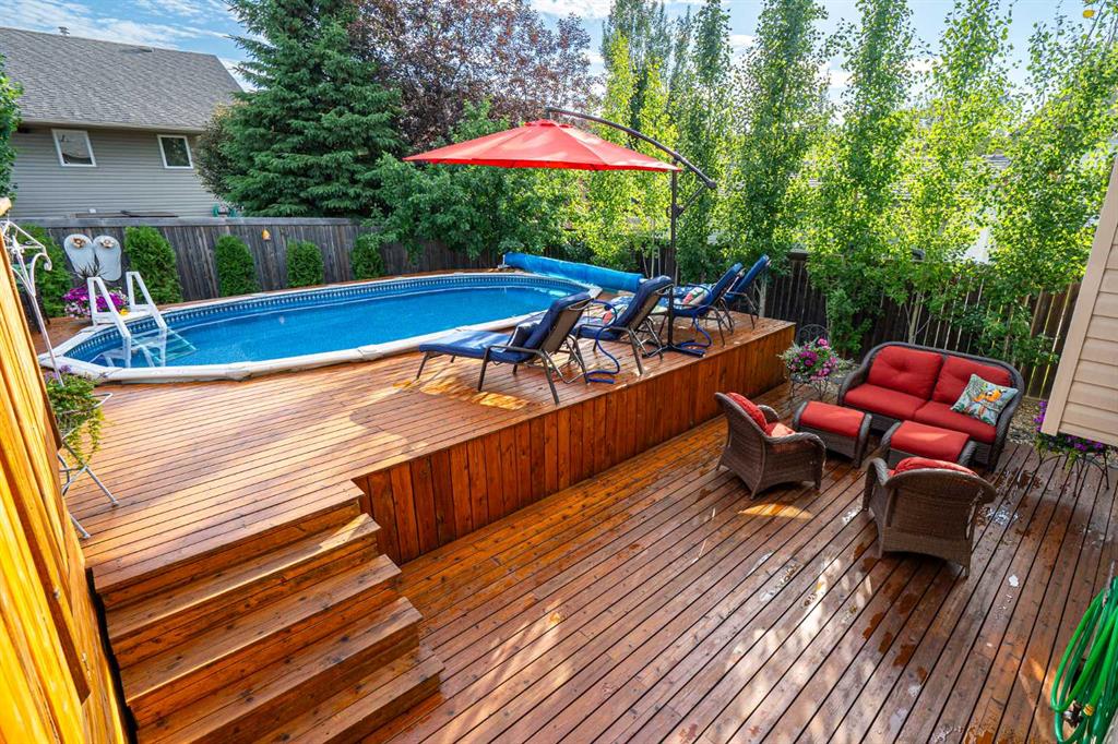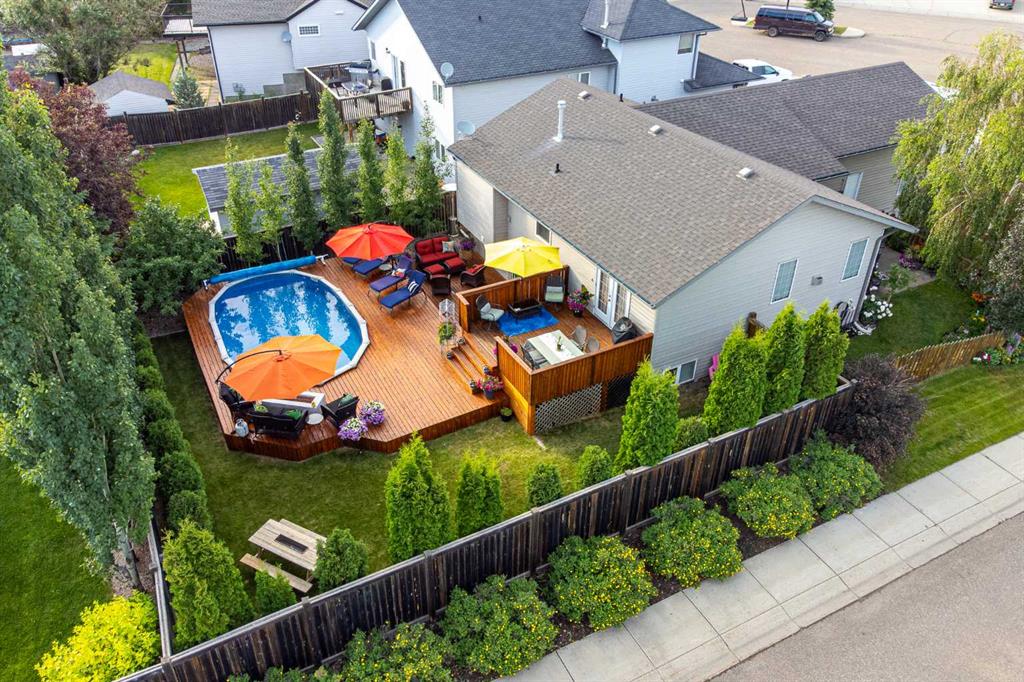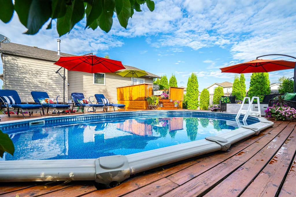 Welcome to this beautifully maintained raised bungalow in the desirable Lakeside neighbourhood! Built in 2004, this 1,282 sq. ft. home offers a warm and inviting atmosphere with thoughtful features throughout. Step inside to find rich hardwood flooring, spacious living areas, and generously sized bedrooms — perfect for comfortable family living. This four-bedroom, three-bathroom home is immaculately cared for and features several updates, including new shingles for peace of mind. The oversized double garage (22’ x 28’) provides ample space for vehicles, tools, or hobbies. Outdoors, enjoy a stunningly landscaped yard filled with vibrant flowers and mature trees — a true backyard retreat. The above-ground heated pool with a wraparound deck creates a private oasis ideal for relaxing or entertaining all summer long. Located in a quiet, family-friendly neighbourhood close to parks and amenities, this home checks all the boxes. Don’t miss your chance to own this Lakeside gem!