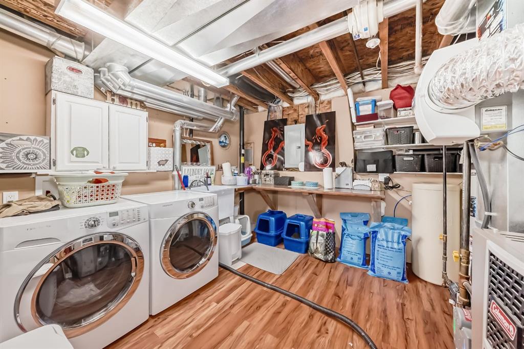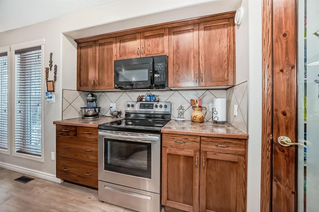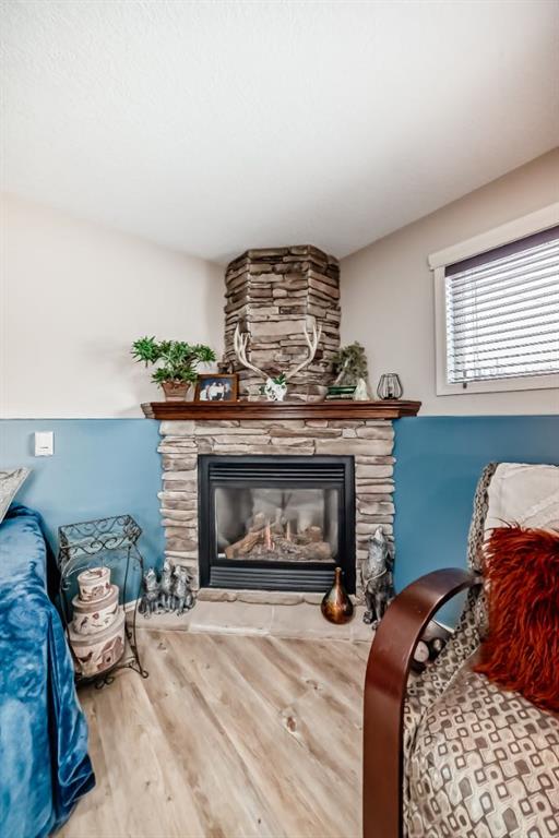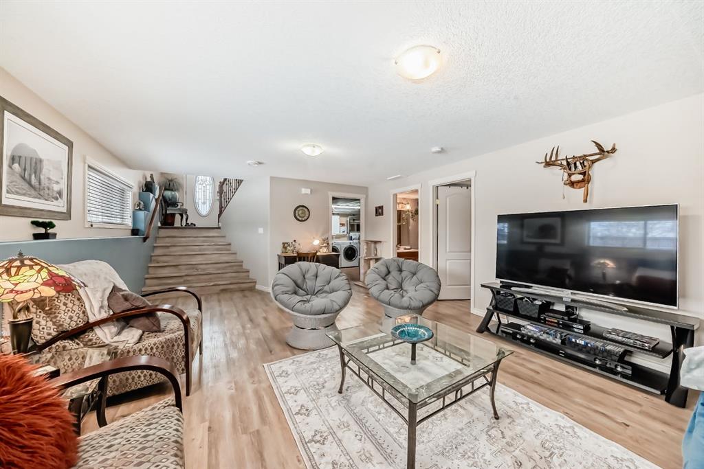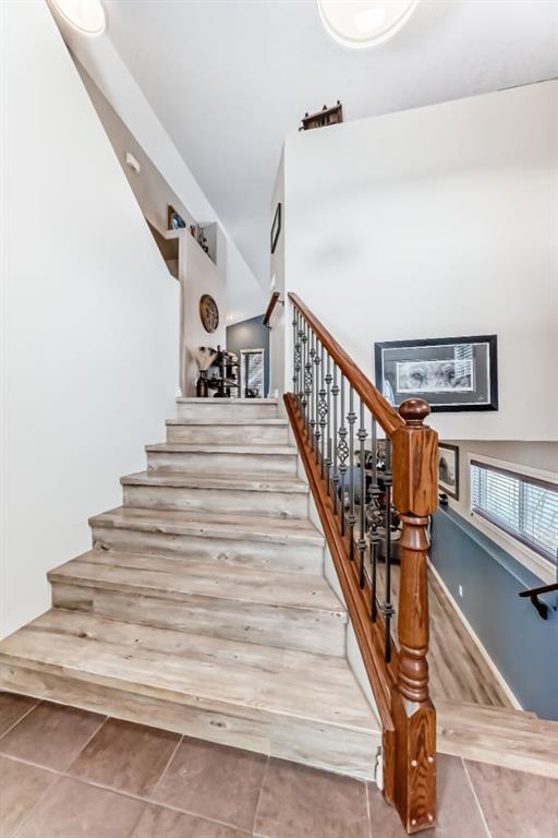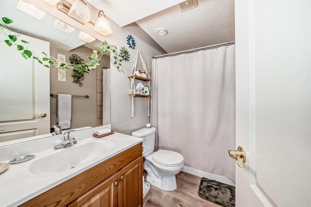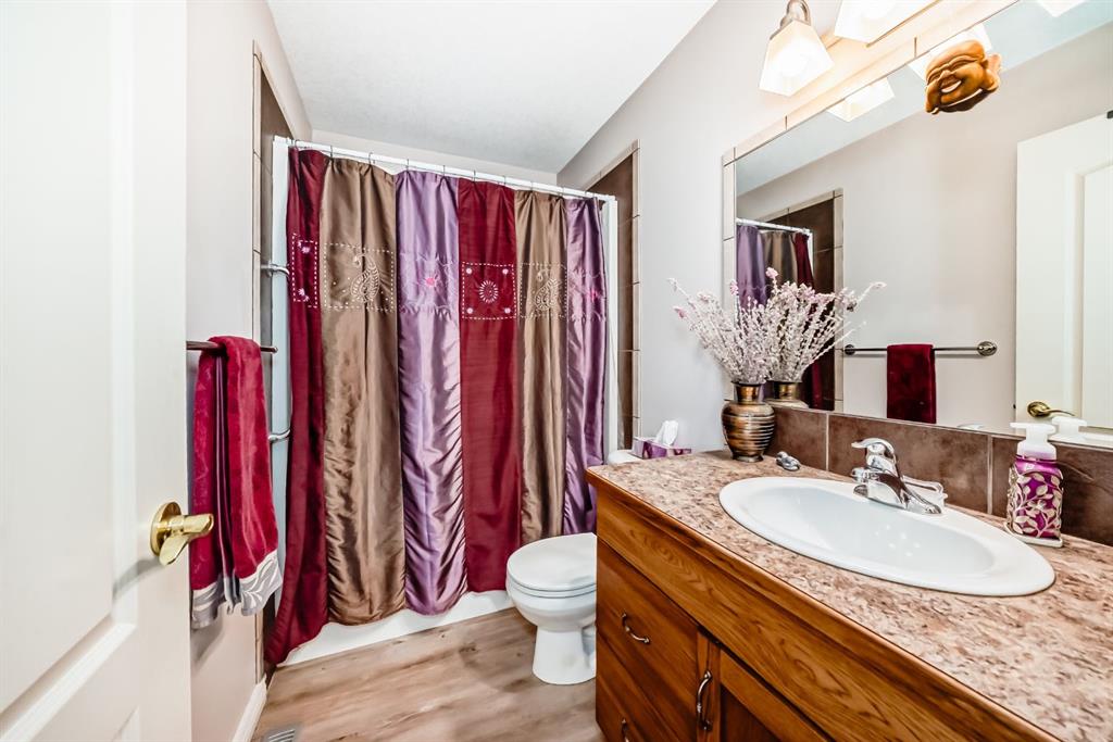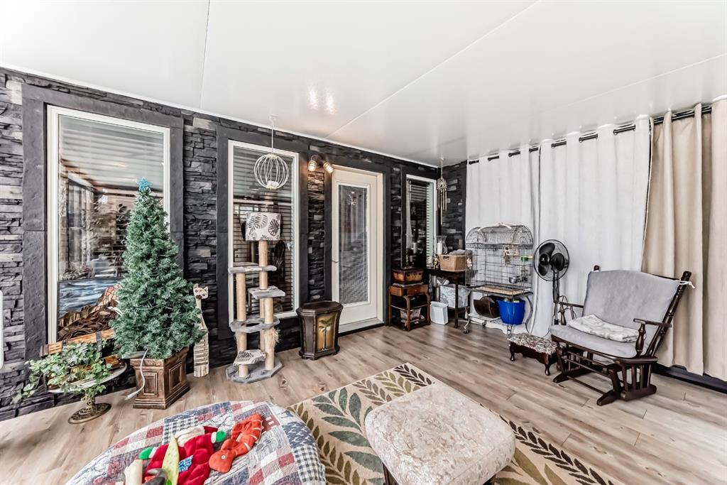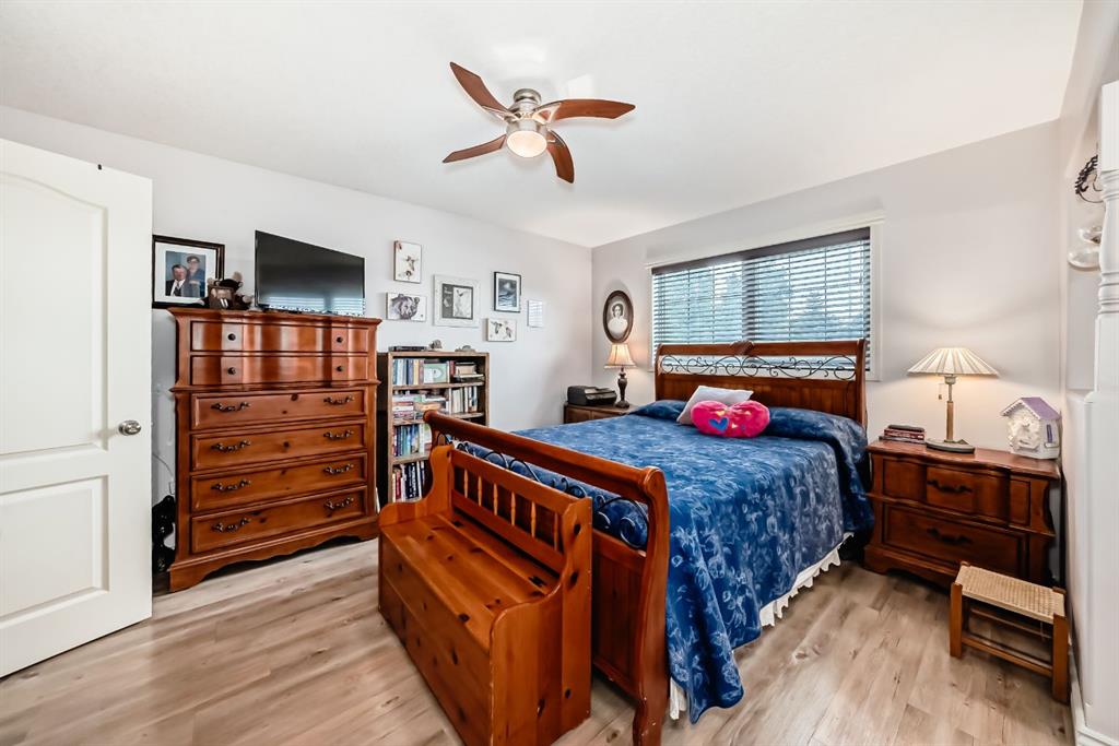 Welcome to this clean, well maintained 3 bed, 3 bath modified bi-level ideally located across from Dodds Lake in Innisfail on a large, fully fenced corner lot with a beautiful west-facing backyard view. You’re welcomed by a spacious tiled entry leading into a bright, open-concept main floor featuring vaulted ceilings, large windows, and an abundance of natural light. The kitchen is both functional and inviting with updated appliances (2022), a centre island with breakfast bar, corner pantry, and plenty of cabinetry. The cozy living room is anchored by a gas fireplace, creating a warm gathering space. Just off the dining area, enjoy the stunning 3-season sunroom, perfect for relaxing while taking in the surroundings. The main floor includes a second bedroom and a full 4-piece bath, while the upper level is dedicated to the spacious primary retreat. The large sized primary bedroom offers a walk-in closet and a generous 5-piece ensuite with dual sinks, a whirlpool tub, and separate shower. The fully finished lower level features a welcoming family/rec room with a second gas fireplace, a third bedroom, another full 4-piece bath, and a huge utility/storage room. The hot water tank was replaced in 2025. Vinyl flooring runs throughout the home for a modern, low-maintenance finish. Additional highlights include an attached heated double garage, plus an exceptional backyard complete with mature trees, raised garden beds, a firepit, and a large powered shed. All this in a prime location close to golf, ski hill, shopping, schools, and with lake views right across the street, a fantastic family home in a sought-after setting.
