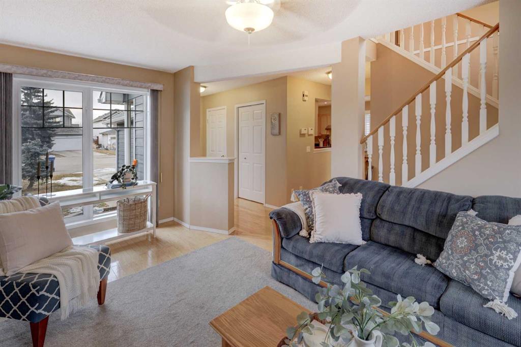 *** OPEN HOUSE SUNDAY FEBRUARY 8TH: 11:00 AM - 1:00 PM *** Welcome to this stunning, move-in-ready two-storey sanctuary in the heart of Coventry Hills. This residence perfectly balances modern updates with a warm, inviting atmosphere, making it an ideal retreat for those who value both comfort and style. From the moment you cross the threshold, you are greeted by a spacious foyer bathed in neutral, soothing tones that set a serene stage for the rest of the home. The heart of the main floor is a beautifully designed living room where a gas fireplace serves as a cozy centerpiece. A large bay window floods the space with natural light and offers a tranquil view of the west-facing backyard. This area flows seamlessly into the bright and open kitchen, equipped with a convenient breakfast bar, expansive counter space, and an abundance of cabinetry alongside a dedicated pantry. Adjacent to the kitchen, the generous dining room stands ready for everything from lively dinner parties to intimate family meals, with direct access to the massive patio—a true extension of your living space for effortless indoor-outdoor entertaining. Tucked discreetly away for privacy, a chic two-piece powder room serves the main level. Venture upstairs to find a plush, carpeted haven. The primary suite is a true escape, boasting "his and hers" closets and a private four-piece ensuite. Two additional well-appointed bedrooms, each featuring ample closet space, share a bright and pristine four-piece main bathroom, ensuring plenty of room for family or guests. The versatility continues in the fully finished basement, which offers a sprawling recreation room perfect for movie nights or a home gym, complemented by a modern three-piece bathroom, a laundry area, and extensive storage solutions. The exterior of this property is just as impressive as the interior, with recent upgrades including new Hardie board siding, a large concrete patio in the backyard and new exterior doors. Your sunny, west-facing backyard is fully fenced and backs directly onto a peaceful walking path and lush greenspace, providing a rare sense of privacy and openness. Parking is effortless with a front double attached garage and a private driveway that accommodates two additional vehicles. Meticulously maintained and radiating pride of ownership, this turn-key home is nestled on a quiet, child-friendly cul-de-sac. Its exceptional location places you moments away from Coventry Hills School, the scenic trails of Nose Creek Park, and an array of modern shopping and transit options. With easy access to major roadways, this charming property blends suburban tranquility with urban convenience. This is more than just a house; it is the lifestyle upgrade you’ve been waiting for. Don’t let this opportunity pass you by—experience the magic of this Coventry Hills treasure and book your private showing today!