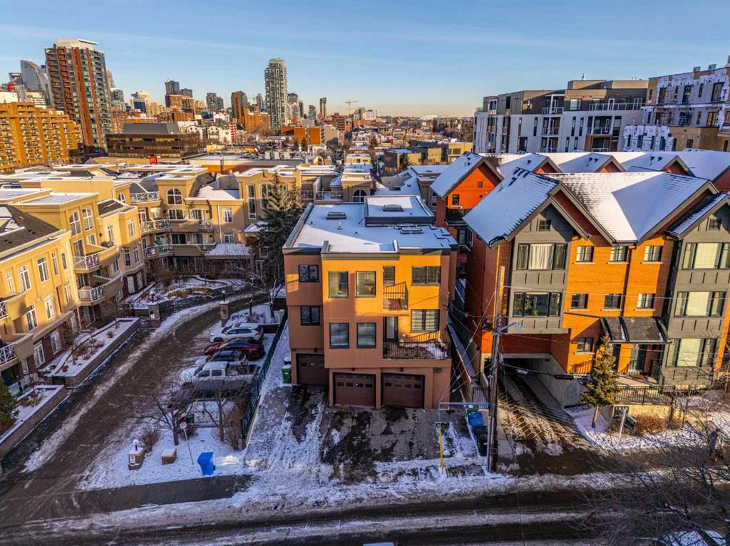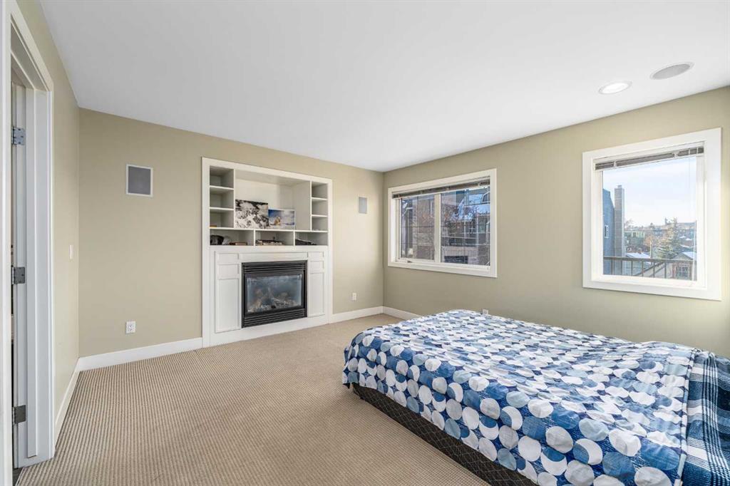 This spacious and unique 3-storey executive townhouse is quietly positioned in the heart of Bankview, offering an exceptional 10/10 inner-city location just steps from the energy, dining, and nightlife of 17th Avenue SW and the everyday convenience of 14 Street SW. Walk everywhere, commute downtown in minutes, and enjoy being surrounded by Calgary’s best cafés, shops, transit routes, and entertainment, all while still feeling tucked away and residential. This is true urban living done right. This home confidently leans into what makes it exceptional: two fireplaces, two balconies, and two skylights, a thoughtful combination that brings warmth, architectural interest, and incredible natural light throughout. From the moment you enter, you’re welcomed by a spacious front foyer with mudroom-style functionality and generous storage, creating a practical and polished arrival experience. Head up one level and the property continues to surprise. The wide open-concept main living area flows effortlessly, wrapped in windows and enhanced by tall ceilings that create a bright, airy atmosphere across all levels. Designed for both comfort and connection, the main floor features hardwood flooring and a striking two-way fireplace with custom built-ins anchoring the living and dining spaces. The contemporary kitchen is finished with stainless steel appliances, concrete countertops, and a functional breakfast bar. A private west-facing balcony off the living room extends the space outdoors, perfect for morning coffee or evening unwinding. Completing this level is a convenient and well-located half bath, ideal for guests and everyday living. The upper levels continue the home’s thoughtful design and flexibility. As you head upstairs, you’re greeted by a beautiful skylight that fills the space with natural light, complemented by oversized windows throughout that create a bright, open atmosphere. The primary suite is a true retreat with its own fireplace, dual closets, and a spa-inspired ensuite featuring double sinks, a soaker tub, steam shower, and an additional skylight that brings in even more sunshine. A generous second bedroom is paired with a versatile flex room, ideal as a home office, fitness area, or third bedroom, opening onto a southwest-facing balcony for added light and outdoor connection. A full upper-level main bathroom and conveniently located laundry complete this level, rounding out a layout that’s both functional and beautifully designed. Currently tenanted, this property offers a strong opportunity for investors seeking a turnkey inner-city rental, while also appealing to buyers looking to make it their own. With downtown minutes away, quick access along 14th Street, and a vibrant entertainment district nearby, this location supports long-term demand and lifestyle appeal. Add low-maintenance living, low condo fees, and true lock-and-leave convenience, making it ideal for busy professionals, frequent travelers, and hands-off investors alike. Book a tour today!
