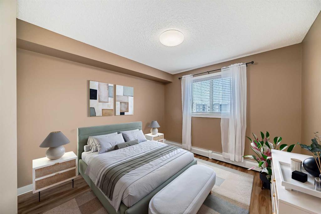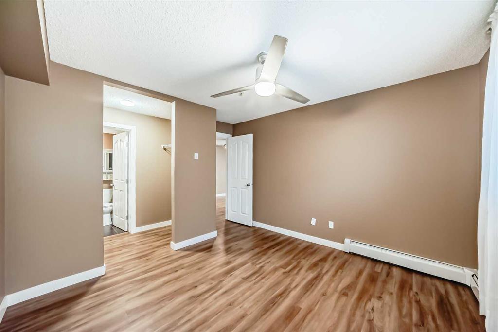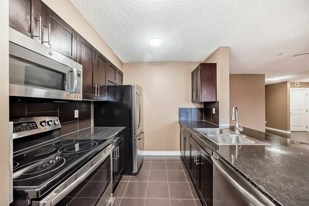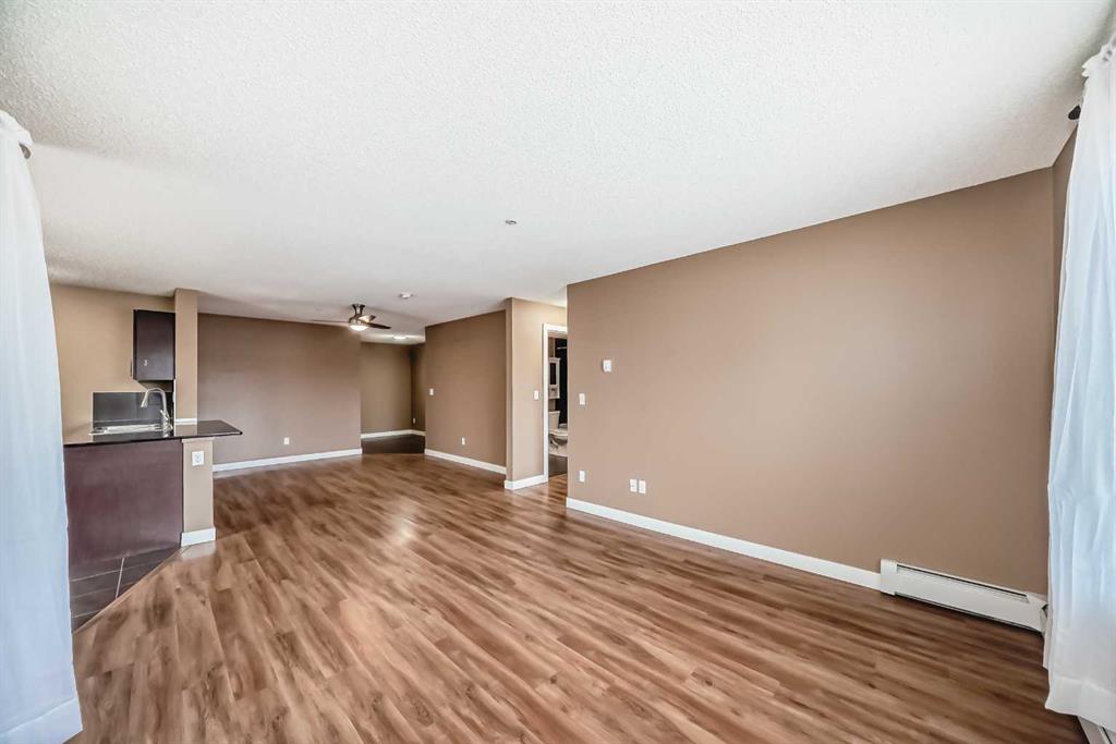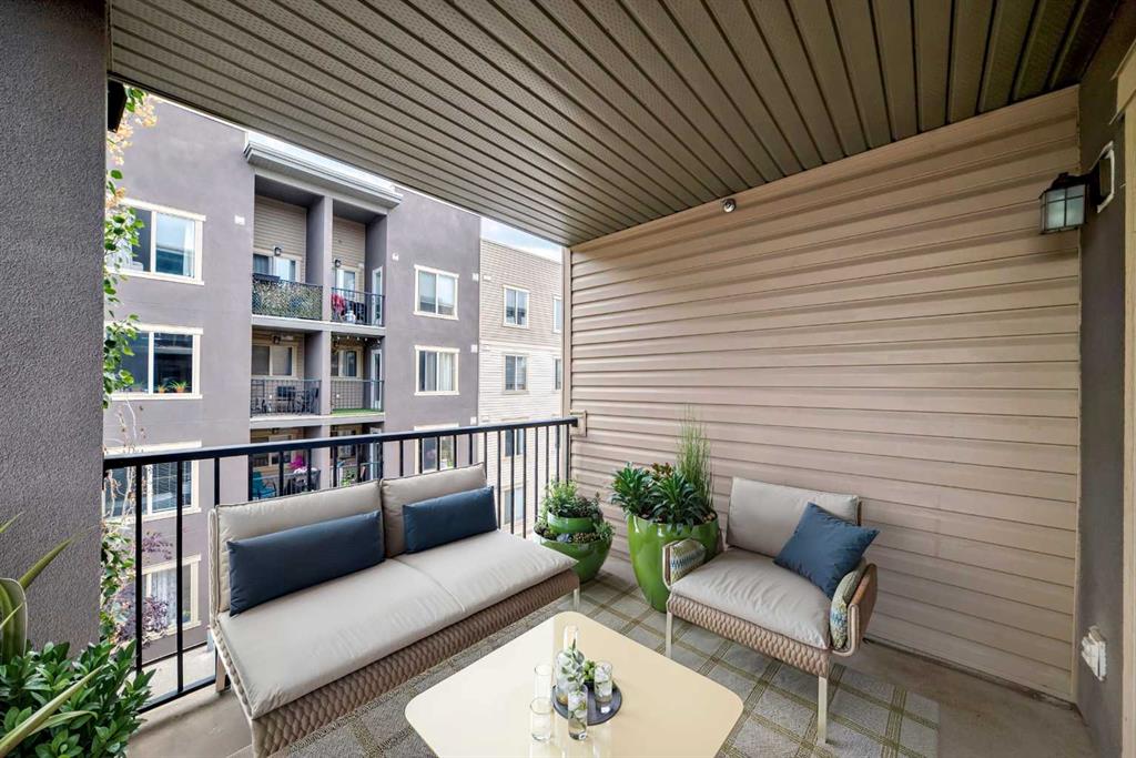 -- OPEN HOUSE Saturday Feb 7, 12-2pm -- What a deal! DOWN-SIZERS, INVESTORS, FIRST-TIME HOME BUYERS - Don't miss this opportunity for a CORNER UNIT Apartment in the desirable apartments of Creekside Crossing in Airdrie. Corner Unit means: more space, more windows (feels less like an apartment), more parking and guess what?? this unit is also SOUTHEAST-FACING - letting in all the natural light! When you enter the you have tons of room to take off your shoes and a convenient Den space located right beside - perfect for your at-home office or additional storage. The open floor plan leaves enough room for a large dining table and makes it easy to entertain. Your Kitchen has Stainless Steel Appliances, lovely Granite Counters and Additional Cabinetry has been added for even more storage. The Covered Deck is great to enjoy the outdoors through allllmost all of our seasons, just imagine drinking your morning coffee and watching the sunrise. There are TWO Bedrooms. One is your traditional Bedroom located directly beside a 4-Piece Bathroom - this is perfect for Guests, or Roommates. The Primary Bedroom has its own Walk-through Closet on your way to your 3-Piece Ensuite (with walk-in shower). Laundry is convenient and easy, located right inside your unit. Not many apartments come with 2 PARKING STALLS both of which are underground. They are right beside the elevator making trips to your apartment easy! The building itself couldn't be in a more convenient spot - this is Airdrie's DOWNTOWN. Close to Shopping, Dining, Gas, Tim Horton's and pop onto First Ave to get to HWY 2 easily. If you want this apartment, act fast, the corner units don't last!