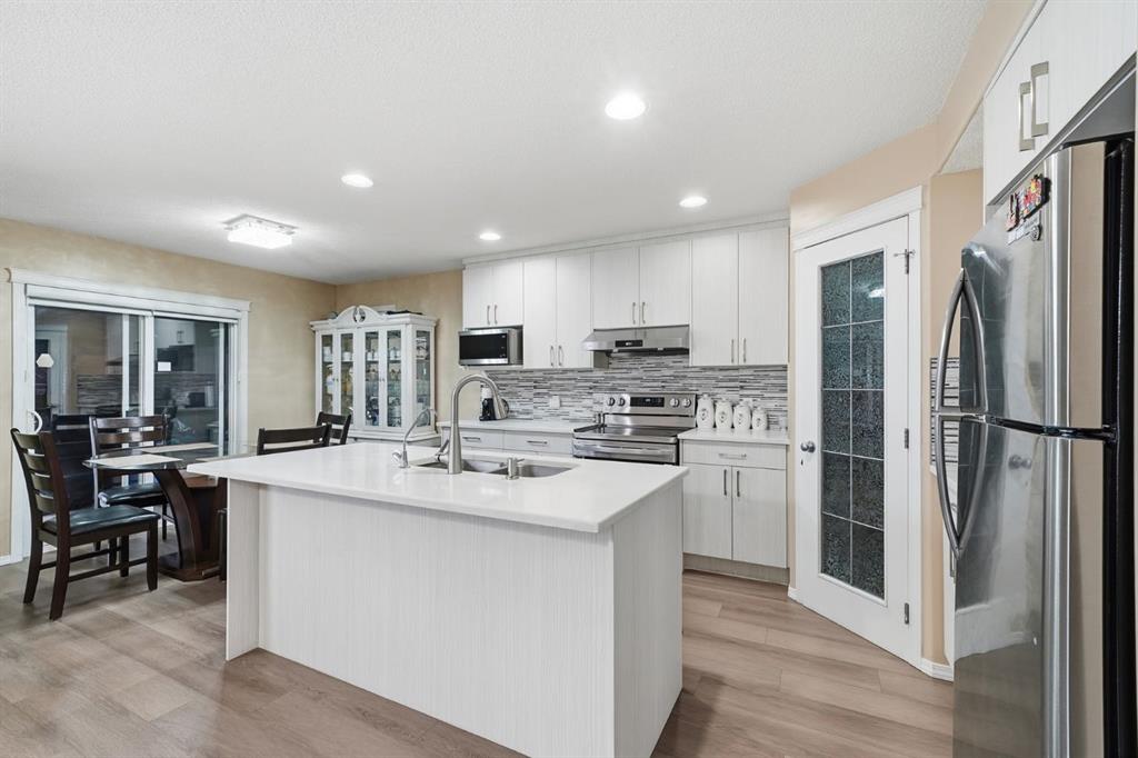 Welcome to 131 San Fernando Crescent NE, Calgary — a neat and clean 2-storey home for sale in NE Calgary with a fully developed basement and double attached garage. This spacious family home offers over 2,400 sq. ft. of total developed living space across three levels, featuring 4 bedrooms and 3.5 bathrooms, perfect for growing families or investors. The main floor includes a bright living room, upgraded kitchen with stainless steel appliances, walk-through pantry, dining nook, main-floor laundry, and a convenient half bath. The upper level boasts a huge bonus room with 9-foot ceilings and corner gas fireplace, rounded corners throughout, and a generous primary bedroom with walk-in closet and full ensuite bathroom. The finished basement adds excellent value, offering a bedroom, spacious family room, and a full bathroom with jetted tub, ideal for guests or extended family. Recent upgrades include kitchen renovations, new fence, hot water tank replaced in 2023, heated garage, water filtration system to kitchen, humidifier, security cameras, and a NEW ROOF (2025). Located in a desirable Calgary NE community, this home is close to public transit, schools, playgrounds, shopping malls, and all major amenities. A move-in-ready Calgary two-storey home with developed basement and double garage — don’t miss this opportunity!
