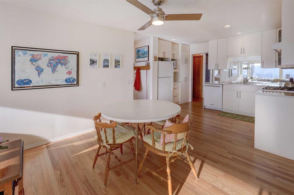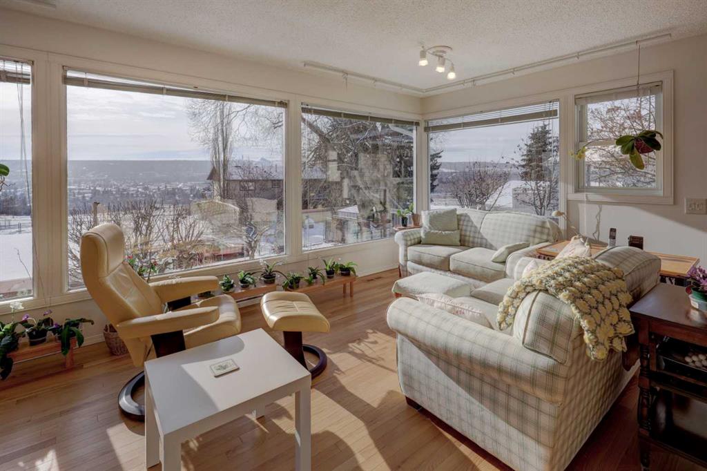 Welcome to this beautifully updated and meticulously maintained home in the sought-after community of Silver Springs. Just around the corner from the Bow River Valley, and very literally a few steps from the Bowmont Park and Bow River Pathway. This exceptional family home with mountain and valley views offers 4 bedrooms ( 3up, 1 down), 2.5 bathrooms, 2 wood burning fireplaces, providing both comfort and functionality. Upon entrance you're greeted by a professional addition creating an enlarged foyer with high ceilings and hardwood floors. The main level has an open concept living room with large windows, a wood burning fireplace with gas log lighter and formal dining. Kitchen has been upgraded with newer appliances and quartz countertops with a breakfast nook. An absolutely massive south facing family/sun room with big bright windows offering you views of COP, Bow Valley and the Mountains. This bright and well-designed layout offers spacious living areas, abundant natural light, and a warm, welcoming atmosphere ideal for family living and entertaining. The bright lower level has a huge rec/games room with your second wood burning fireplace, a big bedroom, a giant office space which has been designed so you can easily convert it into 2 bedrooms in the future, a wet bar which can be turned into a kitchenette, another full bathroom and yes, a separate entrance from the back. This is the perfect home! Significant updates include brand new shingles and attic ventilation, hardwood flooring, completely new main bathroom, kitchen, new windows, appliances, new furnace, central air conditioner and so much more. You can access your backyard from both the main and lower levels. This beautifully landscaped South Facing backyard is a true highlight, featuring a detached double garage, established gardens, beautiful flowers, trees including two mature apple trees, creating a peaceful and private outdoor retreat. The gardens and flowers have been complemented by a top of the line underground irrigation system. Ideally located close to schools, parks, shopping, transit, and Stoney Trail, this home combines tranquility with unbeatable convenience. This is the one — an amazing opportunity to own a move-in-ready family home in one of Calgary’s most desirable northwest communities. Home to the current owners and lightly used for 50 years. With so much to offer, it will not last so call today!