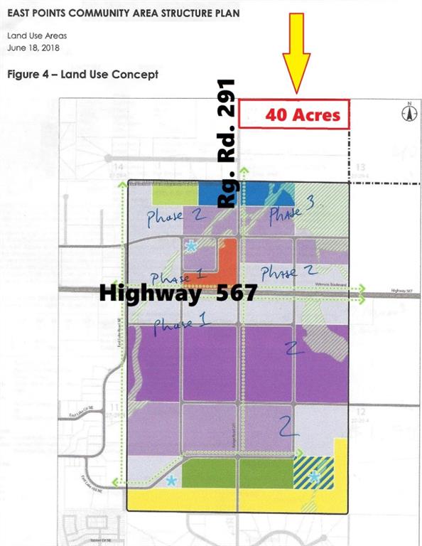 40 Acres on pavement INSIDE northeast Airdrie City Limits, north of the East Points Area Structure Plan and across from 185 acre Airdrie Regional Park and Croxford Estates. Permitted uses, Dwelling Garden Suite and other Permitted + Discretionary uses. Opportunity knocks! Panoramic West Views! 660 foot frontage onto paved Range Road 291 (future Airdrie main route). Ideal for home business (by permit), mini ranch or variety of permitted Garden Suite and discretionary uses. Features a 1,505 sq.ft. fully developed bungalow with heated oversize attached garage. Bright open plan with a spacious great room with vaulted ceiling and fireplace, formal dining area, and roomy kitchen with nook and covered deck access. Lower level is fully developed with bedroom, full bath, large den, and spacious living area. Includes major appliances and window coverings. Ideal for animals or home business with detached heated 28' x 30' shop with box stalls and 10' x 25' storage shop. Highway 2 north, east on Highway 567, north on paved Range Road 291. Cabin in back trees also for sale. GST may be applicable.