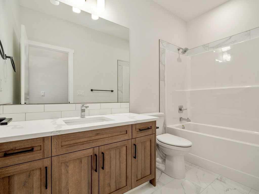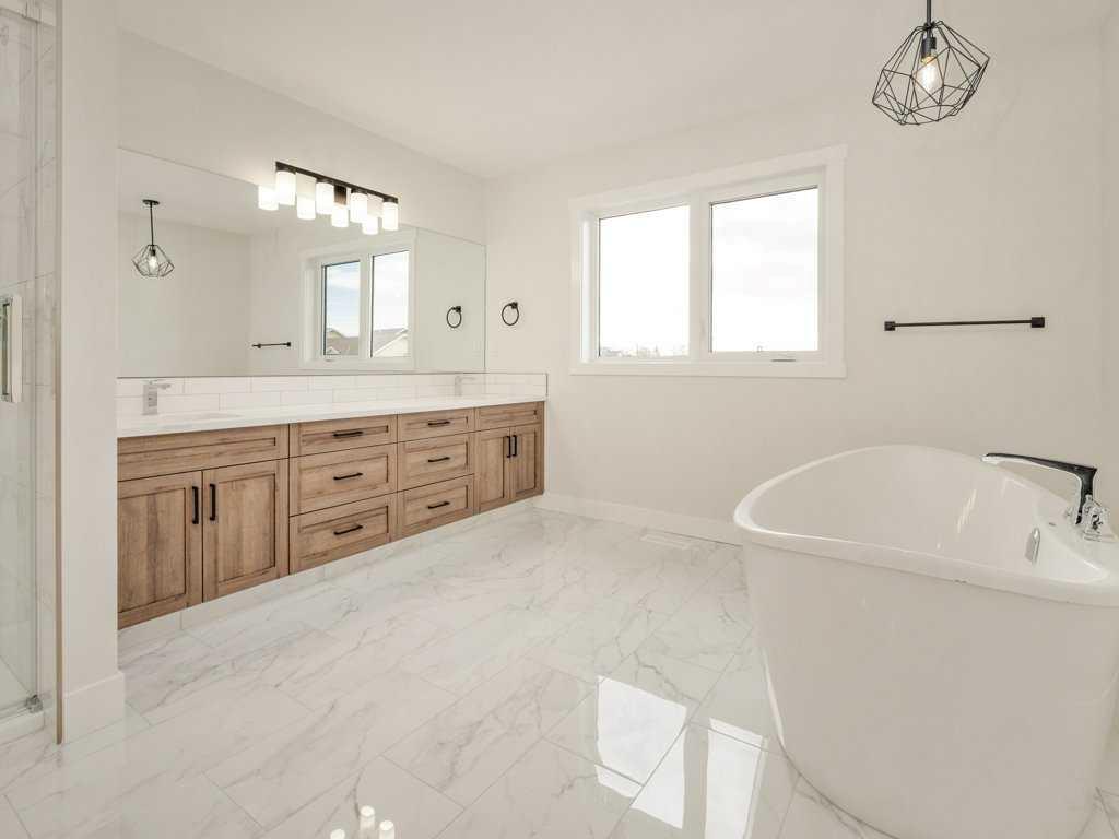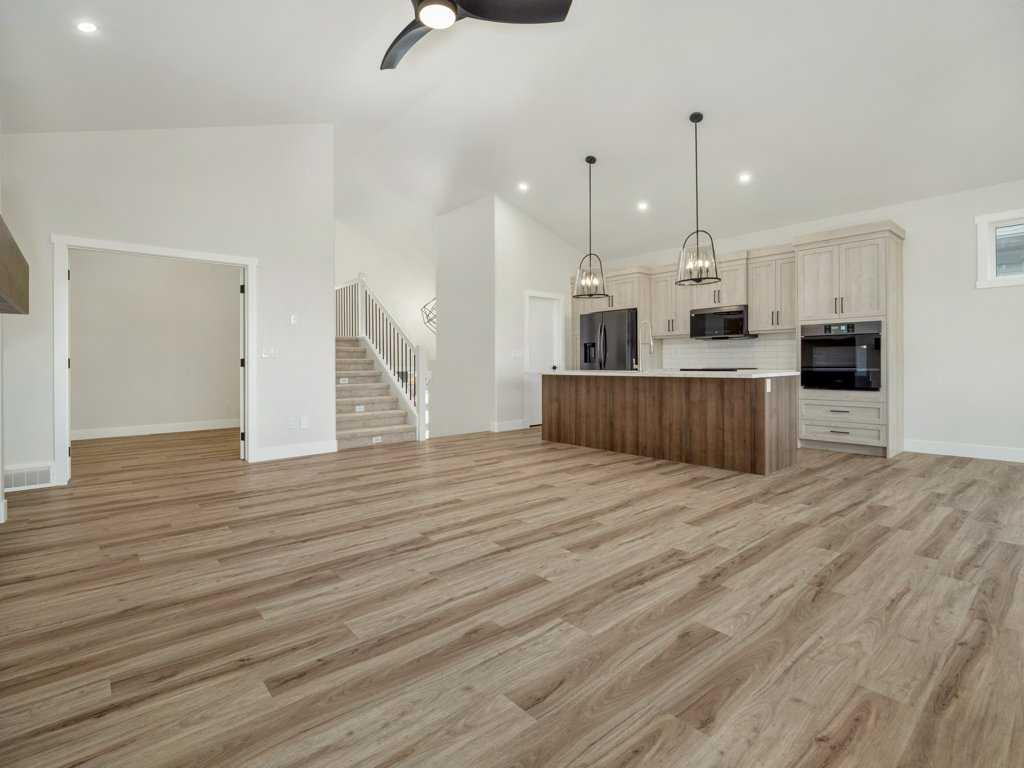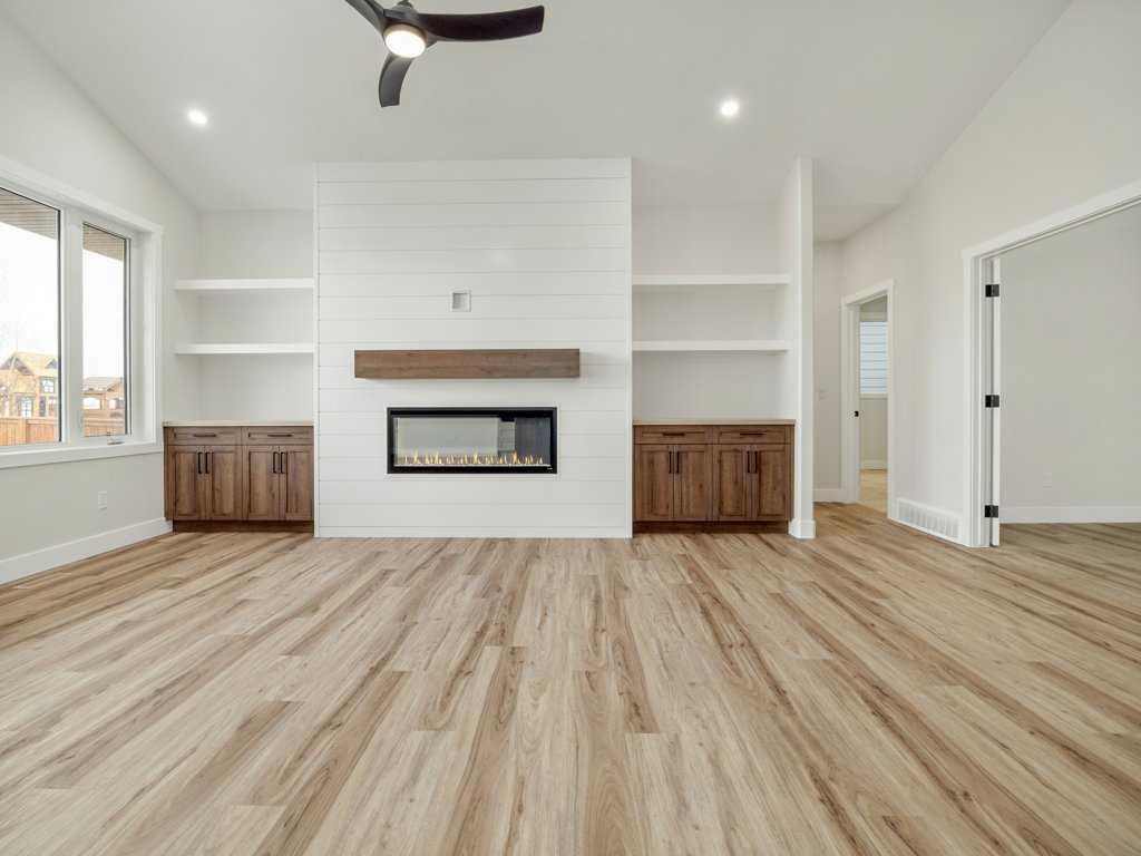 Discover exceptional living in this brand-new, fully finished five-bedroom, three-bathroom executive residence in the sought-after community of Southgate built by the amazing Grizzly Ridge. Offering a rare TRIPLE CAR ATTACHED GARAGE this home provides unparalleled space for vehicles, recreation, hobbies, or the ultimate private retreat—whether a workshop, collector’s showcase, or future golf simulator lounge. The main level spans an impressive 1,398 sq. ft., thoughtfully designed for both refined entertaining and comfortable daily living. A soaring vaulted ceiling, expansive windows, and a gorgeous gas fireplace with custom built-in shelving create a bright yet inviting great room atmosphere. The spacious eat-in kitchen and dining area seamlessly connect to the future rear deck, ideal for effortless indoor-outdoor gatherings. There is also a versatile flex room offers the perfect setting for a private office, library, or playroom, while two generous bedrooms and a beautifully appointed four-piece bath complete the level. Privately positioned on the upper floor, the primary suite is a true retreat boasting an impressive 717.37 sq. ft., featuring a spa-inspired ensuite with tiled glass shower, freestanding soaker tub, double vanity, and walk-in closet, all elevated by elegant tray-ceiling detailing and designer lighting. The fully developed lower level (1213.78 sq. ft.) extends the home’s lifestyle appeal with a spacious recreation area, wet bar, and a second fireplace with custom built-ins—perfect for entertaining or relaxed family evenings. Two additional bedrooms and a luxurious five-piece bathroom provide ideal accommodation for guests, teens, or multigenerational living. With no additional new construction for Grizzly Ridge anticipated until later this year, this move-in-ready home represents a limited and highly desirable opportunity to secure brand-new luxury in one of the area’s most coveted neighborhoods.