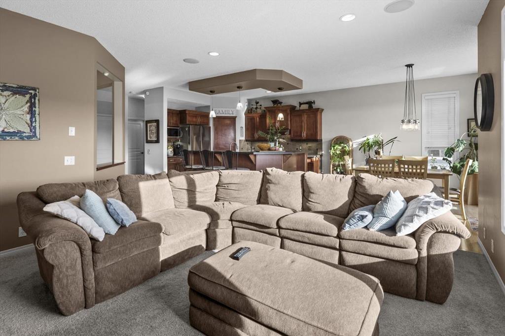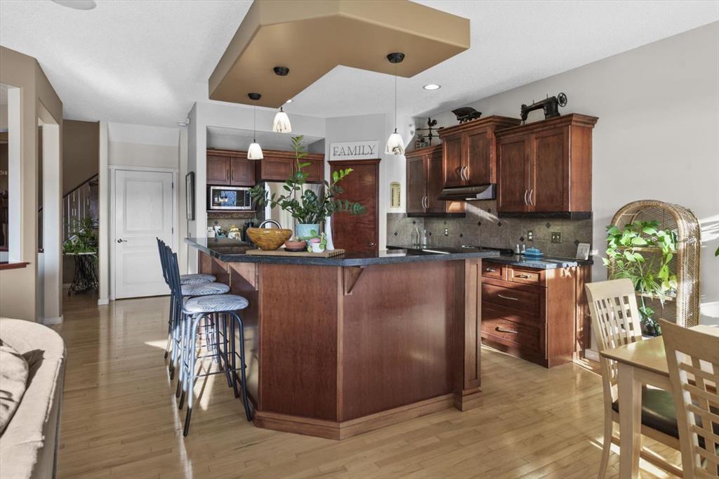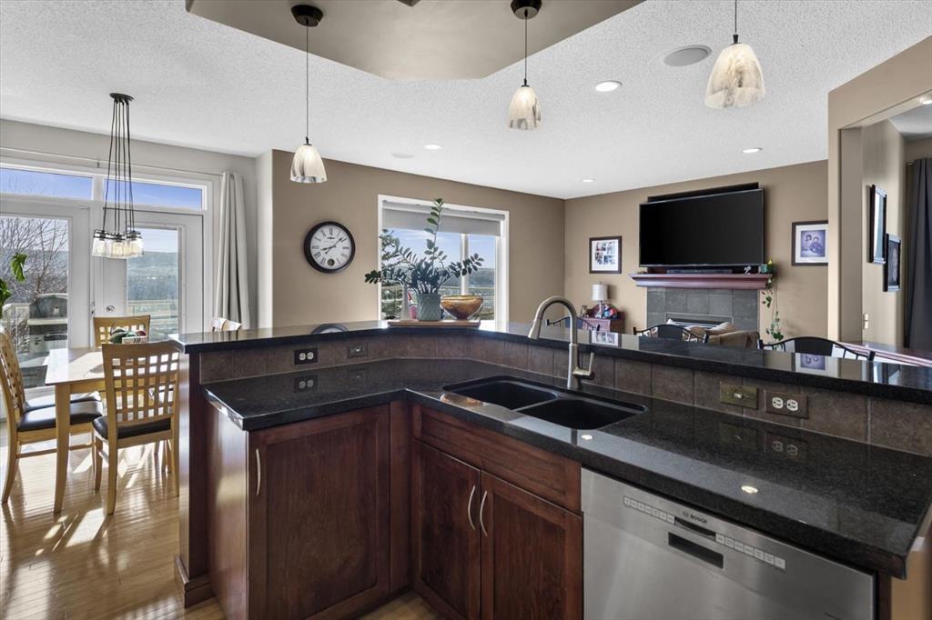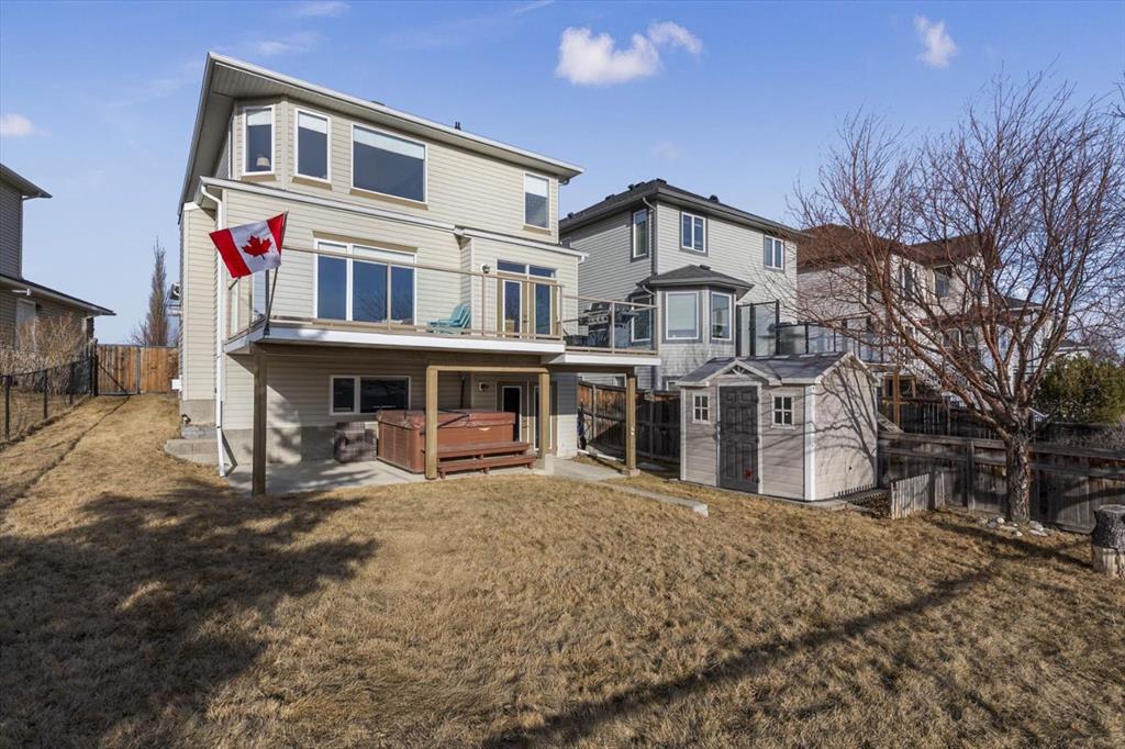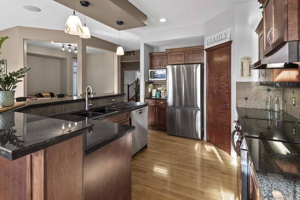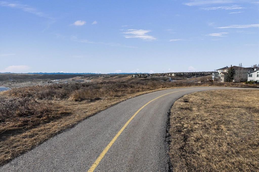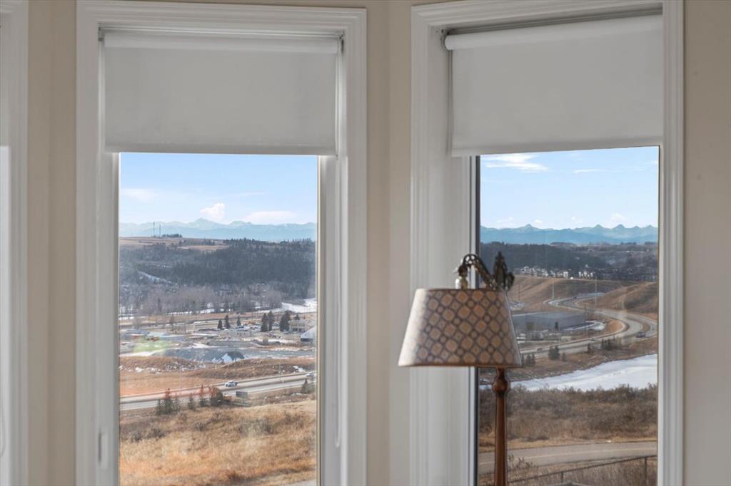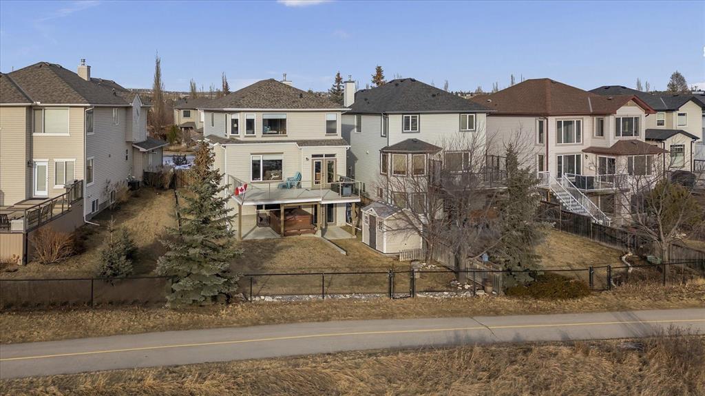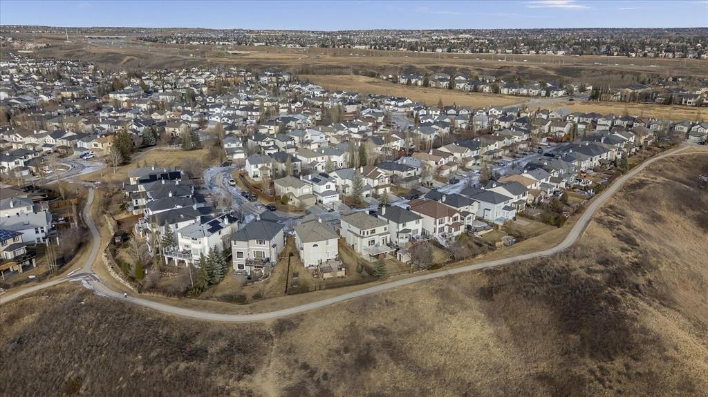 Tucked along one of Tuscany's most coveted ridge-lines, this home rewards you with something few homes can offer - unobstructed, sweeping views stretching from the city skyline to Canada Olympic Park and onward to the Rocky Mountains. By day, the panorama shifts with the light; by evening, the lights from the city and COP glimmer in a display that never grows old. Homes along this ridge rarely come to market, and it's easy to understand why. A vaulted foyer sets a gracious first impression, with extensive hardwood flooring flowing through the main level. A versatile flex room near the entry invites use as a den or intimate formal dining space. As you move toward the rear of the home, the floor plan opens up and that remarkable view commands your attention through expansive rear windows. The family room, warmed by a fireplace, frames the vista beautifully, while the kitchen stands ready for both everyday life and entertaining - rich maple cabinetry with under-cabinet lighting, granite countertops, a tiered island, and stainless steel appliances. A well-appointed main-floor mudroom keeps the household running smoothly with laundry facilities, built-in cabinetry, a folding counter, and laundry sink. Upstairs, a small loft overlooks the entry below - an ideal spot for a reading nook, homework station, or quiet workspace. The staircase splits to reveal thoughtfully separated sleeping quarters: a spacious secondary bedroom to one side, and on the other, a second secondary bedroom, full family bathroom, and the primary suite. Waking up to those mountain and city views from the primary bedroom is something truly special. The ensuite features dual sinks, a soaker tub, and separate shower, complemented by a walk-in closet. The walkout basement extends the living space with a large recreation room anchored by a gas wood stove, plus a bathroom featuring an oversized shower - perfectly suited for guests or post-hot tub evenings. Step outside and the backyard becomes your retreat: a hot tub with convenient hot water tap, patio, perennial gardens, an irrigation system, and storage shed. A gate opens directly onto the pathway system winding throughout Tuscany, inviting you to explore the coulee at your doorstep. Central air conditioning ensures comfort through summer, and a newer roof provides peace of mind. With a park and playground just steps away, this ridge-backing home on a quiet street delivers a lifestyle that families dream about - where stunning views, thoughtful design, and neighbourhood connectivity come together in one exceptional Tuscany address.
