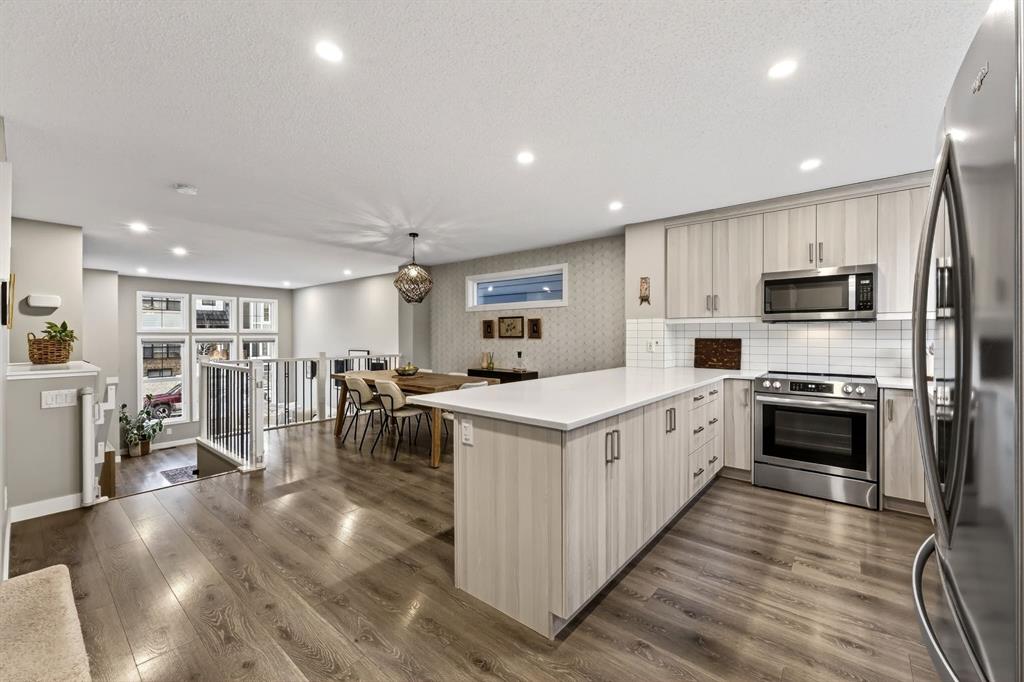 2500 Square feet of living space in the beautiful LAKE community of Mahogany awaits! This 4 bedroom 4 bathroom home is truly one of a kind - as you enter you will immediately notice the soaring 12 foot main floor ceilings, and the designer quality finishing throughout. The floor plan is beautifully done with a spacious living room area, separate large dining space and open concept kitchen with upgraded appliances, stone counters, and built in features. The upper level features a large primary retreat with its own ensuite bathroom and walk in closet, as well as 2 additional spacious bedrooms with their own 4 piece bathroom and upstairs laundry! The lower level does not feel “basement” like - this level has 11 foot ceilings, large windows, a huge recreation space as well as a large 4th bedroom and another full 4 piece bathroom. This home has a beautifully designed backyard with a deck and a flagstone patio, and a garage is no problem as the concrete pad is already poured! The tankless hot water system and high efficiency furnace keep utility bills low, and the central AC is a great feature for our warm Calgary summers! From the high end finishing, to the quiet yet accessible location, this beautiful property does not miss a beat! Enjoy the beautiful Lake community of Mahogany with its variety of restaurants, shopping, schools parks and more!