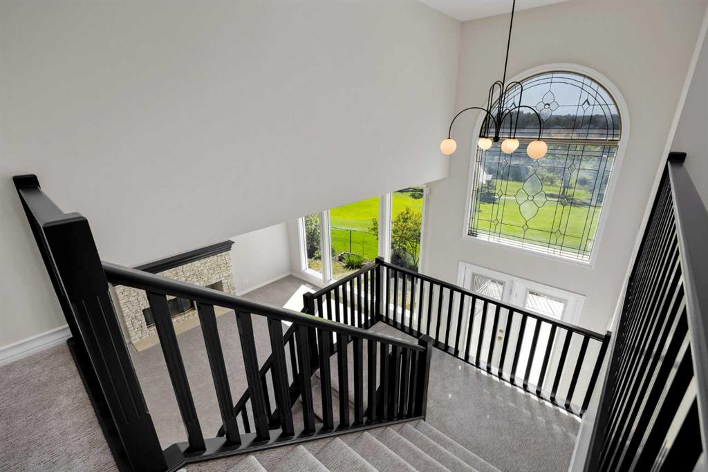Where Calgary meets the romance of the foothills, this Douglas Woods retreat redefines what it means to “live on the course.” Backing directly onto Eaglequest Golf Course, every sunset here feels like a painting—an unbroken canvas of western skies and the full Rocky Mountain range as your backdrop. From the very first step, this home makes an impression. Brick planters frame the double-wide front doors, welcoming you into a grand open foyer where a dramatic living room with 12-foot ceilings unfolds before you. At its center, a commanding open staircase rises like sculpture—an architectural focal point that ties the entire home together. Three expansive living room windows flood the space with natural light, while automatic rolling shutters offer instant shade (and privacy) at the touch of a button. Inside, 2,800 sq.ft. above grade + a fully developed 1,700 sq.ft. walkout basement have been completely reimagined, blending modern refinement with Alberta’s rustic soul. The custom kitchen is a showpiece—white quartz counters, sleek new stainless steel appliances, and cabinetry that feels as crafted as it is functional. Refinished hardwood glows underfoot, while plush new carpets (think clouds, but softer) run through the private spaces upstairs. Two brick, wood-burning fireplaces anchor the home, casting a golden warmth that feels unmistakably “Alberta”—whether it’s a winter evening curled up with a glass of wine or a spring morning with coffee and the paper. Downstairs, the walkout basement offers another world entirely: almost 1,700 square feet of entertaining space, wrapped in the original stained wood trim and built-ins—a deliberate nod to cabin charm and the Western heritage that defines this province. Swing open the doors and you’re hosting friends by the firepit, the golf course rolling out behind you like your own private acreage. Beyond the walls, the property is equipped for the heart and soul of a gardener—with a wooden shed and greenhouse ready for the next season’s plantings. This is the home that catches your breath, then slows it. The one that gives you mountains at dinner, golf course greens at dawn, and a lifestyle that feels both elevated and rooted. Welcome to Douglas Woods. Where Calgary meets the West.