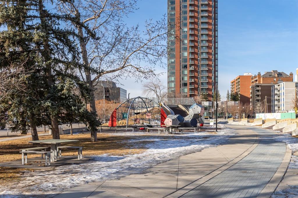 Welcome to urban living at its finest in the heart of Calgary’s Beltline. Tucked behind a secure, landscaped courtyard and backing directly onto a park, this beautifully updated 2-bedroom, 2-bath bungalow-style townhome offers privacy, comfort, and exceptional walkability. Inside, the bright open-concept layout is drenched in natural light and features hardwood flooring, 9’ ceilings, and a cozy gas fireplace—ideal for everyday living and entertaining. The kitchen has been refreshed with quartz countertops, a new sink and faucet, painted cabinetry (2023), a new stove (2024), and a brand-new refrigerator (2025). The spacious primary bedroom includes a private ensuite, while the second bedroom—perfect as a guest room, home office, or den—offers its own separate entrance. In-suite laundry, in-floor heating, and a single-level floor plan add everyday ease. Step outside to the south-facing 36’ patio, where the home is bathed in sunshine throughout the day, with park views, blooming lilacs in the spring, and beautiful sunsets in the evening. Just steps from 17th Avenue SW, with cafés, restaurants, and shops at your doorstep, this home blends inner-city energy with green-space tranquility. Assigned covered, tandem parking for two, pet-friendly living (with restrictions), and a well-managed complex complete this Beltline gem.