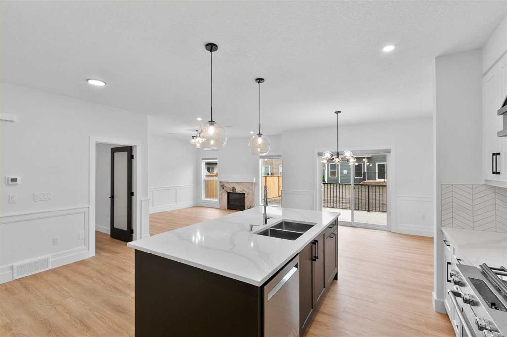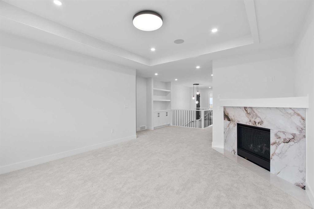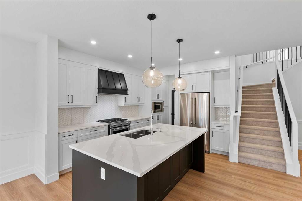 Welcome to this stunning detached home in Mandalay Estates, Carstairs, which offers an ideal location near downtown amenities and recreational spots such as the Carstairs Community Golf Course, Memorial Arena, and Campground. It's also conveniently close to Hugh Sutherland School with a grocery store (Loblaws) located right within the subdivision. Expertly crafted by Marygold Homes, this meticulously designed residence features over 2,400 sq.ft. of thoughtfully planned living space, including 3 spacious bedrooms and 2.5 bathrooms—perfect for families seeking comfort and functionality. Walk into luxury with custom wainscoting, luxury vinyl plank flooring, plush carpet, and expansive windows that fill the home with natural light. The exterior boasts durable hardie-board siding and a triple-car attached garage—both aesthetically pleasing as much as it is practical. From the garage, a well-equipped mudroom with custom-built storage leads directly into the home. The kitchen is a chef’s dream, showcasing a large central island with bar seating and dual-side storage, stainless steel appliances, full-height shaker cabinetry, quartz countertops, and soft-close hardware throughout. Adjacent to the kitchen, the elegant dining area opens through large patio doors to a spacious, treated-wood deck and backyard—ideal for entertaining. The inviting living room features a custom mantle and tile-surround gas fireplace, creating a cozy space for family gatherings. A dedicated home office offers a quiet and productive workspace. The upper level, with its thoughtfully separated layout enhances privacy with the master-suite spaced away from the secondary bedrooms. The luxurious primary headquarters includes oversized windows, a raised box-tray ceiling, as well as a walk-in closet with built-in shelving. The 5-piece ensuite features a glass-enclosed shower with a bench and niche, a large soaker tub, a dual-sink vanity, and a private water closet. The laundry room is also conveniently located on the upper level and comes complete with custom cabinetry. A built-in display and entertainment center, a separate built-in desk, a full 4-pc bathroom, a generous bonus room perfect for family time, as well as two sizable additional bedrooms, each with their own built-in closets, complete the upper floor. The unfinished basement includes rough-ins for a future bathroom as well as 9-ft. ceilings—offering flexibility for further customization to suit a growing family’s needs. **[GST rebate, if any, shall go to the seller.]**