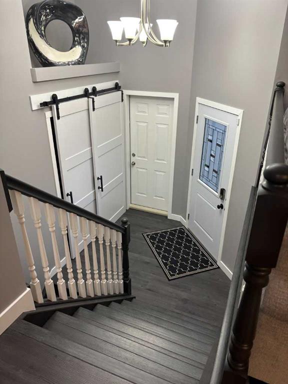 Beautifully renovated 2002 Bi-level home offering 4 bedrooms and 3 bathrooms. From the moment you enter through the new front door, you’re welcomed by a bright, clean, and modern feel. The front foyer features new tile flooring, a large closet with barn doors, and direct access to the attached garage. The main floor showcases an open-concept kitchen, dining, and living area, finished with all new vinyl plank flooring and tile throughout. The kitchen offers ample storage, a large island, newer appliances, new cabinet door fronts and hardware, granite countertops, and a stylish tile backsplash. The dining area features French doors leading to a spacious back deck with a natural gas BBQ hookup and hot tub wiring already in place. The living room is a comfortable space to relax and enjoy mountain views on clear days. Also on the main floor is a newly renovated 4-piece bathroom with a tiled shower, a bedroom, and the primary bedroom complete with its own 4-piece ensuite. The fully developed lower level is designed for entertaining, featuring a recreation/games room and a cozy family room perfect for movie nights. Rough-ins are already in place for a wood stove. This level also includes additional storage, a sump pump, a laundry/utility room with a hot water tank replaced in 2020, a newly renovated 4-piece bathroom, and two additional bedrooms. The attached heated double garage offers extra storage with a large built-in storage unit. The backyard is ideal for entertaining and relaxation, offering space for summer deck parties, evenings around the fire pit, or simply enjoying the peaceful surroundings and birdlife. A large cement driveway provides ample parking, with the added bonus of side RV parking. This non-smoking, non-pet, freshly renovated home is located on a quiet and peaceful cul-de-sac.