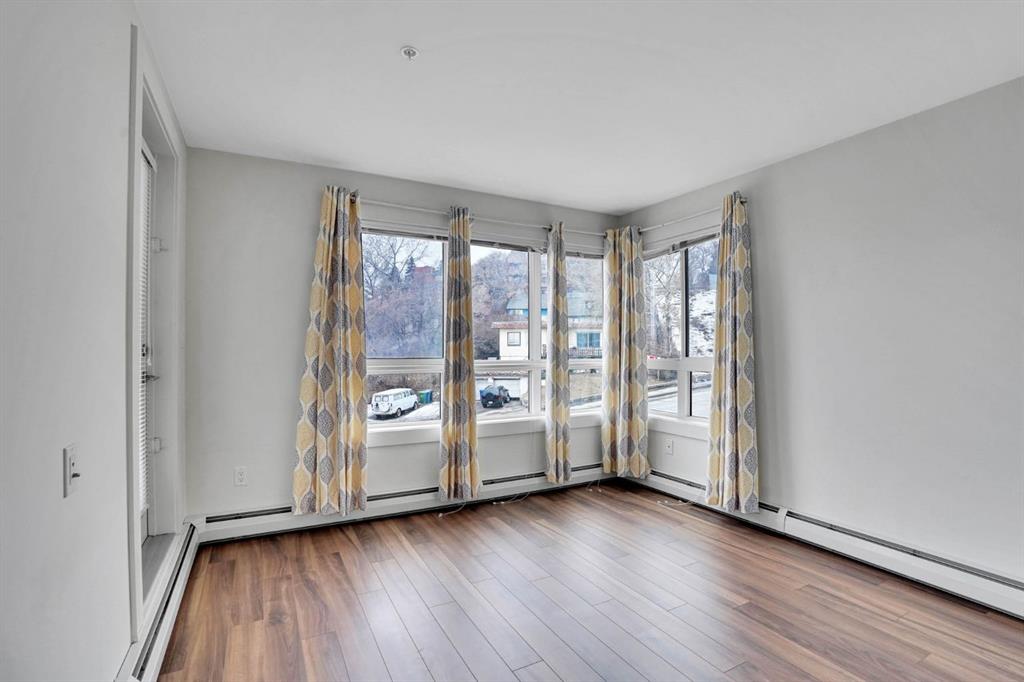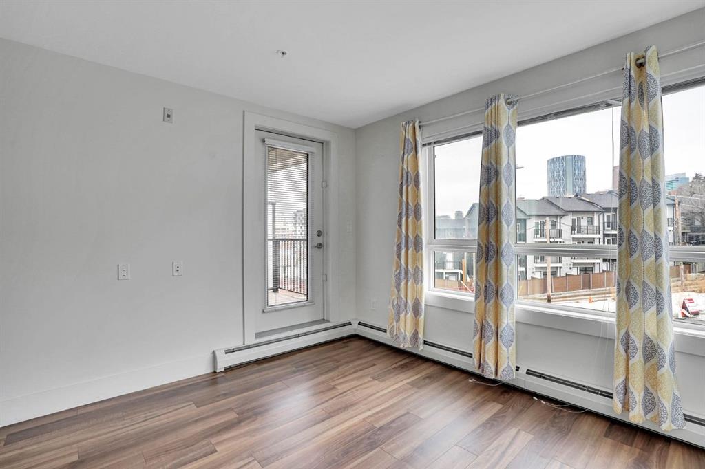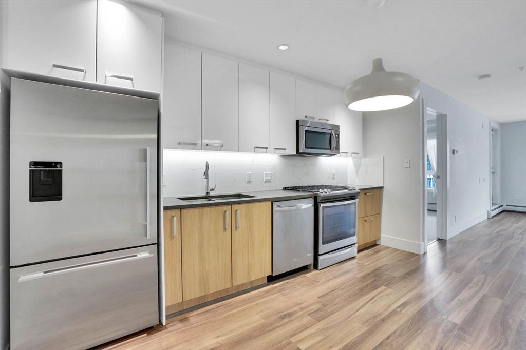 COME TAKE A LOOK AT THIS Stylish 2 bedroom plus den, 2 bathroom condo in the heart of vibrant Bridgeland, offering the perfect blend of modern living and urban convenience. One of the largest floor plans in the building, this spacious unit is ideal for first-time buyers, professionals, or investors alike. Step inside to discover sleek engineered hardwood flooring and a bright open-concept layout that seamlessly connects the kitchen and living areas. The contemporary kitchen is both functional and elegant, featuring stainless steel appliances, a gas stove, quartz countertops, and ample cabinetry—perfect for everyday living and entertaining. Oversized windows flood the space with natural light. The primary bedroom is a private retreat complete with a 3-piece ensuite and generous closet space. The second bedroom offers excellent flexibility for guests, a roommate, or a home office, while the front den provides an ideal workspace, creative area, or additional storage. Enjoy outdoor living on the spacious balcony, perfect for relaxing or entertaining while soaking in the city atmosphere. Additional features include a 4-piece main bathroom, in-suite laundry, heated underground titled parking, an assigned storage locker, bike storage, and access to a fitness centre and beautifully designed communal courtyard. Located just minutes from downtown Calgary and within walking distance to Bridgeland’s popular shops, cafés, and restaurants, with quick access to Memorial Drive for easy commuting. This exceptional condo offers everything you need for a modern, connected lifestyle. Don’t miss out—book your private showing today!