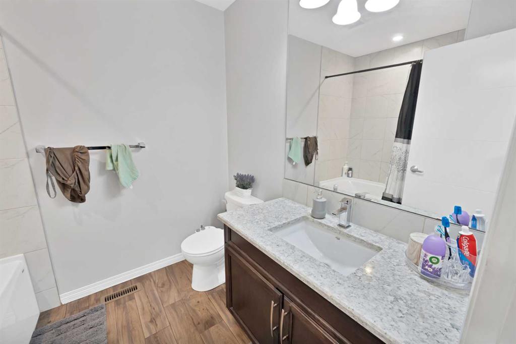 Welcome to this well-maintained front-drive home offering over 2,000 sq. ft. of living space plus a finished suited basement (illegal), all in a highly desirable NE Calgary community—an exceptional value of $675,000. Conveniently located close to shopping, plazas, parks, schools, and the airport. The main floor features 9-ft knockdown ceilings and an open-concept layout with a home office, 2-pc bath, spacious kitchen with maple cabinetry, dining area, and bright living room. Elegant stair railings lead to the upper level, which offers a generous primary bedroom with 4-pc ensuite, two additional good-sized bedrooms, a full common bathroom, a bonus area with access to a balcony, and convenient upper-level laundry. The basement is fully finished with a separate rear entrance, a 2-bedroom illegal suite, and its own separate laundry located in the utility room. Situated on a traditional lot (not zero lot line) with a fully fenced private backyard—ideal for families or investors alike