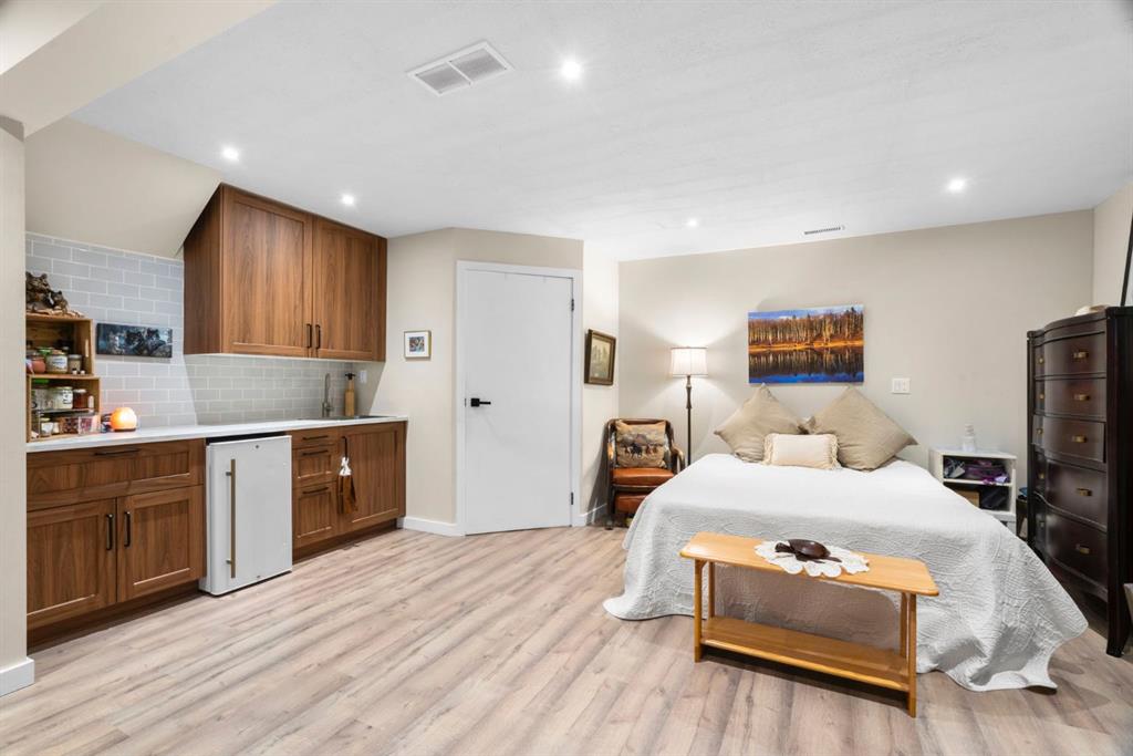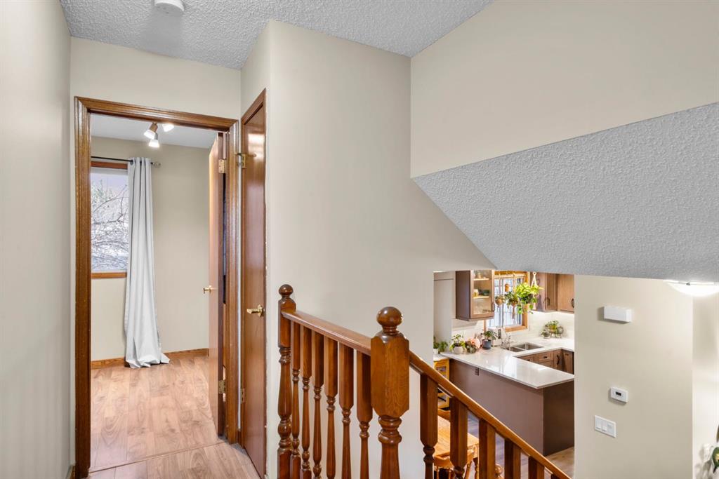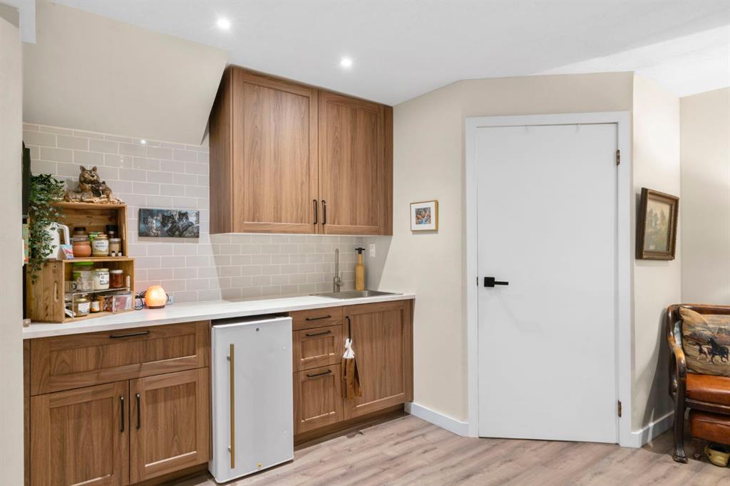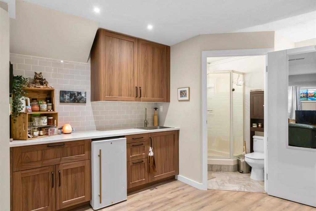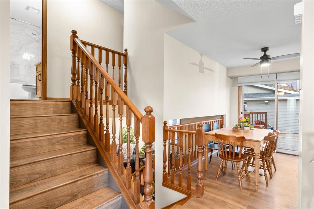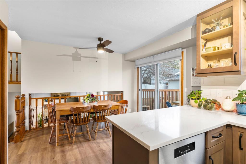 Welcome to 10 Carolina Drive, a beautifully updated home tucked into Cochrane’s desirable East End. Offering 3 bedrooms, 2.5 bathrooms, and multiple living spaces, this property blends comfort, functionality, and location. The main level is filled with natural light, featuring a welcoming front sitting room with large picture windows and sliding glass doors at the back that open to the spacious yard. The upgraded kitchen showcases updated cabinetry, countertops, modern lighting, and Samsung stainless steel appliances, making it both stylish and practical for everyday living. Upstairs, you’ll find two generous bedrooms, including the primary, along with a tastefully renovated full bathroom finished with contemporary touches. The lower level offers a cozy family room centered around a wood-burning fireplace, plus a convenient laundry room, powder room, and a third large bedroom—ideal for guests, teens, or a home office. The finished basement adds exceptional versatility, featuring a wet bar with mini fridge and electric cooktop, a full bathroom, and plenty of space for entertaining, hobbies, or a private retreat. Outside, enjoy a large backyard and deck, perfect for summer gatherings or quiet mornings. The massive heated double garage offers excellent storage and peace of mind with recently replaced garage roofing, along with two additional parking stalls beside the garage for added convenience. Ideally located near walking and bike trails, pickleball courts, ball diamonds, and Dewey Blaney Park, with Spray Lakes Family Sports Centre just a short walk or drive away. Downtown Cochrane’s shops and restaurants are minutes from your door, and the continued growth of the Greystone community and upcoming commercial amenities adds long-term value to this already sought-after location. A move-in-ready home in an established neighbourhood—don’t miss your opportunity to call 10 Carolina Drive home.