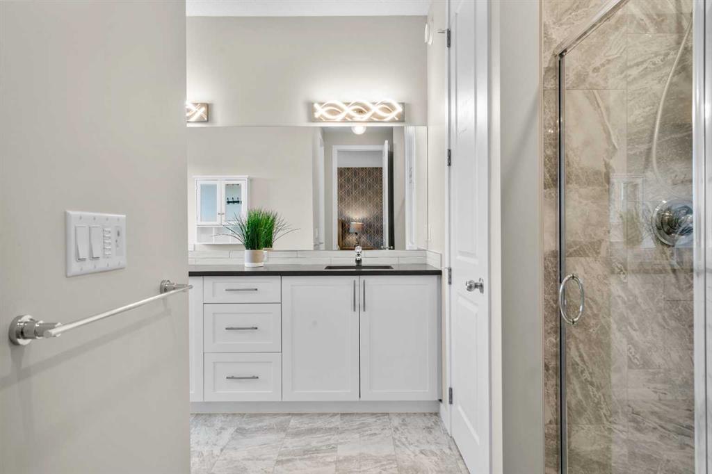 Located in the award-winning Mahogany lake community, this exceptional custom-built luxury residence blends architectural scale, refined finishes, and an elevated lakeside lifestyle. With six bedrooms, a main floor flex room, and a fully developed basement with a separate side entrance, the home is ideally suited for a growing family or a sophisticated work-from-home lifestyle. From the moment you enter, the sense of volume and natural light is immediate. The main floor features predominantly 9-foot ceilings, with select areas—including the foyer and flex room—soaring to 10 feet. Oversized rear-facing windows flood the main living and dining areas with natural light, creating a seamless connection to the outdoor living space. Luxury vinyl plank flooring, 8-foot interior doors, and an impressive 8-foot front entry door with sidelite elevate the home’s contemporary elegance. The chef’s kitchen is designed for entertaining and everyday living, showcasing quartz countertops, extended cabinetry stacked to the ceiling, a large island with storage on the seating side, a gas cooktop paired with a built-in wall oven, a chimney-style hood fan with full-height tile surround, premium tile backsplash, and integrated lighting and storage. Upstairs, a vaulted bonus room reaching approximately 14 feet at the apex provides an impressive secondary living space, while upper-level laundry adds convenience. The primary suite is a private retreat with a spa-inspired ensuite featuring dual sinks, a soaker tub, and a tiled glass shower. The fully developed basement offers ceiling heights between 8 and 9 feet, two additional bedrooms, a full bathroom, expansive recreation areas, and a custom wet bar with cabinetry and bar (wine) fridge. A separate side entrance adds flexibility for multi-generational living, guest accommodations, or professional home-based use (subject to approvals). A basement laundry rough-in complements the upper-floor laundry. Additional features include a dedicated mudroom between the home and garage, in-ceiling speakers with multiple audio zones, extensive Cat6 wiring, pot lighting with dimmers, air-conditioning rough-in, and an upsized gas main. The exterior is finished with durable Hardie board siding and enhanced by a low-maintenance composite deck with gas line for BBQ, under-deck storage, interlocking stone driveway extension, and professionally completed landscaping by Primrose Landscaping. Residents of Mahogany enjoy exclusive access to a freshwater lake, private beaches, year-round recreation, scenic pathways, parks, and playgrounds, all minutes from schools, shopping, dining, and major commuter routes. Offering refined luxury, exceptional scale, and a premier lake-community lifestyle, this home presents a rare opportunity in one of Calgary’s most sought-after neighbourhoods.