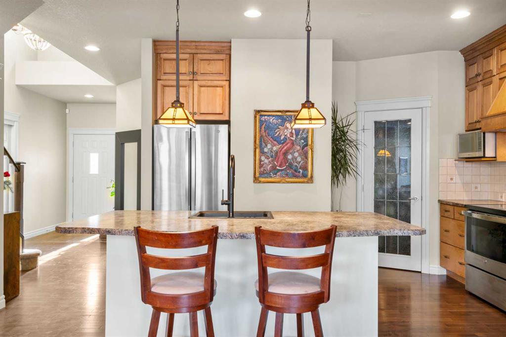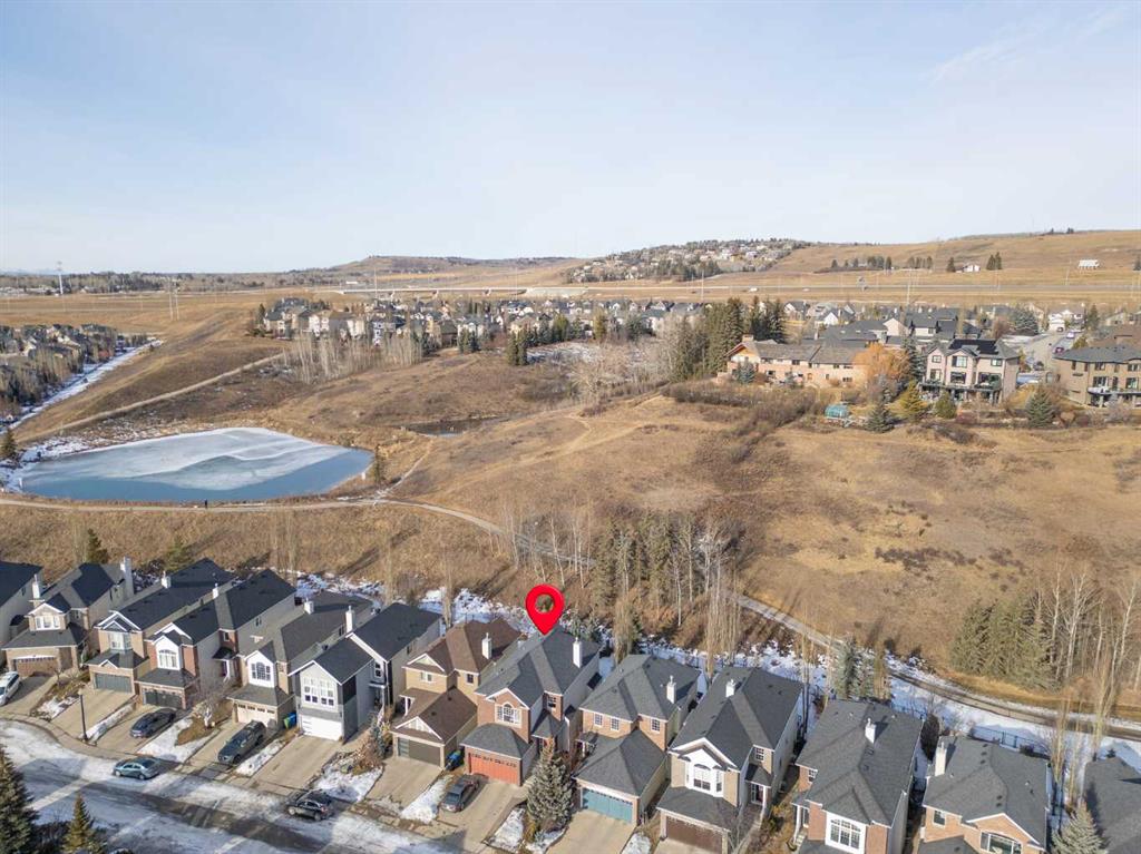 Set on a quiet, tree-lined street in the heart of Discovery Ridge, this beautifully crafted four-bedroom, two-and-a-half-bathroom home offers 1,839 square feet of refined living space, thoughtfully designed to embrace its exceptional natural surroundings. Backing directly onto a protected nature reserve and expansive green space, the property enjoys rare privacy, serene views, and an authentic connection to nature. Discovery Ridge is renowned for its extensive network of pathways, parks, and preserved green spaces, creating a peaceful, community-focused environment unlike anywhere else in the city. With Griffith Woods Park just minutes away, decorative acorn-style street lighting, and minimal traffic, the setting is quiet, established, and undeniably beautiful. Inside, the home immediately impresses with hardwood flooring throughout the main and upper levels, with carpet found only on the staircase—a detail that reinforces the home’s clean, elevated finish. Both the main floor and upper level feature 9-foot ceilings, a rare and highly desirable combination that gives the home a noticeably larger, more open, and more luxurious feel throughout. The open-concept main floor is anchored by a striking open-to-above staircase and warmed by a convenient gas fireplace in the living room, creating a welcoming focal point for both everyday living and entertaining. Natural light flows effortlessly through the main living spaces, enhancing the home’s sense of volume and architectural presence. The main floor is also pre-wired with rough-ins for ceiling speakers, allowing for a seamless future audio setup. This residence was thoughtfully enhanced with multiple builder-designed extensions completed at the original design stage, including an expanded front entry, cantilevered front closet, entertainment area extension, and a rear bay window addition—features that elevate both functionality and scale while maintaining architectural cohesion. Upstairs, four well-proportioned bedrooms are highlighted by a serene primary retreat with oversized windows framing uninterrupted green space views. The bathrooms are finished with quartz engineered stone countertops and feature a practical Jack & Jill layout, balancing durability, elegance, and everyday functionality. The basement is positioned for future development with a bathroom rough-in and fireplace gas line already in place. A double attached garage adds everyday convenience and completes this exceptional offering. This is a rare opportunity to own a home where design integrity, ceiling height, warmth, and natural beauty converge—set within one of Calgary’s most quietly luxurious neighbourhoods.